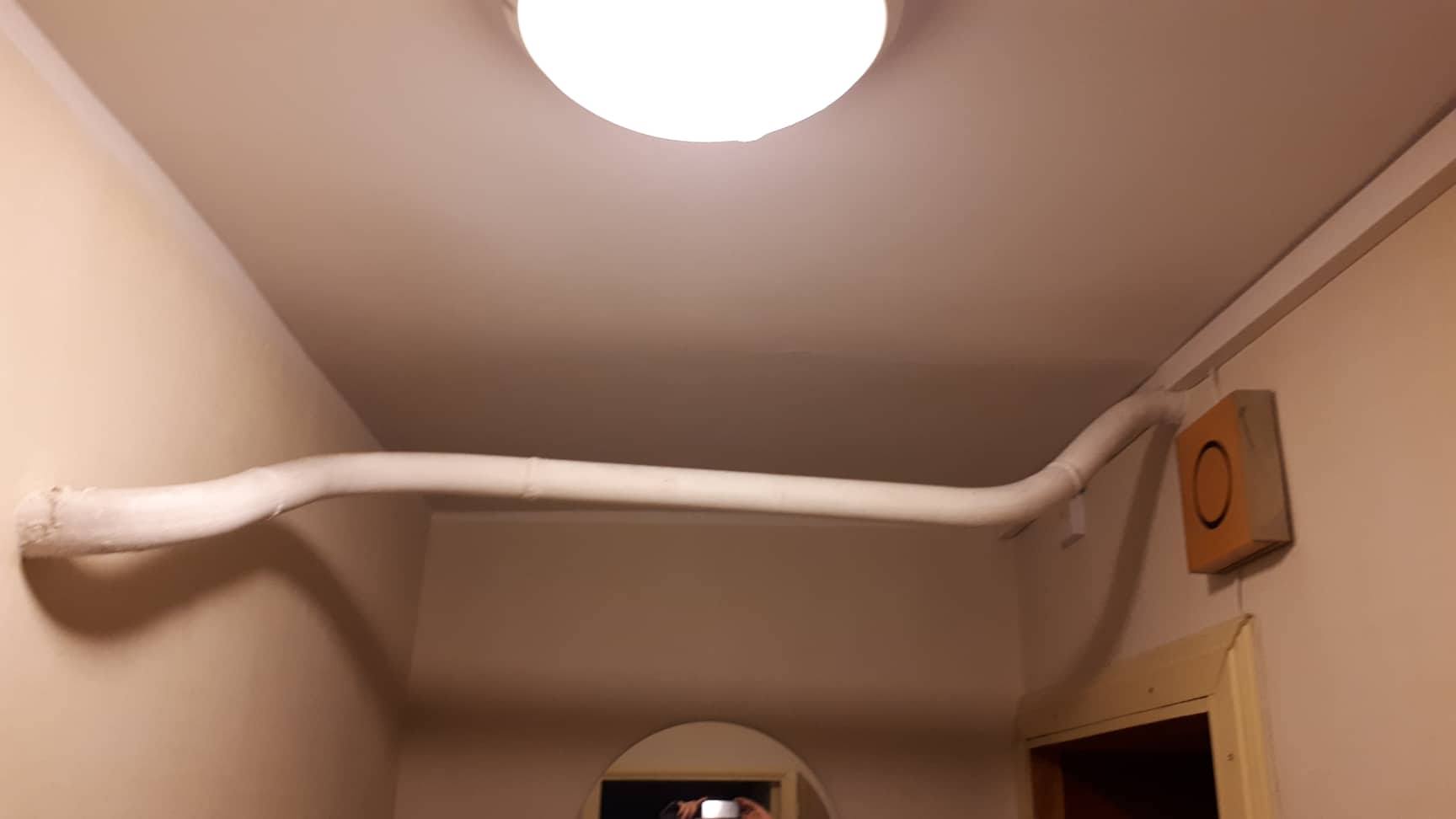 Tõsta korterisisene gaasi transiittoru lae alla. Hetkel langeb toru selle korterisse sisenemiskohast esikus mõnikümmend cm allapoole ja kulgeb sel kõrgusel läbi vannitoa kööki - vaata pilte. Kogupikkus ligikaudu 5 m.