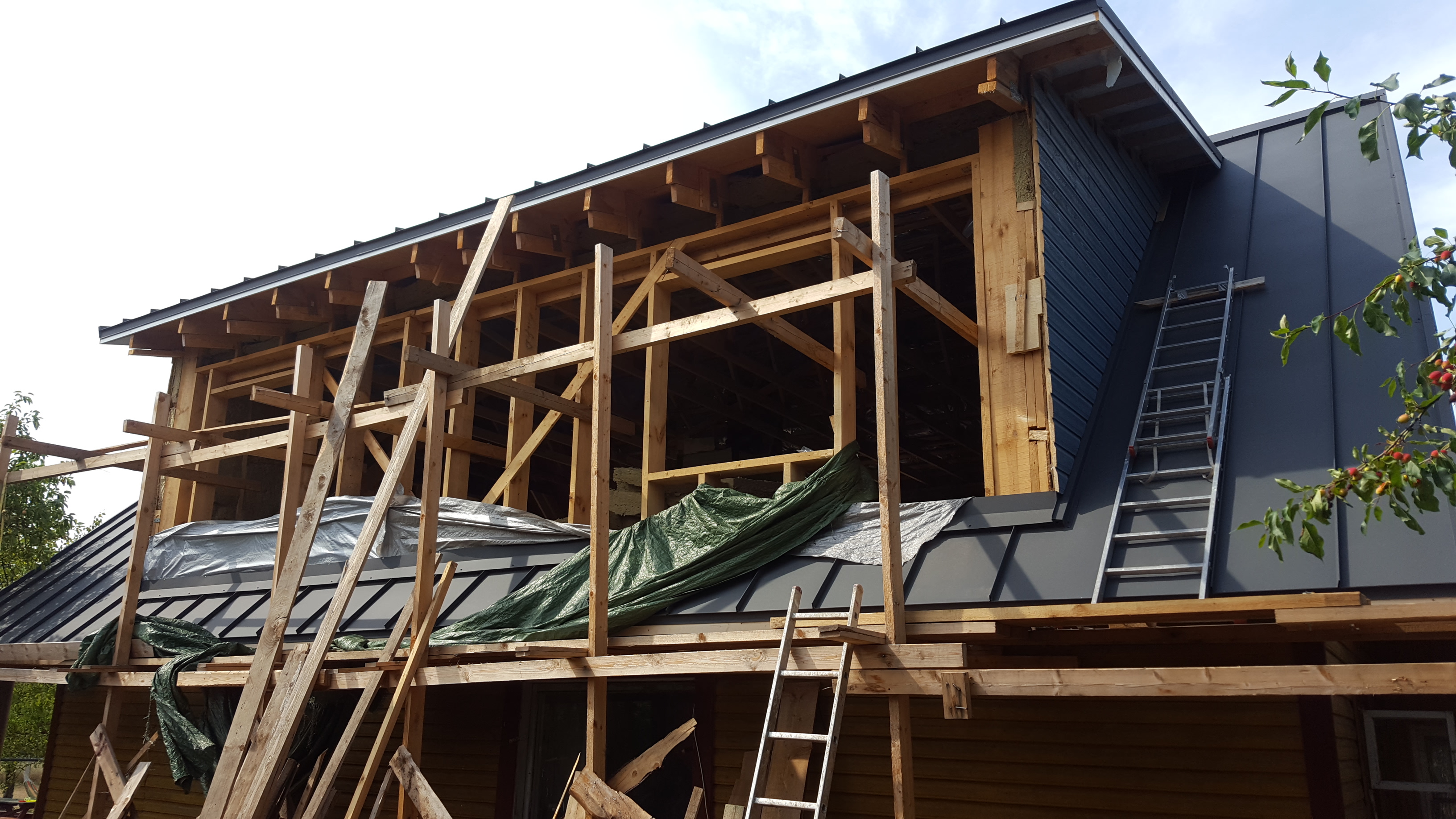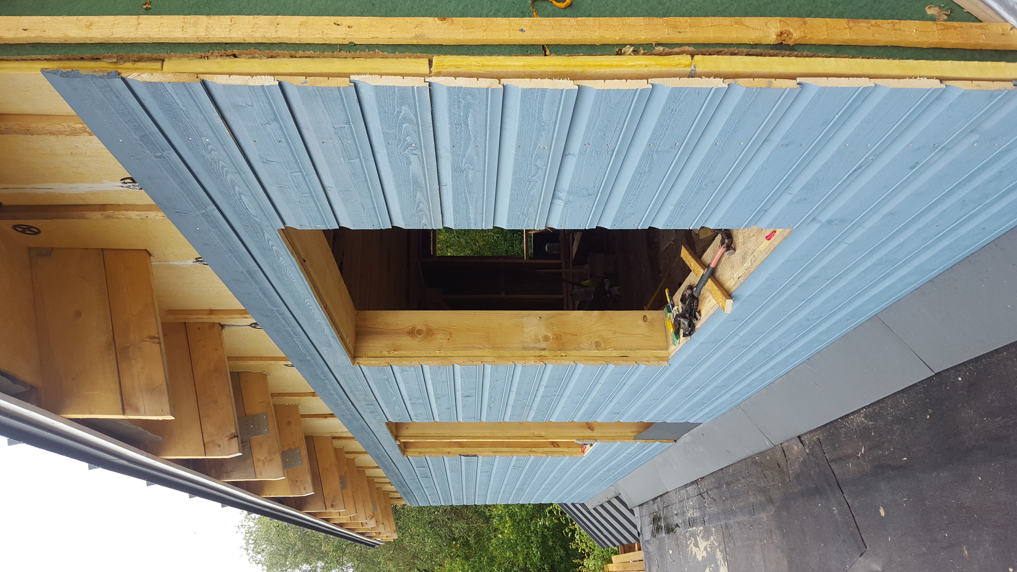 Lõpptulemus väljast poolt on näha pildil 1. Otsaseintel on hetkel veel vana laudis peal. Selle eemaldan ise ehk sein saab olema puhas tuuletõkkeplaadi paigaldamiseks. Vintskapi puhul on tuuletõkke plaadi ülemise ääre kinnitamiseks vaja sarikate vahele panna risti väikesed lauad.