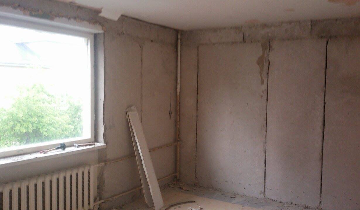 Hetkel lammutustööd teostatud. Olemasolevad seinad tuhaplokist/fibo/gaasbetoonist. Välisseinad kaetud Skano isolatsiooniplaadiga. Maas vana ja ebatasane laudpõrand (kaldes kuni 4 cm).