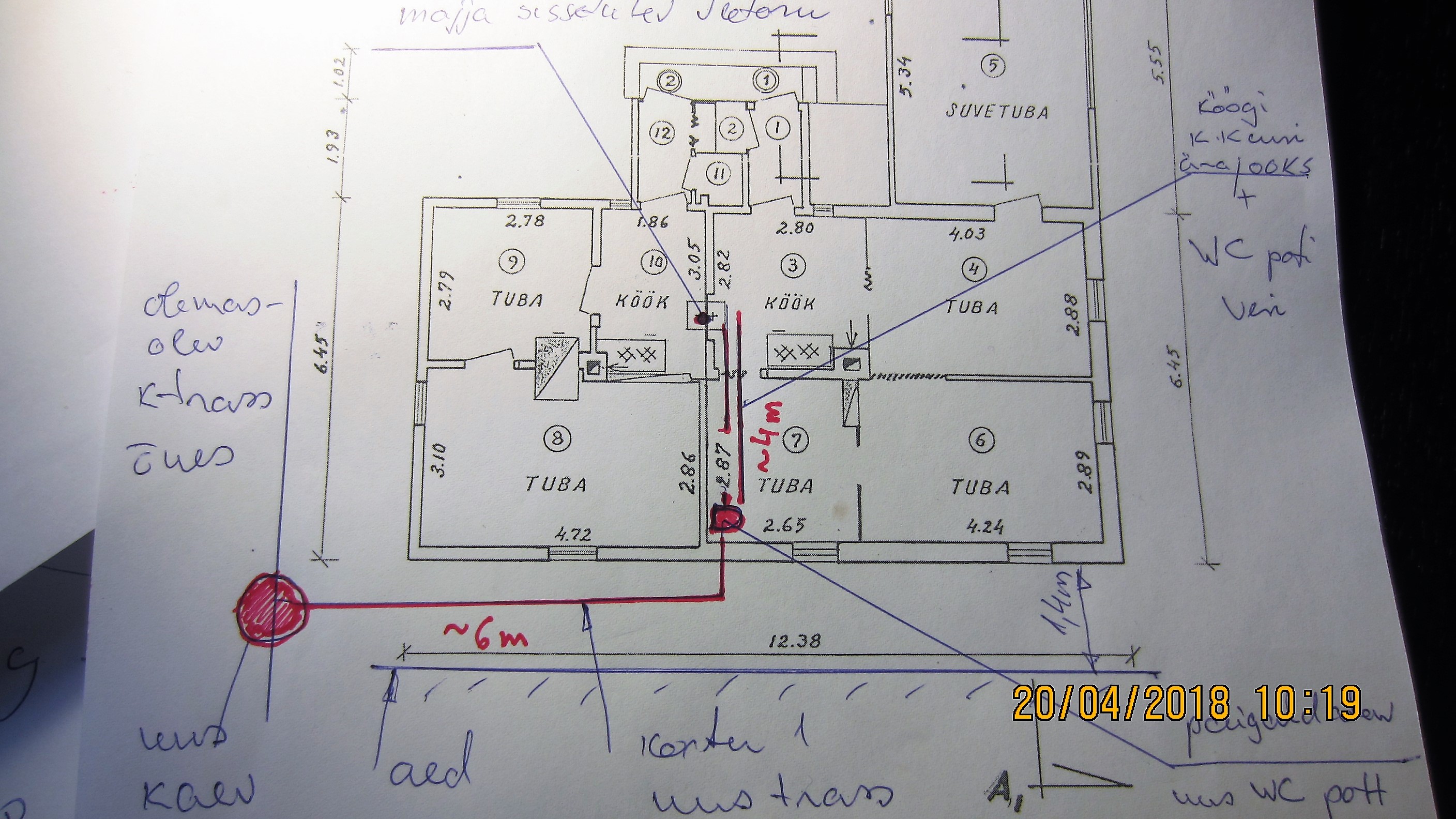 Kaevata umbes 6 m,trassi üks ots 50 cm,teine 2m sügav,olemasolevale trassile paigaldada uus kaev