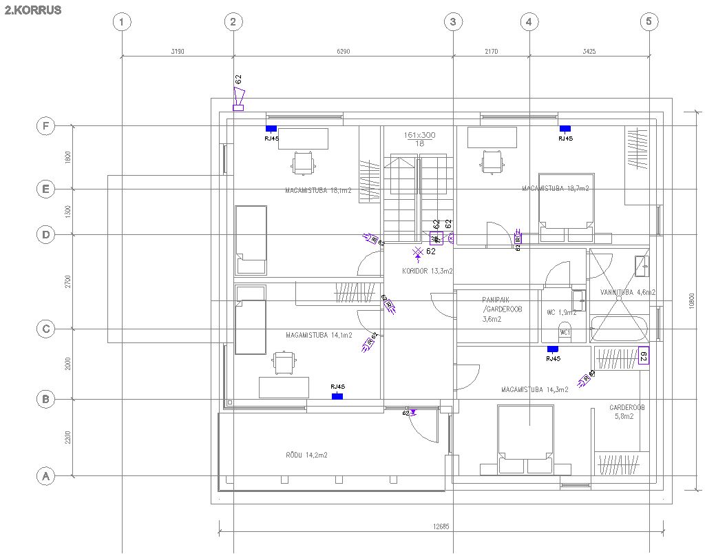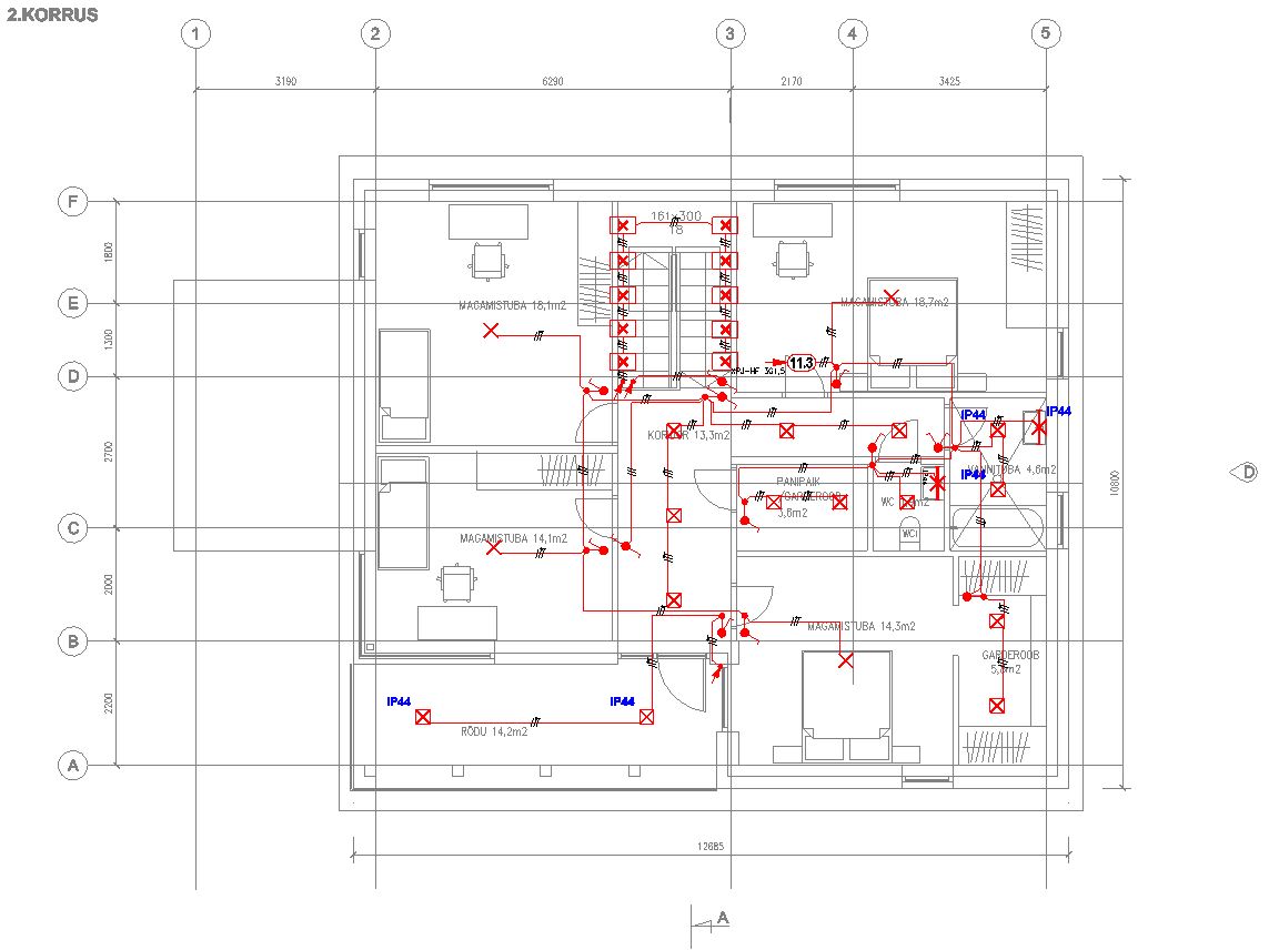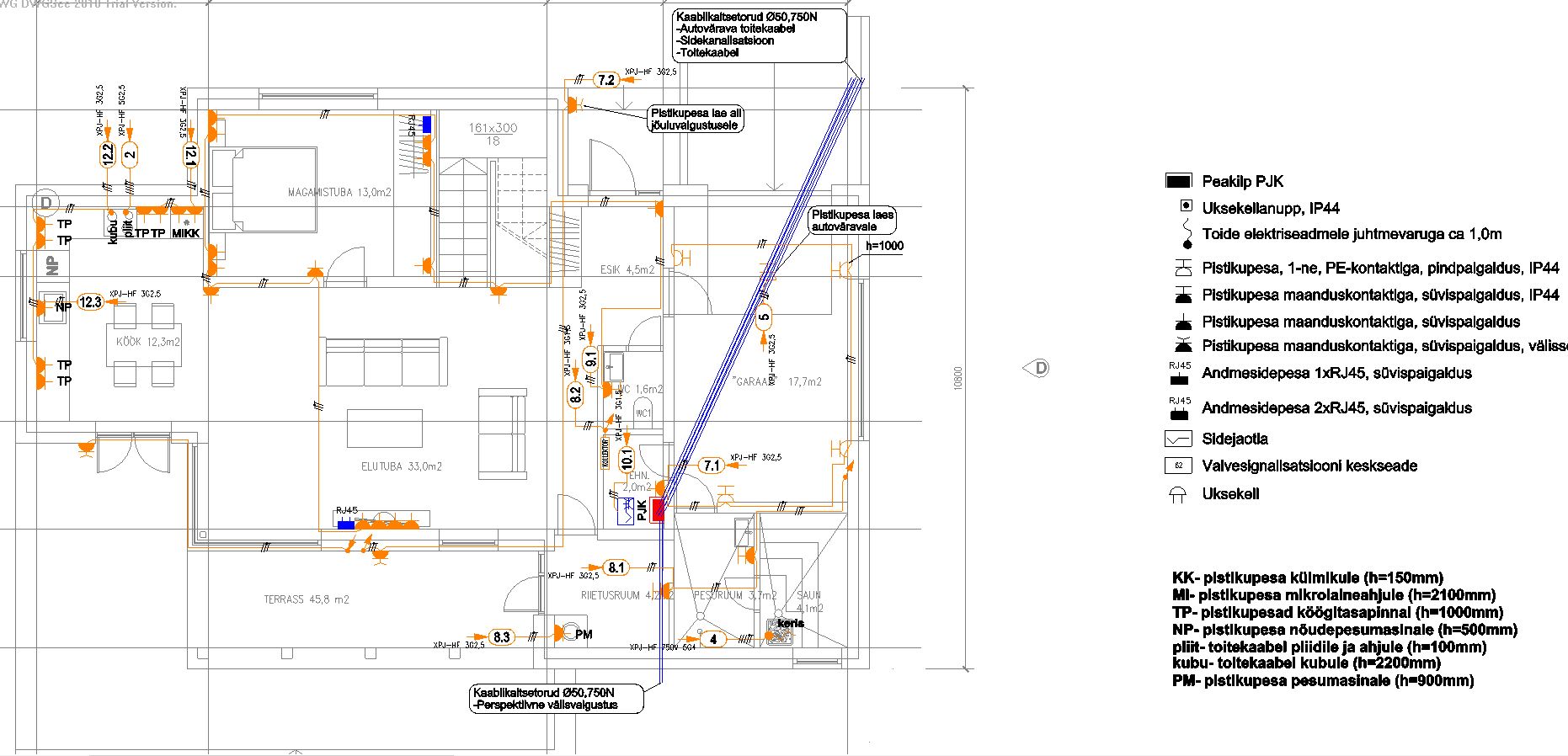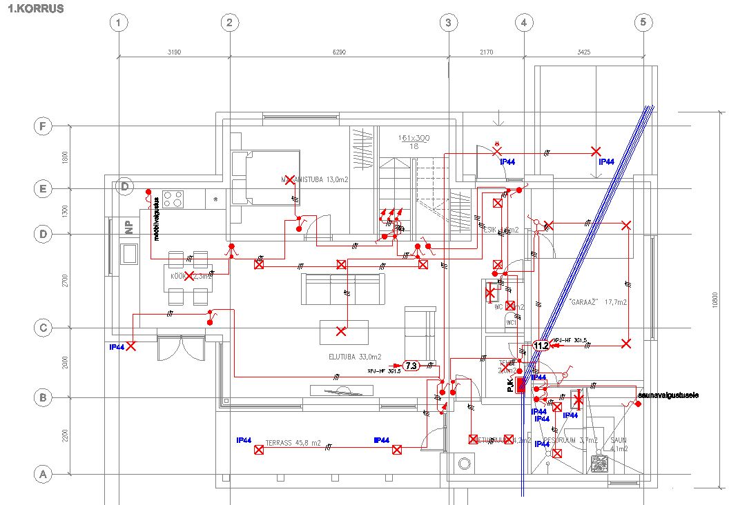 1. korruse valgustite kaabelduse võib vedada vahetult paneelide pealt (paneelidele paigaldatakse soojustus ning betoon 10 cm põr küttega).