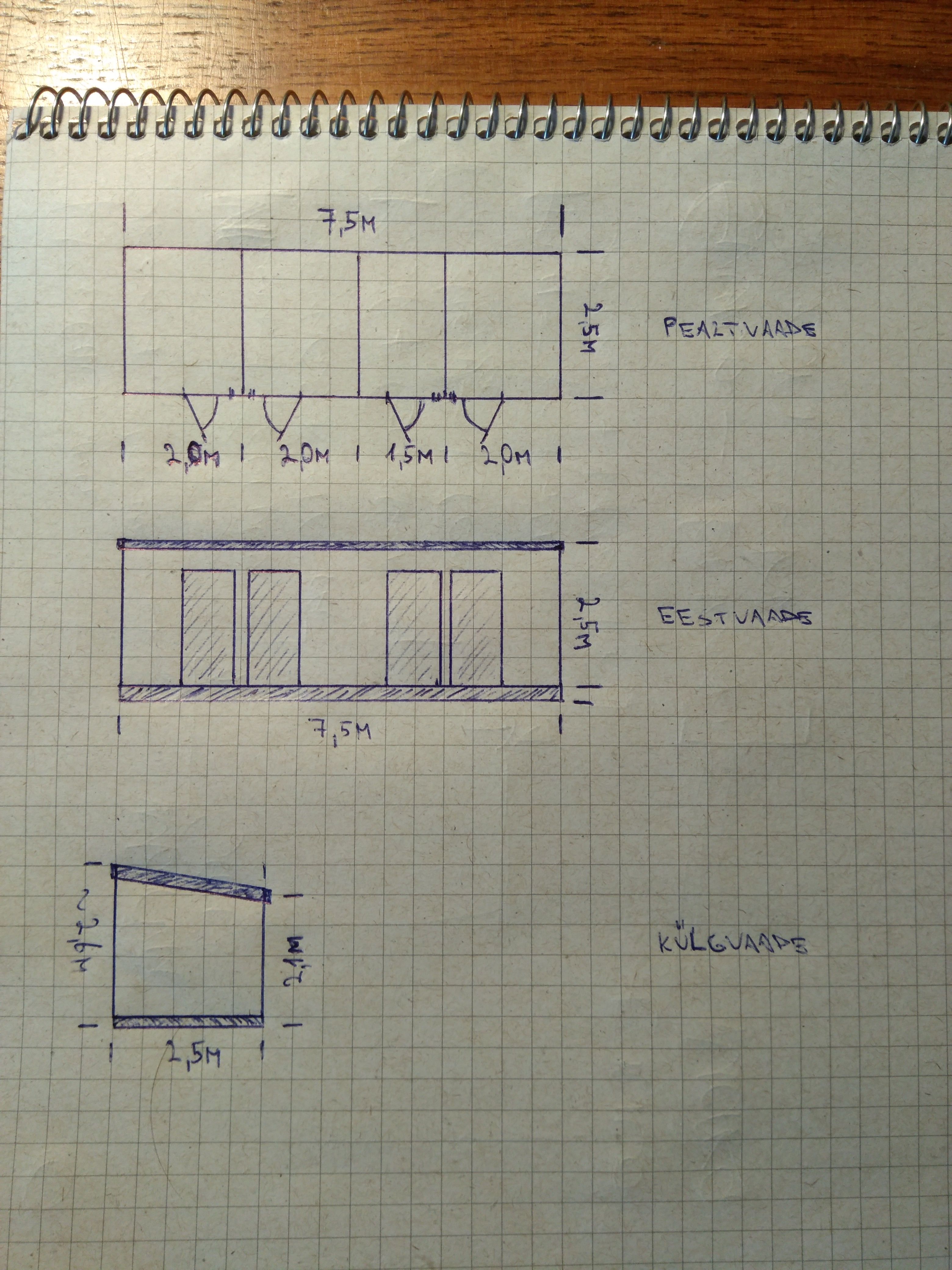 * Katusematerjalina eelistame plekist katust, kuid võib pakkuda ka teisi katusetüüpe. Igal juhul soovime vältida bituumensindlit – kuur asub puude varjus ning meie kogemuses hakkab bituumensindel sellistes asukohtades väga kiiresti sammalduma.