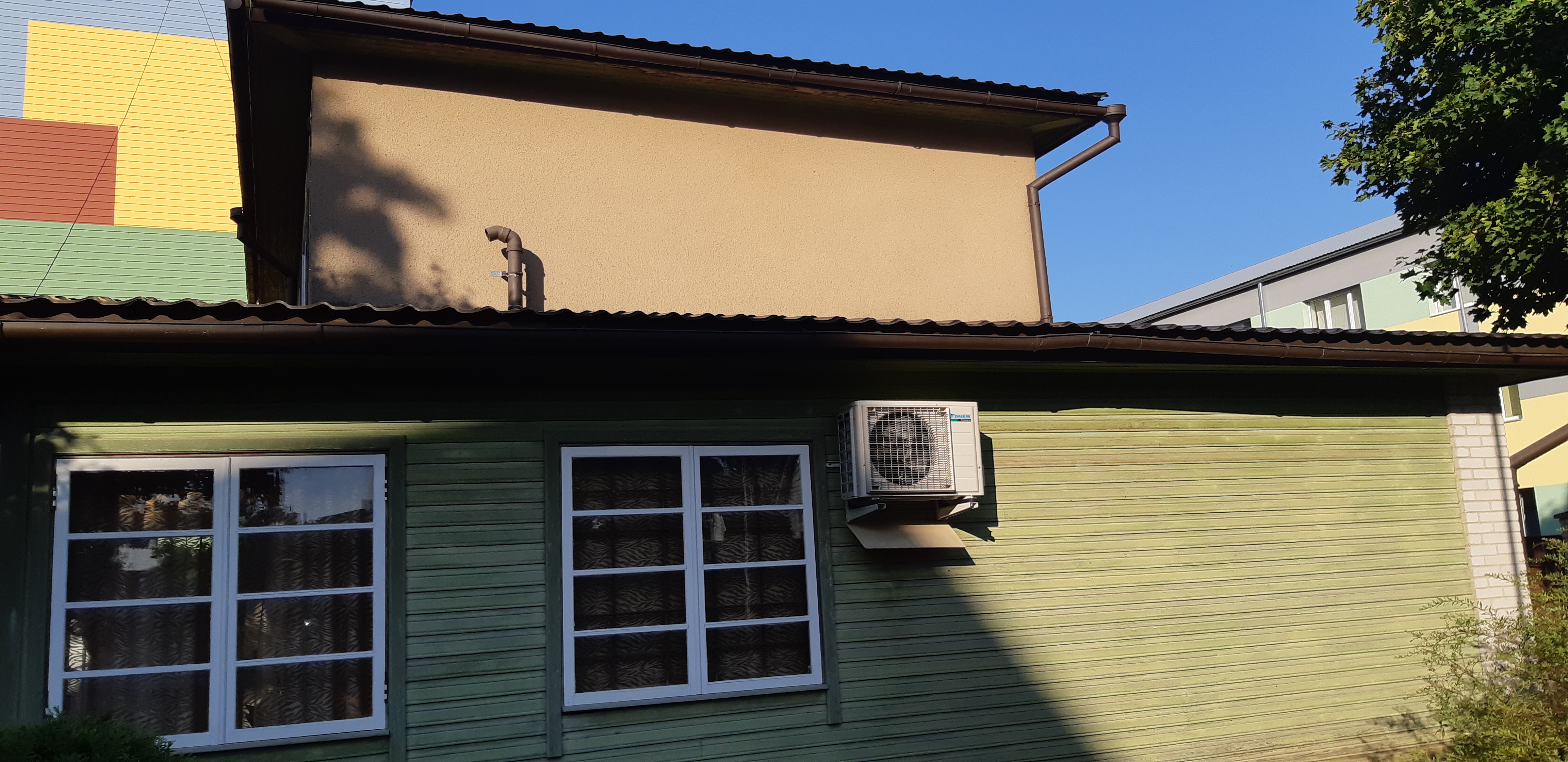 Kahekorruseline eramaja. Soojustatavat pinda 170 ruutu puitkarkassil laudis, mis kaetud TEP plaadi ja pealt krohviga.