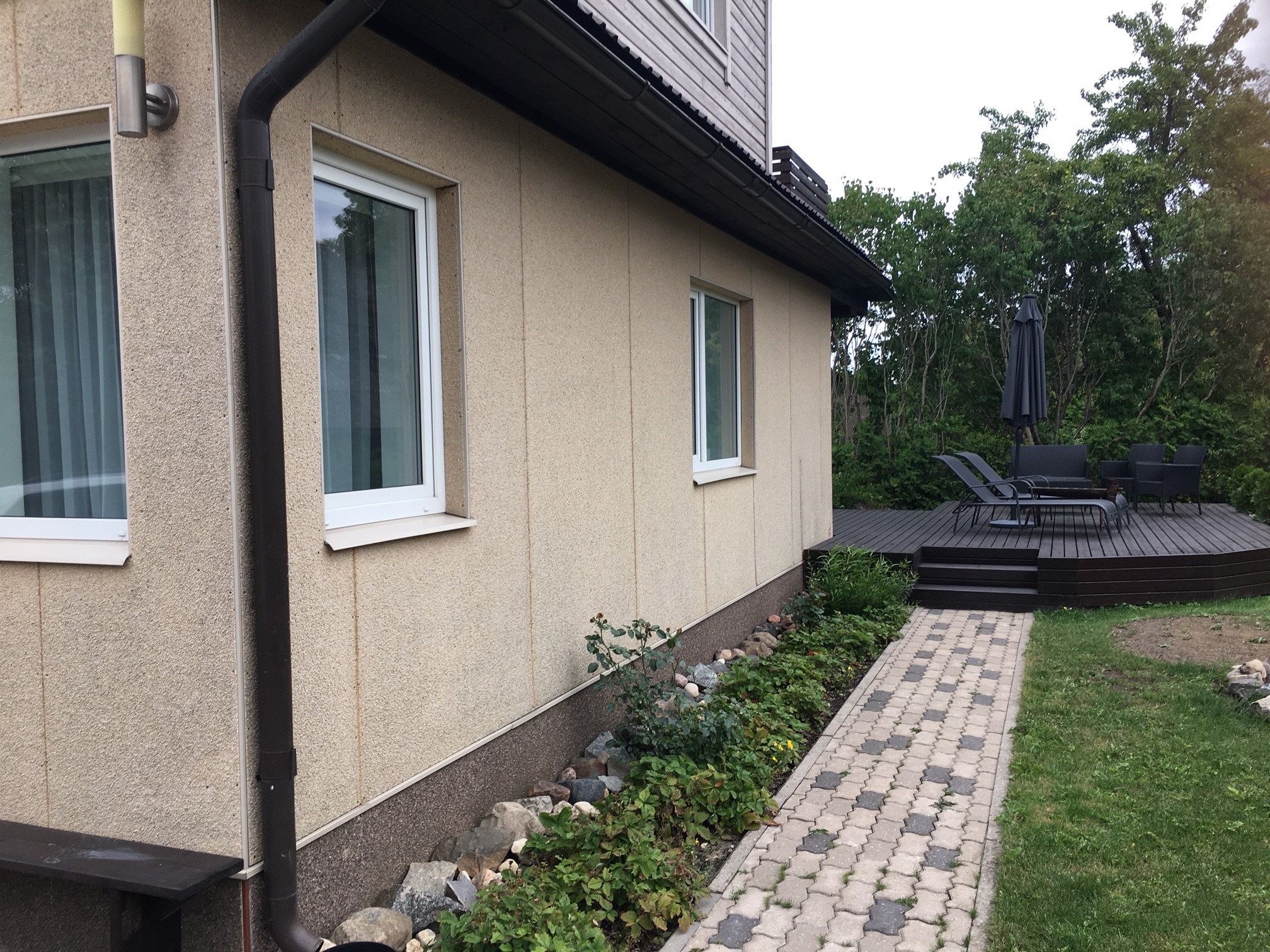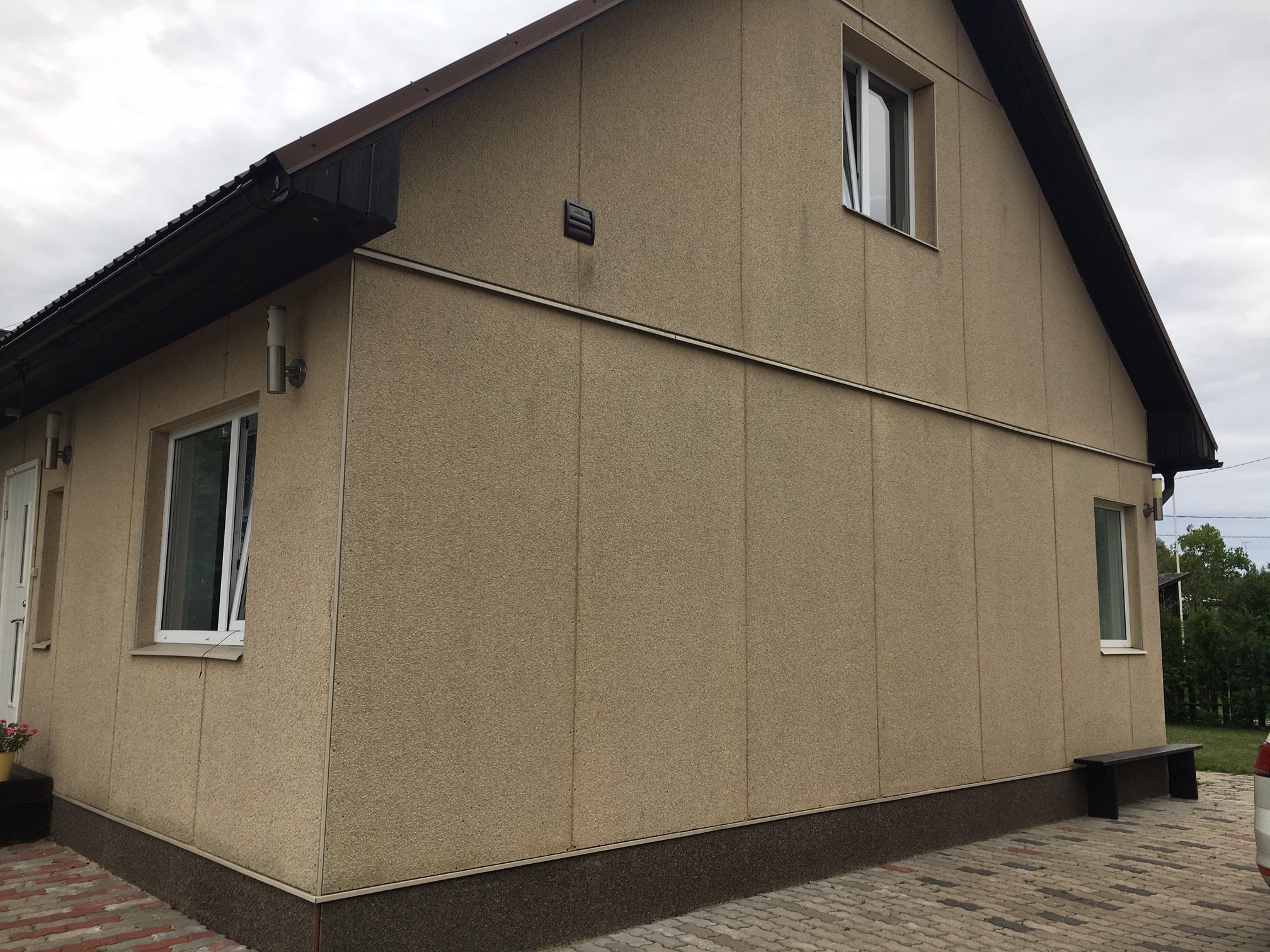 Maja kaetud krohvplaadiga,mis aja jooksul määrdunud ja vajab üle värvimist.Pinda 100 ruutu.Alumise osa kôrgus 2.2meetrit.Ülemised nurga nö kolmnurgad ühe saab värvida teise korruse terrasilt,teise poole jaoks vaja tôstukit.Pakkumine teha koos tööks vajalike materjalidega.Eeldan et töö teostatakse korralike töövahendite ja materjalidega.värvipritsid,kvaliteetvärvid jne.lisasin pildid,värvimist vajab see helepruun osa.Sokkel on korras,see jääb nagu on.Tööga saaks alustada koheselt,mida kiiremini seda parem.
