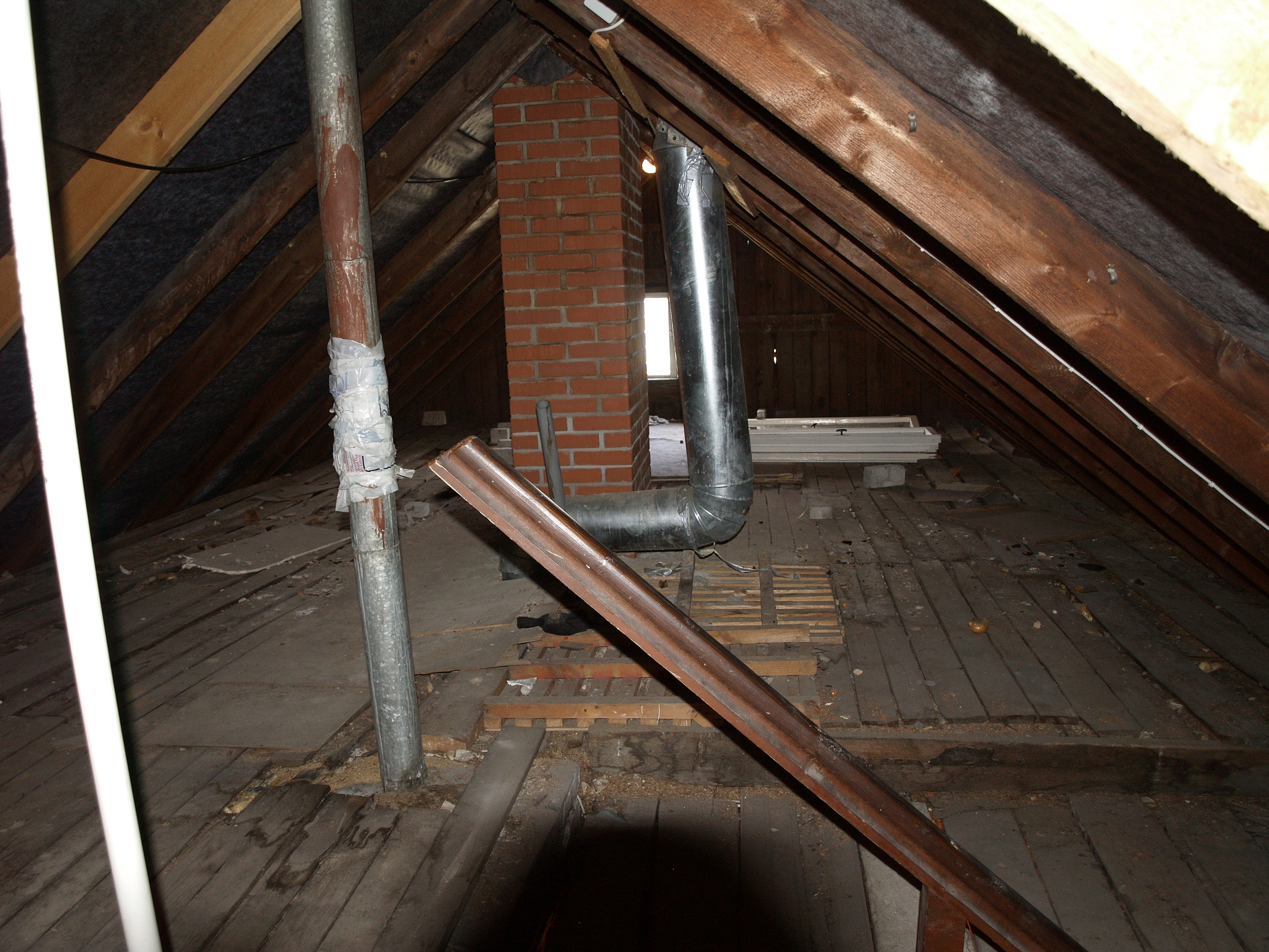 Umbes 100m2 pööningu pind. Katta soojusisolatsiooni kihiga ja teha käigutee katuse luugi ja külje akendeni.