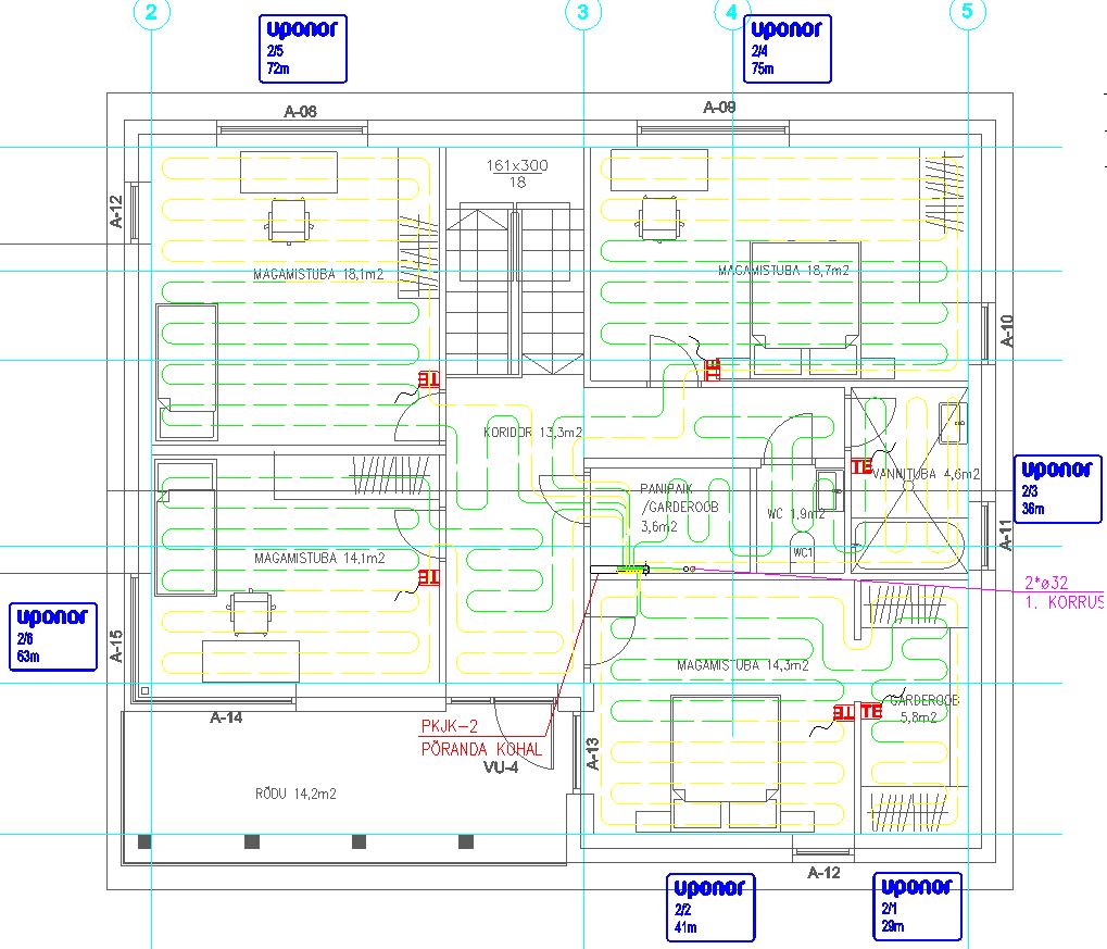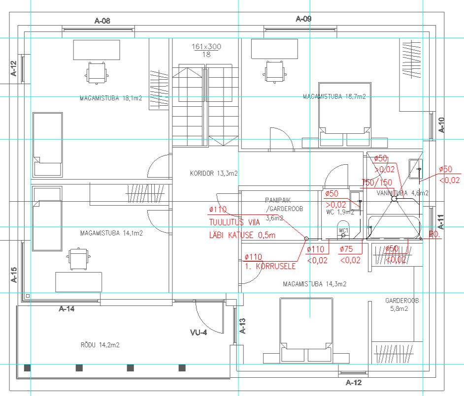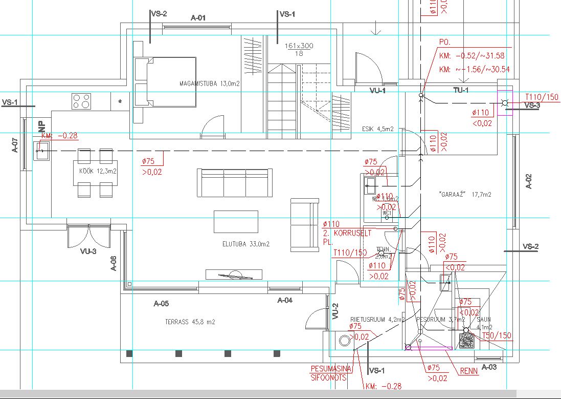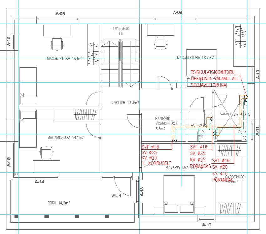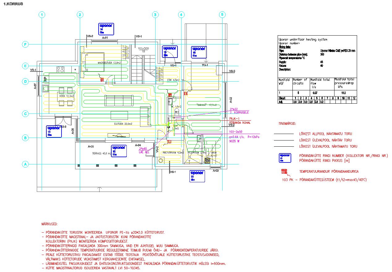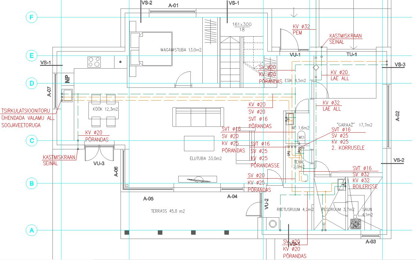 Vajalik teostada kanalisatsiooni , vee ja põrandaküttesüsteemi torustike ja vajalike kollektorite paigaldustööd vastavalt projektile.