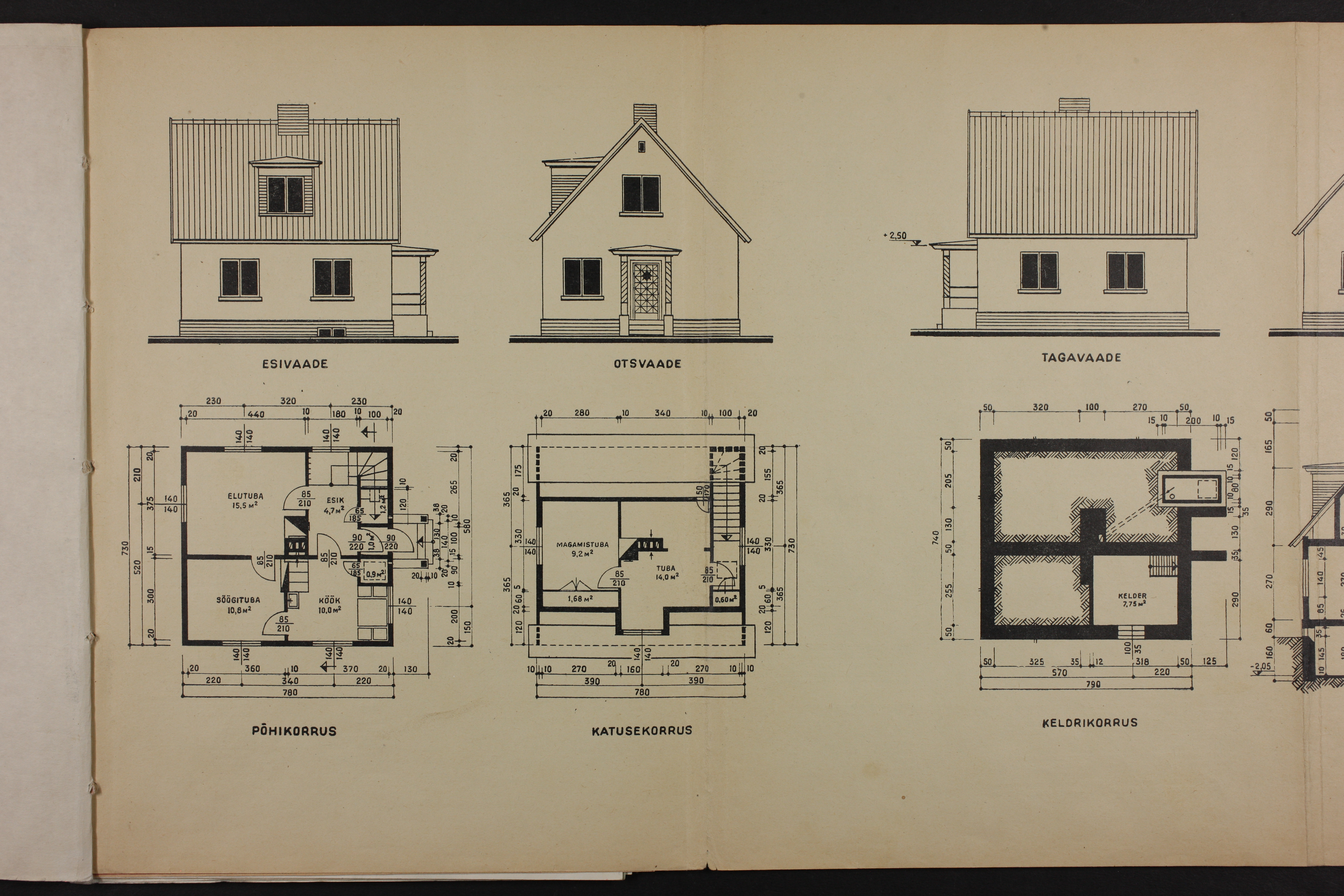 Maja seinte laiius 780 X 730, fassaadi kõrgus 270. Teise korruse kõrgus põrandast katusetipuni 455.