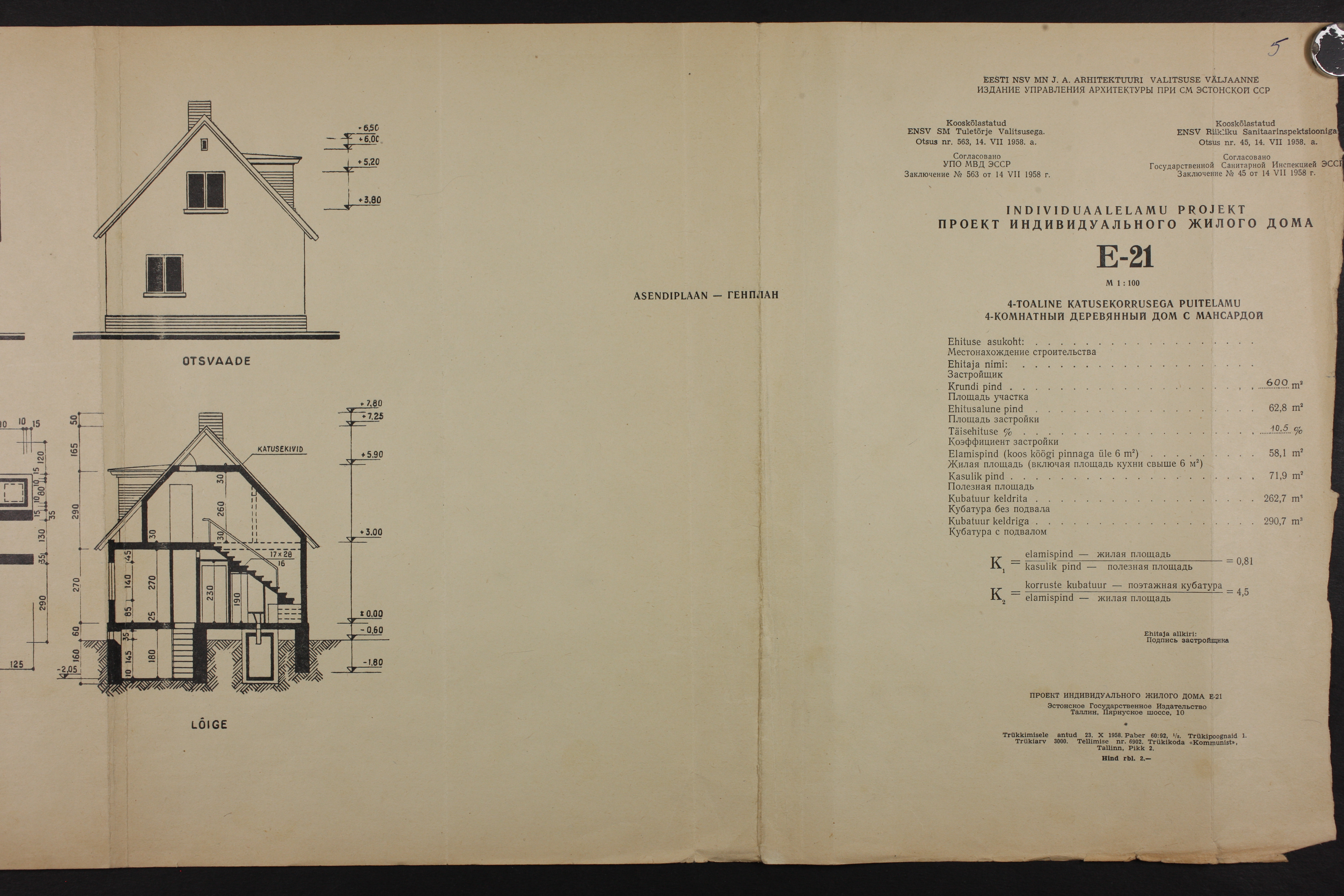 Pildid maja 1962.aasta projektist (korrektsed mõõdud) lisana.