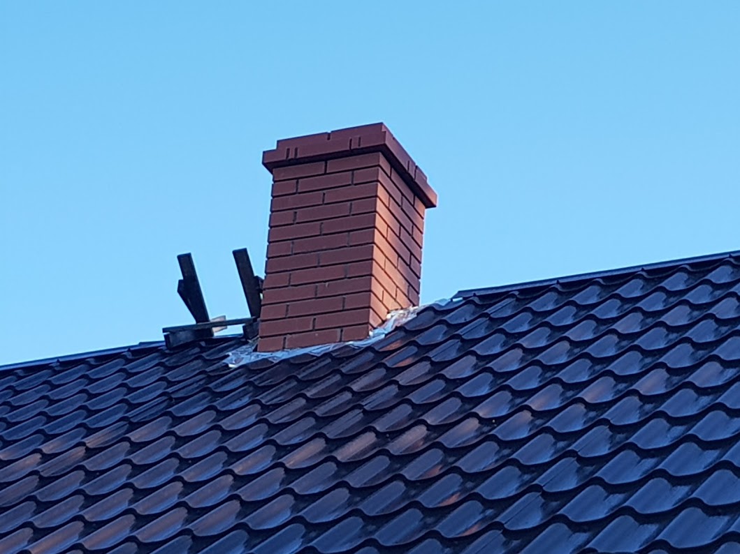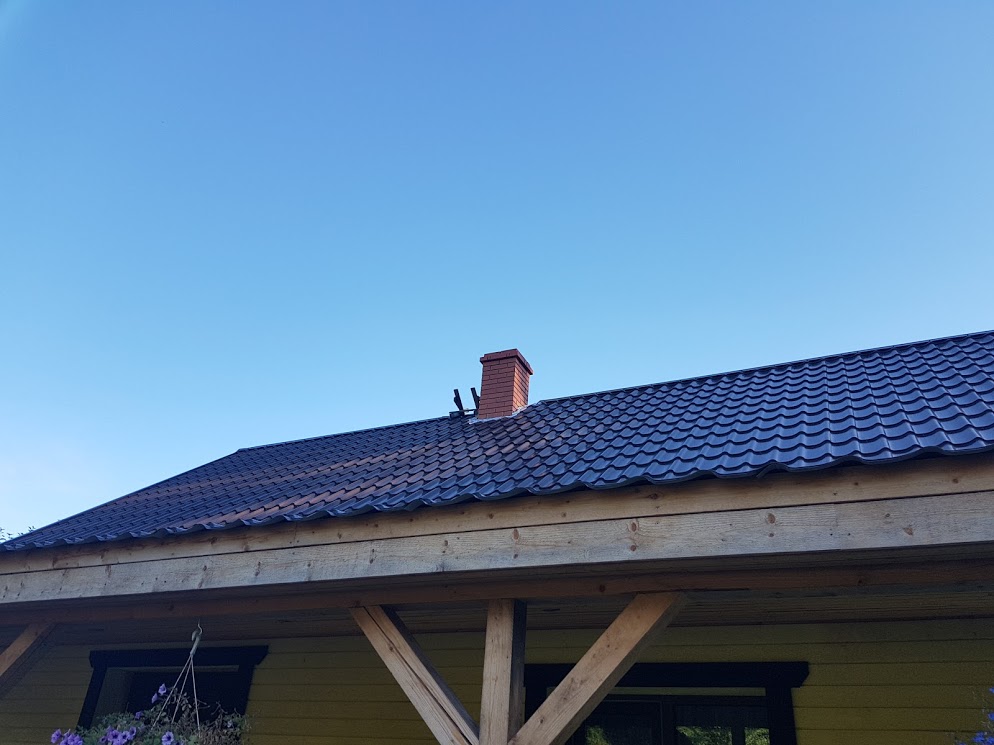 Eramajas on vaja hermetiseerida auk korstna ja katuse vahel ja pärast teha plekki viimistlust (ei mäleta mis värvi kood oli, aga tumepruun, võib olla rr32)
