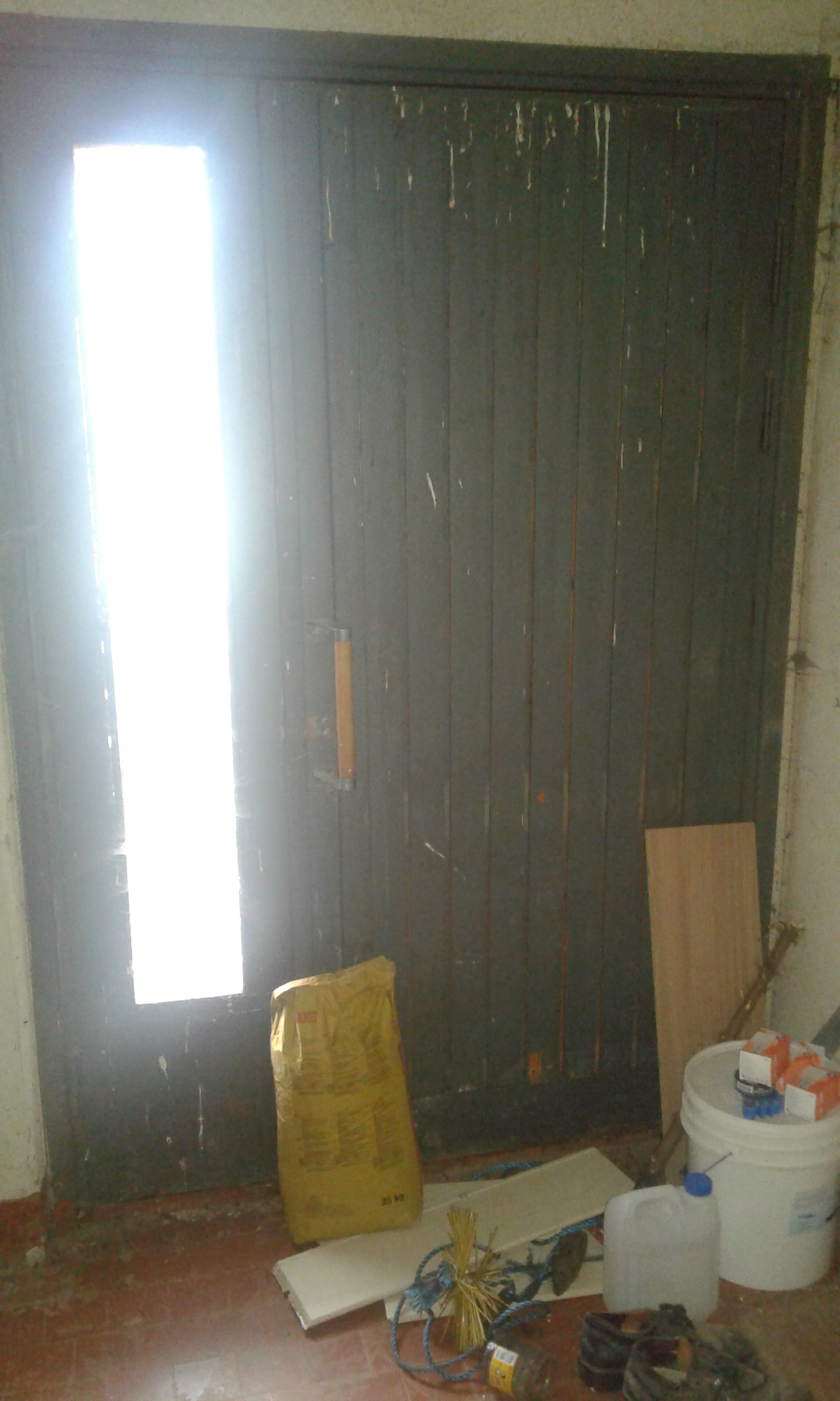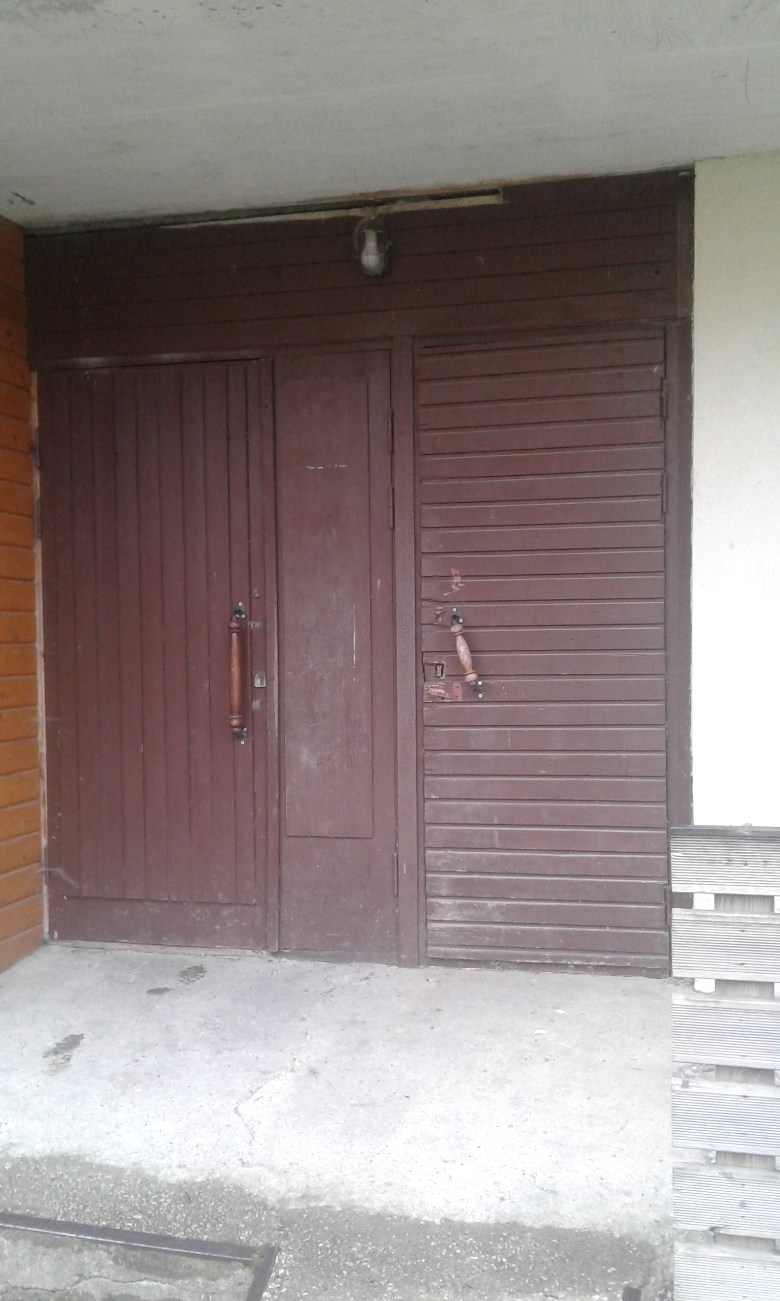 Esimese korruse trepikoja välisustel jätta alles vaid vasakpoolne sissepääs trepikotta, parempoolne keldrisse minev osa kinni müürida ja uus keldrisse sissepääsu ava teha trepikojast seest. Kinnimüüritud osa katta väljast puitliistudega ja värvida uue uksega sarnast värvi.