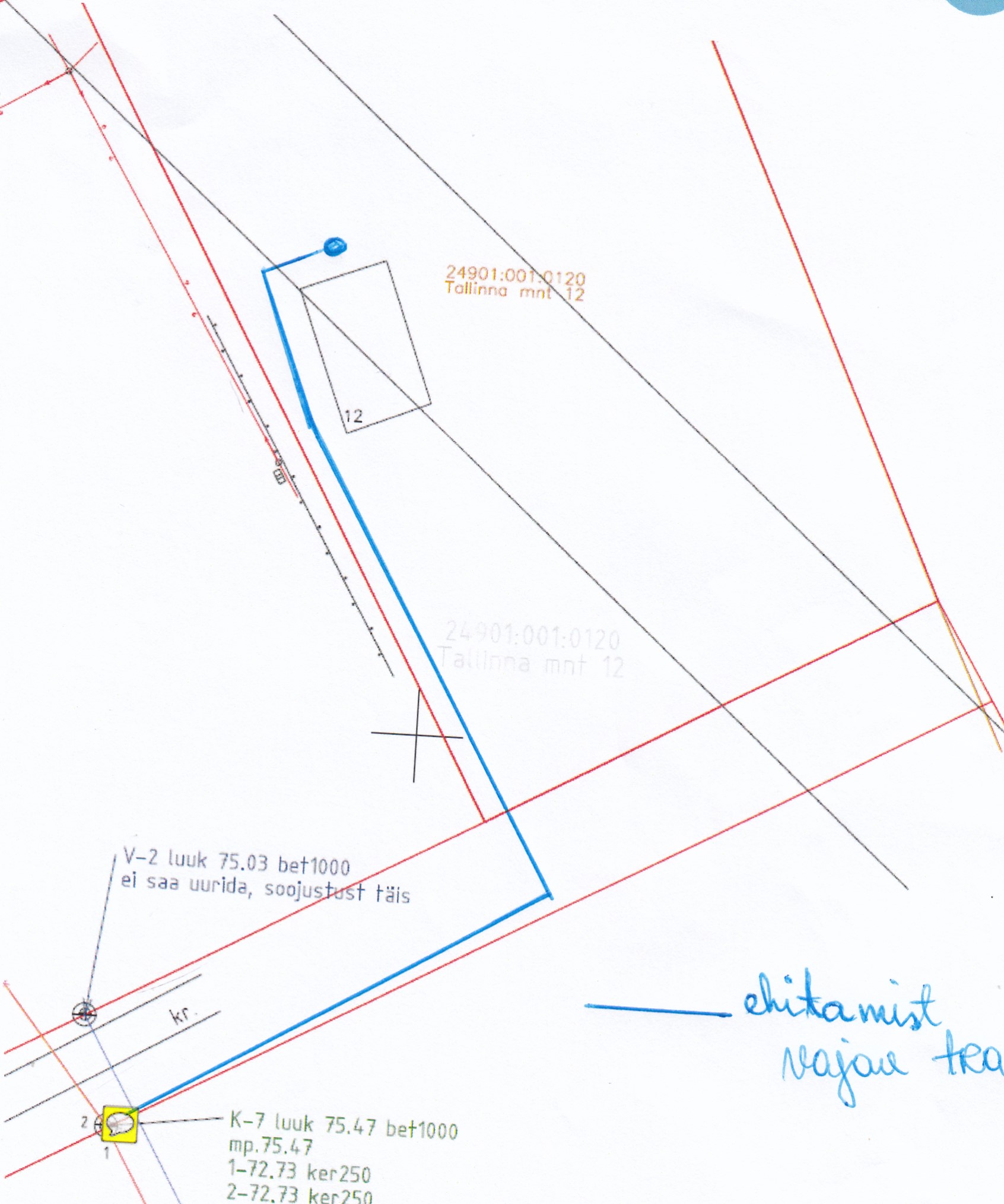 Eramaja välise kanalisatsioonitrassi ehitamine ühendamiseks ühistrassiga. Ehitamist vajava trassi pikkus on 105 meetrit. Saab ehitada isevoolsena. Vajalikud teostusjoonised.