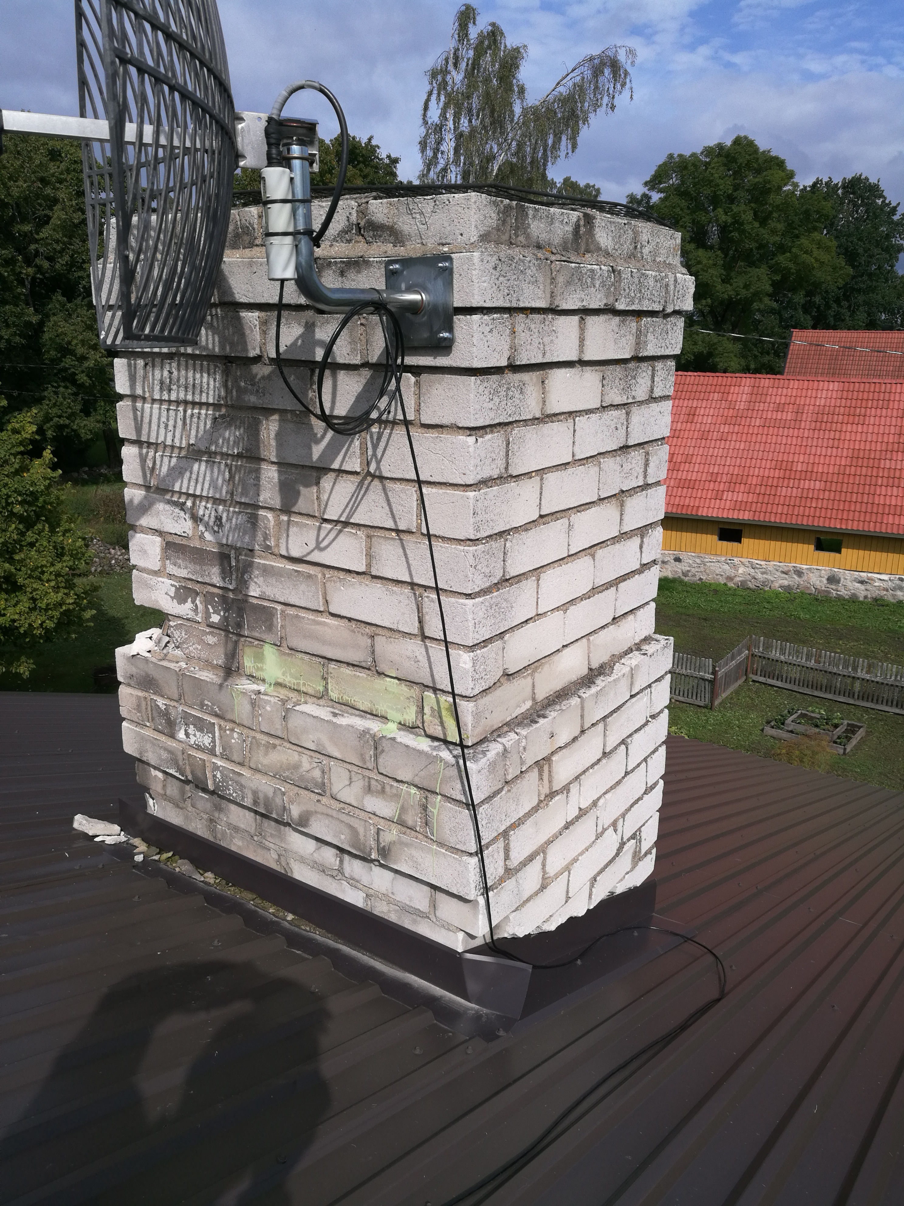 Katusest väljaulatuva korstna mõõtmed on: Laius 105 cm, sügavus 91 cm, kõrgus 200 cm.
