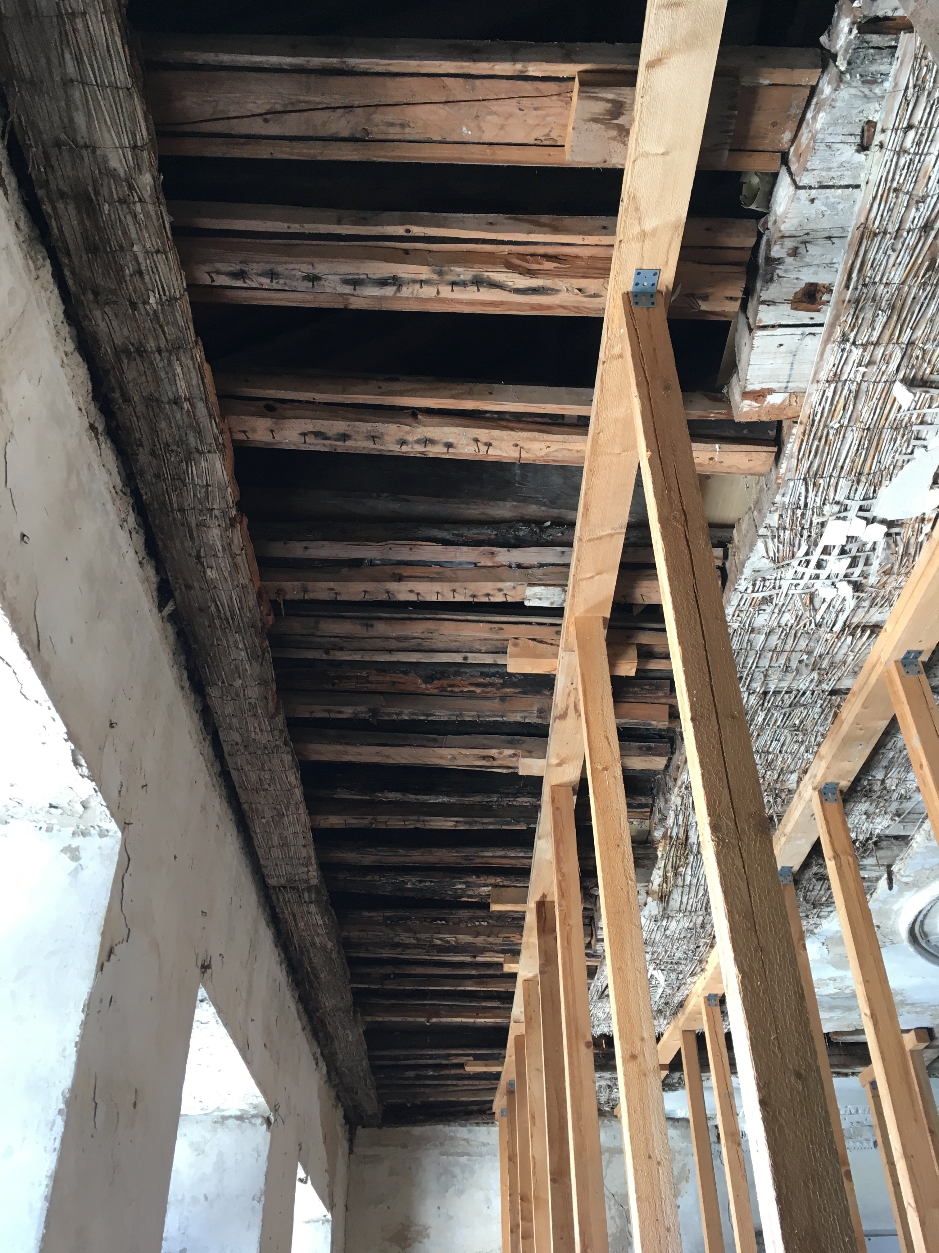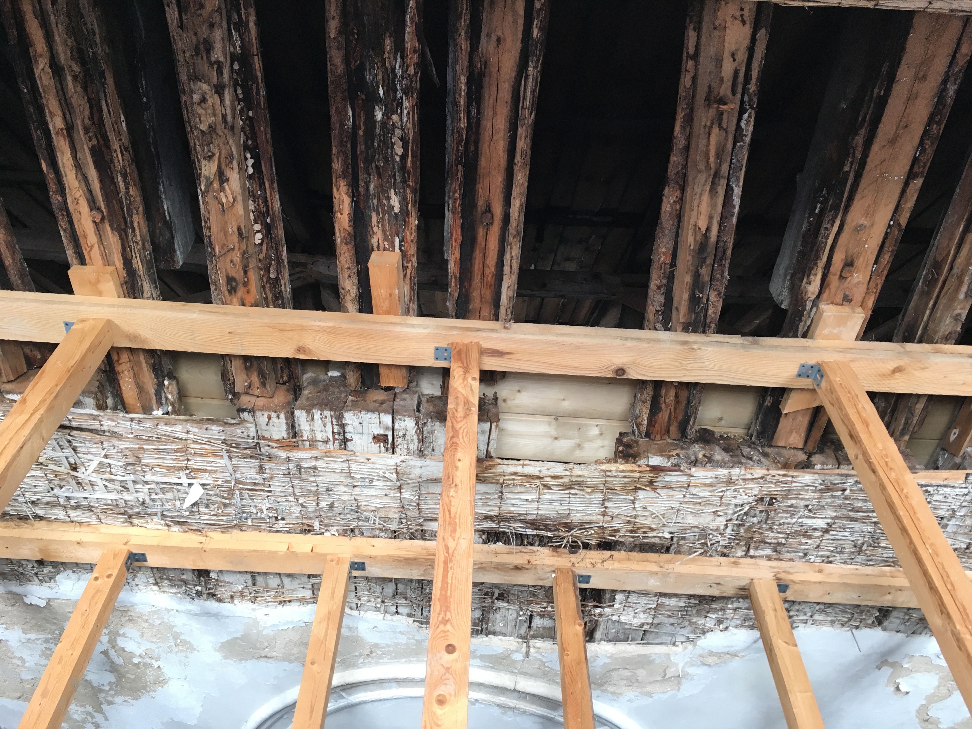 1. Saaliga ja trepihalliga külgnevate ruumide 21, 25, 29, 33 kohal asuvate katusekonstruktsioonide taastamiseks (sarikate proteesimiseks).