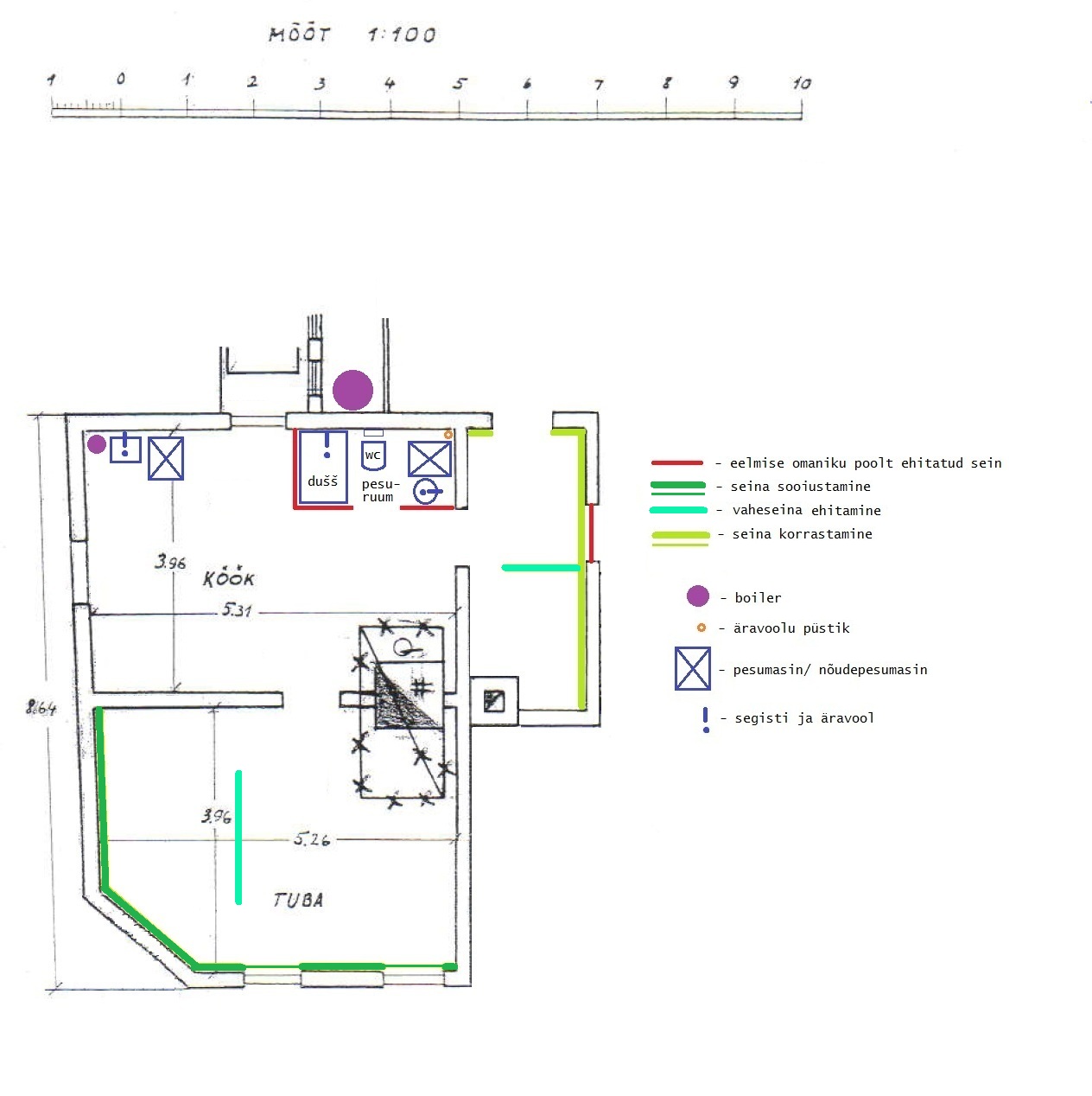 * Toa keskele vaheseina ehitamine : Elutoa keskele vaheseina ehitamine ja värvimine (2 m lai).