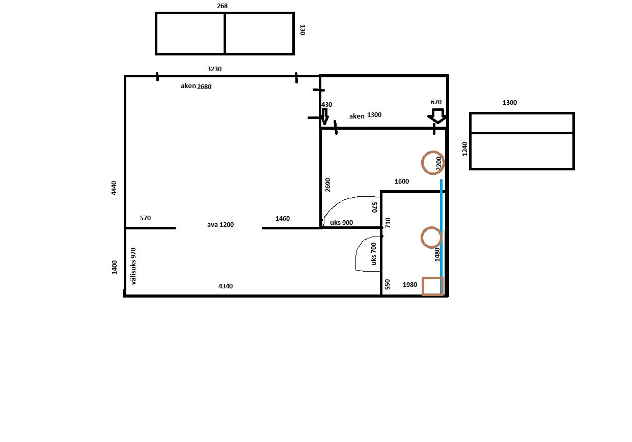 -Uksed paigaldada 3tk(köök+vannituba+korteri välisuks).Vana välisuks tuleb eemaldada