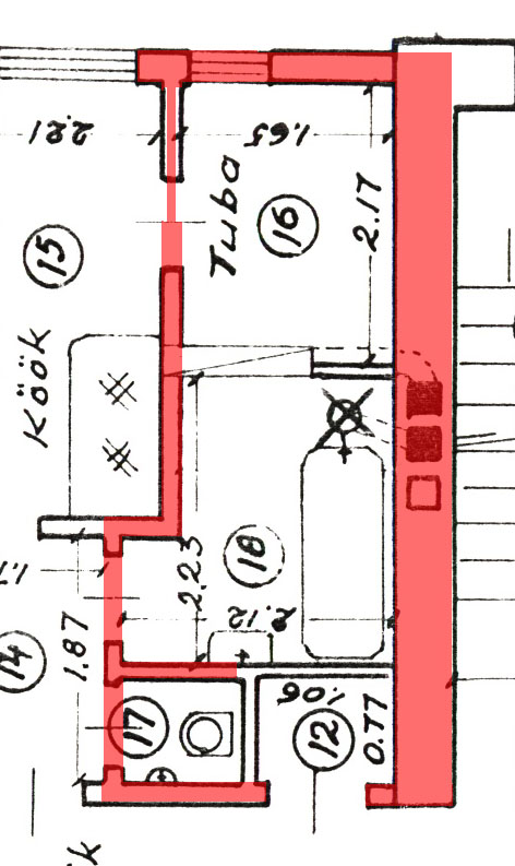 * ümber paigutada gaasikatla jaoks veetud vesikütte torustik (projekti järgi).