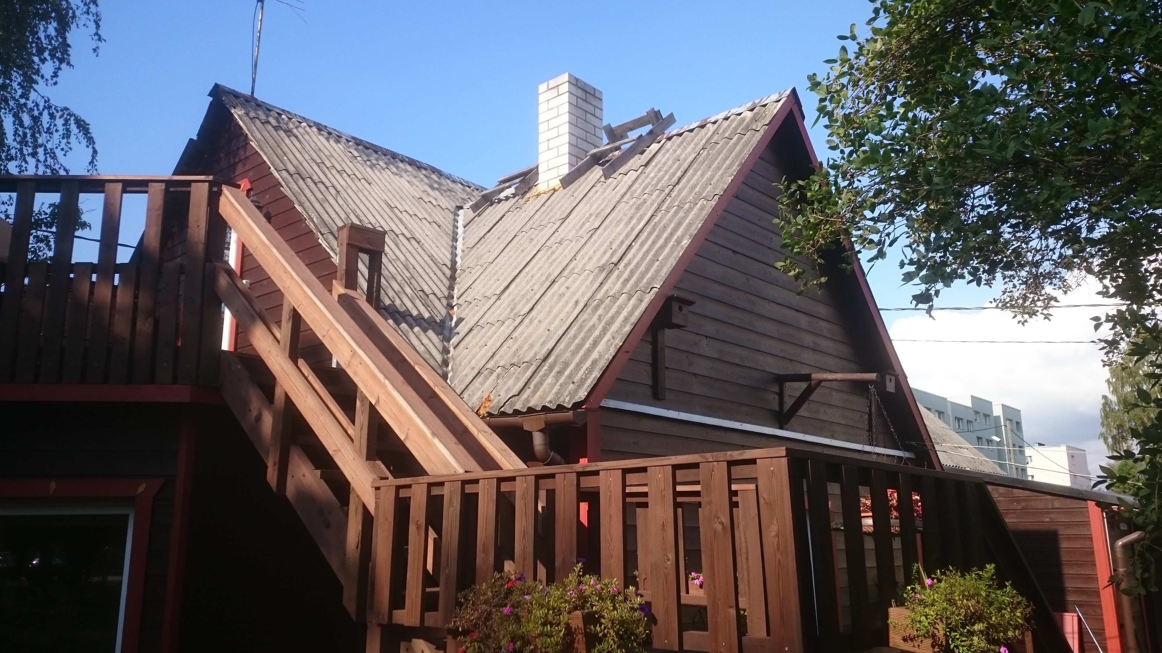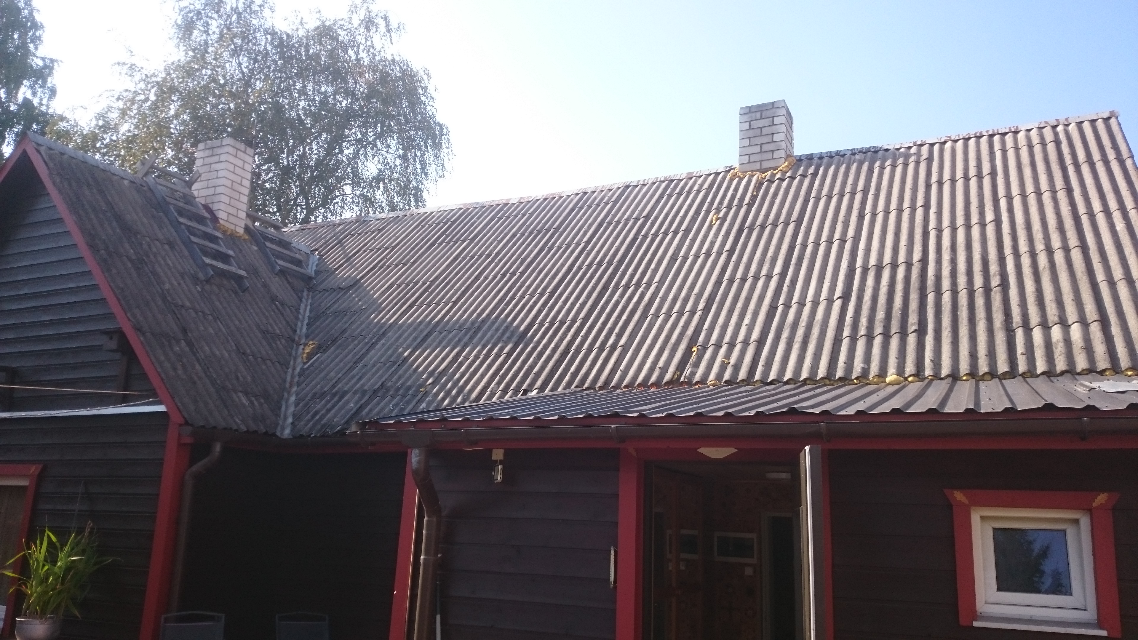 Katuse pind 142m2 (eterniit /sindel). Vaja oleks eemaldada vanad katusekatted ja paigaldada uus roovitus, eterniit ja harja ning räästaplekid. Utiliseerimist vajaks ainult vana eterniit ülejäänud puitmaterjal jääb objektile.