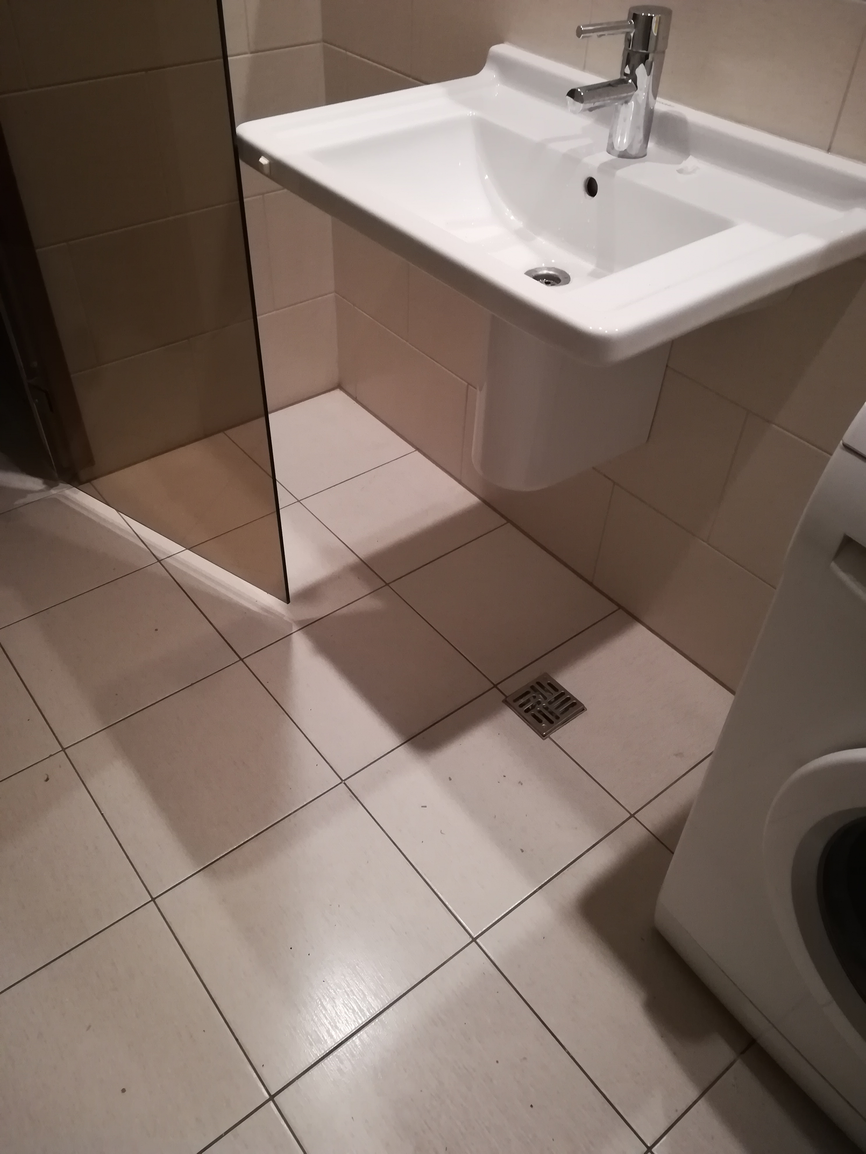 1. Valada dushinurga jaoks kõrgendus ~70mm, paigaldada äravoolu renn ja ühendada see olemasoleva äravooluga. Uus valatav alusplaat 820*1000*70 mm (=0,06 m3). Paigaldada äravoolu trapp (renn).
