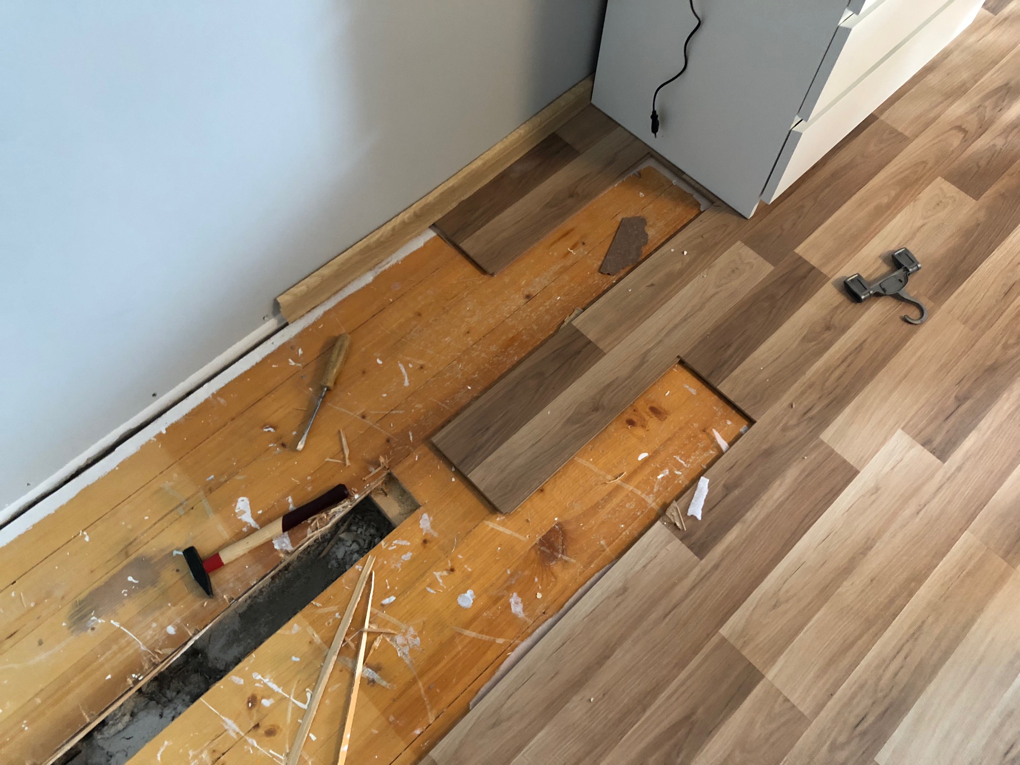 Hind tehtud hankes soovitule . Utiliseerimisega (laminaat. Kipsseinad . Põrandaplaat). Kui laminaat peaks mingil põhjusel liimitud olema muutub hind 20 % kõrgemaks . Ruumid eelduse kohaselt peavad olema puhtad. Käivet ei lisandu.