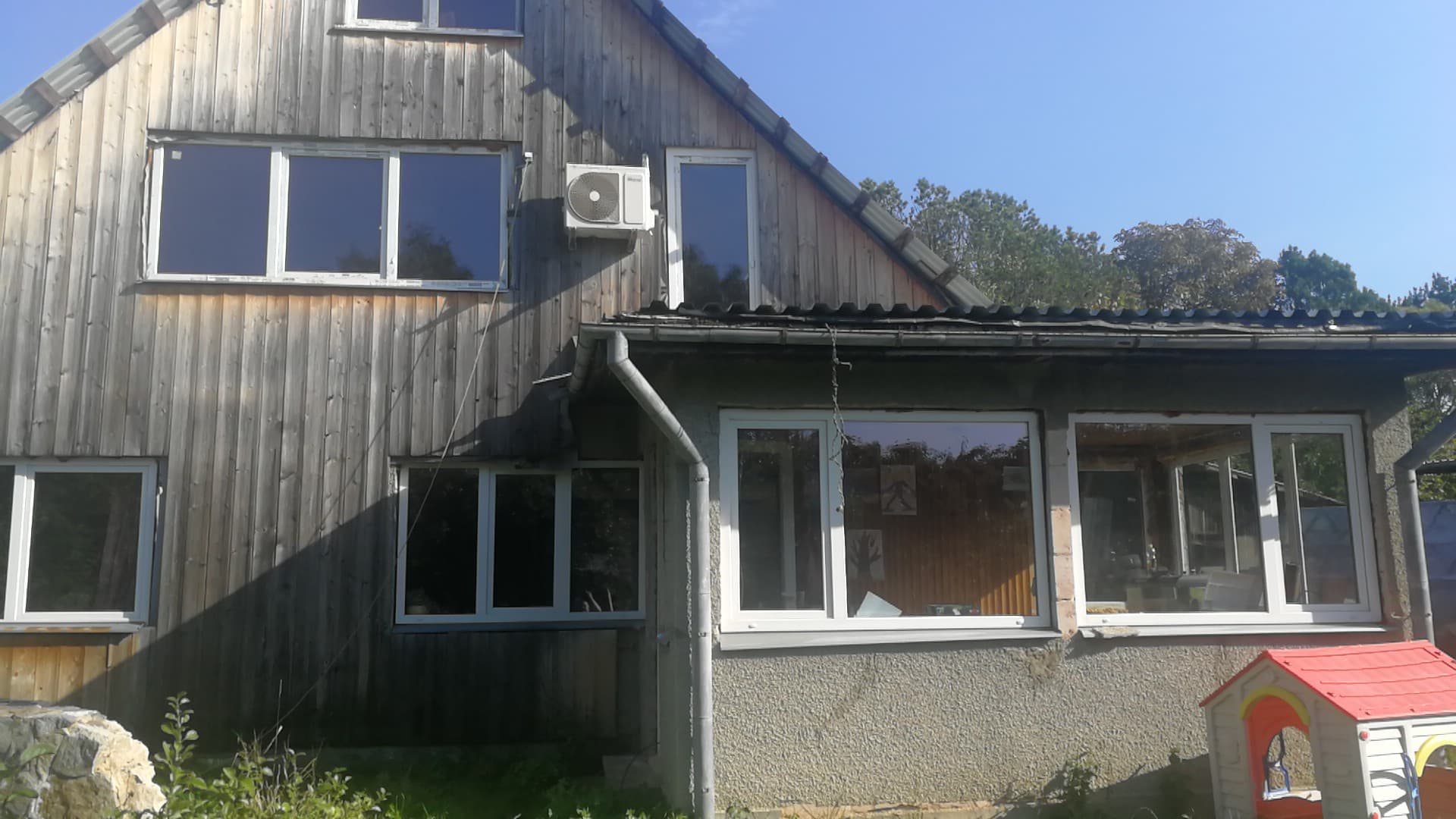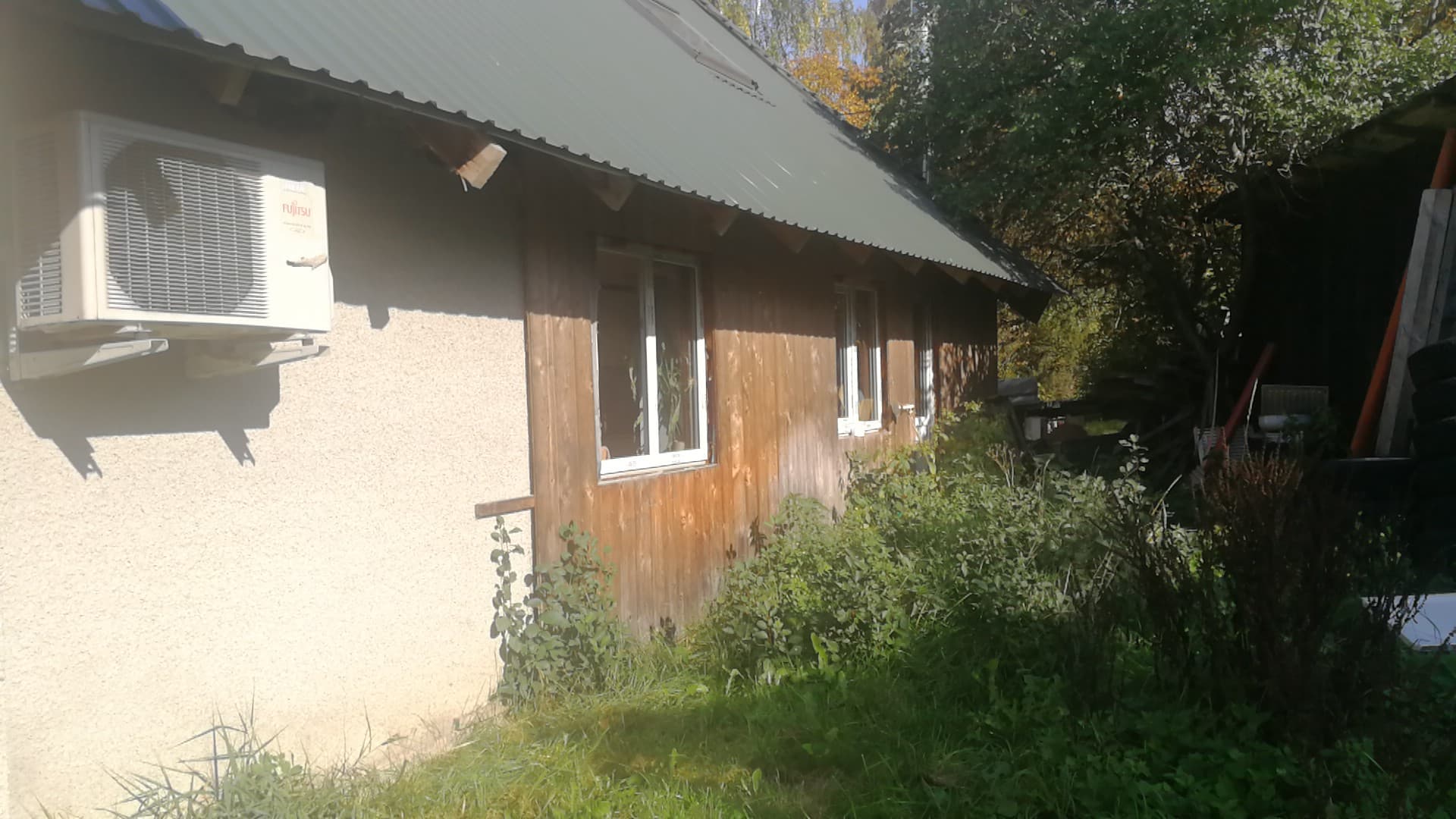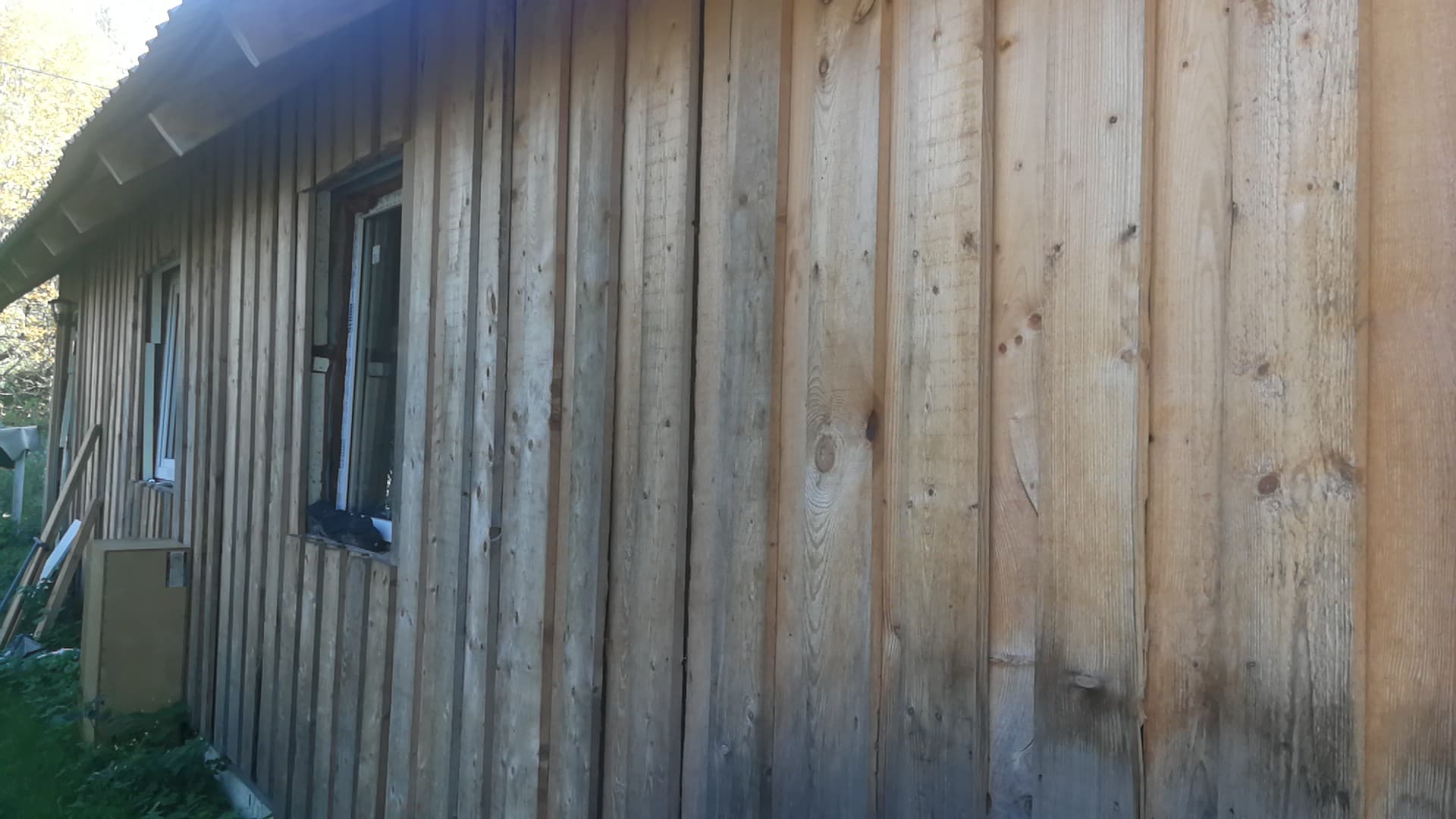Väikeelamul vaja eemaldada vana laudis(kruvidega), paigaldada roov, soojustus tuuletõkke plaat ja voodrilaud. Verandaosal(3mx2m) vaja demonteerida olemasolev ruberoid katus, paigaldada uued sarikad, roov ning plekk(terrassi valmiduseni). Tuulekastide ja akna piirete tegemine.