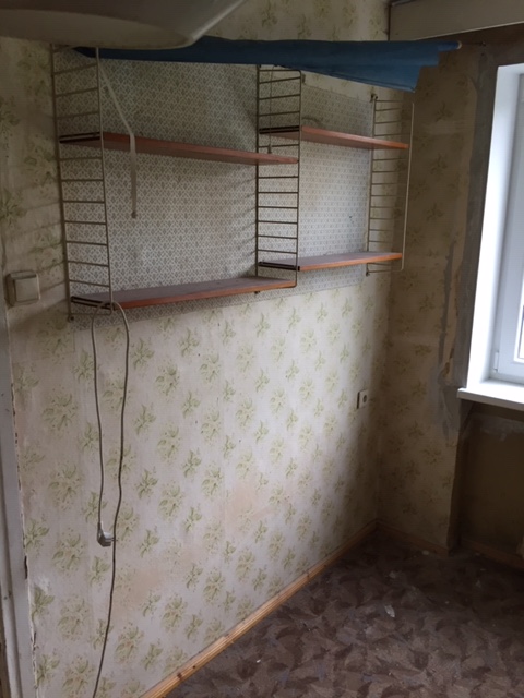 Seinad samuti hetkel tapeedi all- Tuleks tapeet eemaldada ,viimistleda ja värvida, põrand lihvida, elektrijuhtmed välja vahetada.