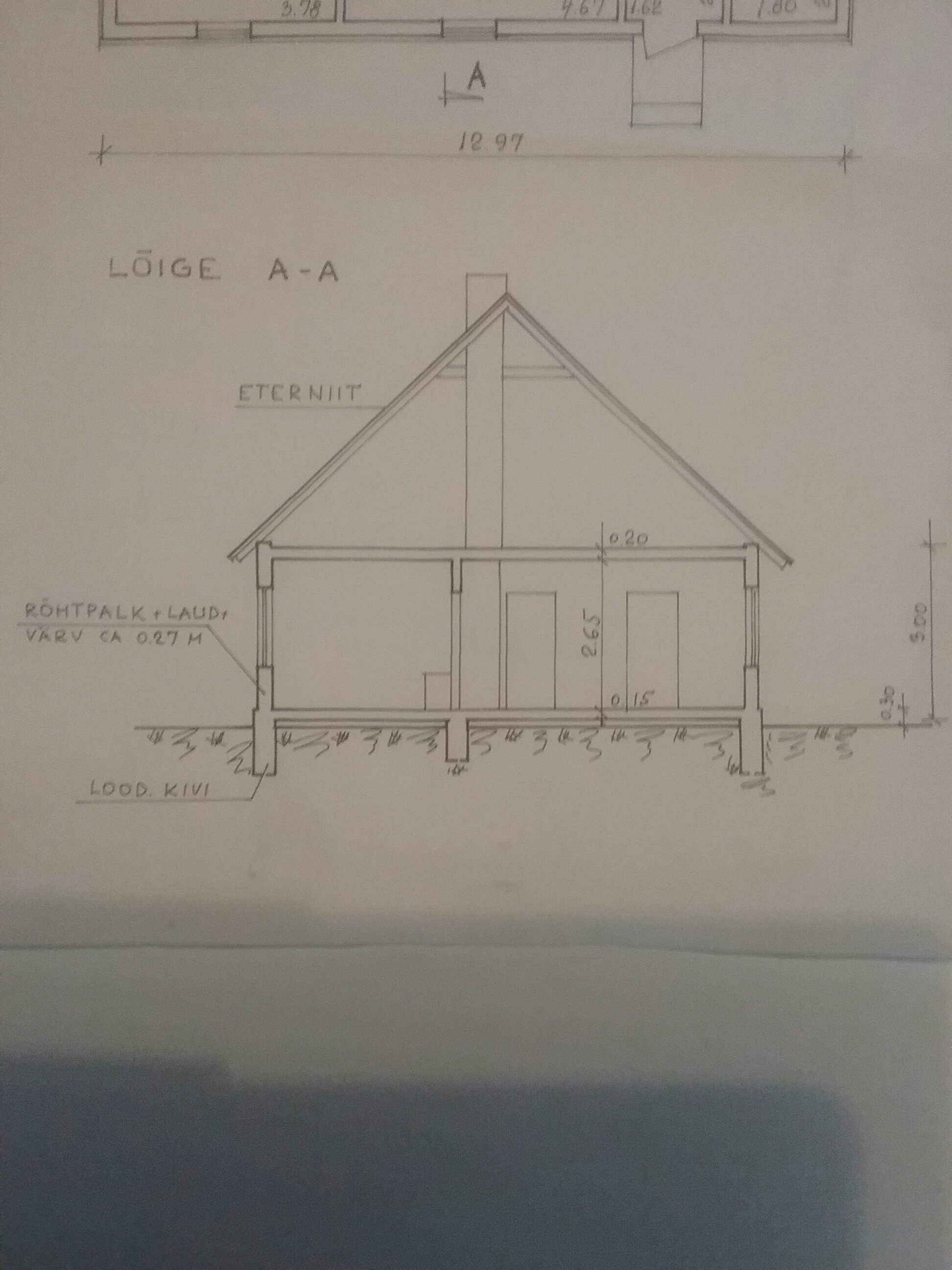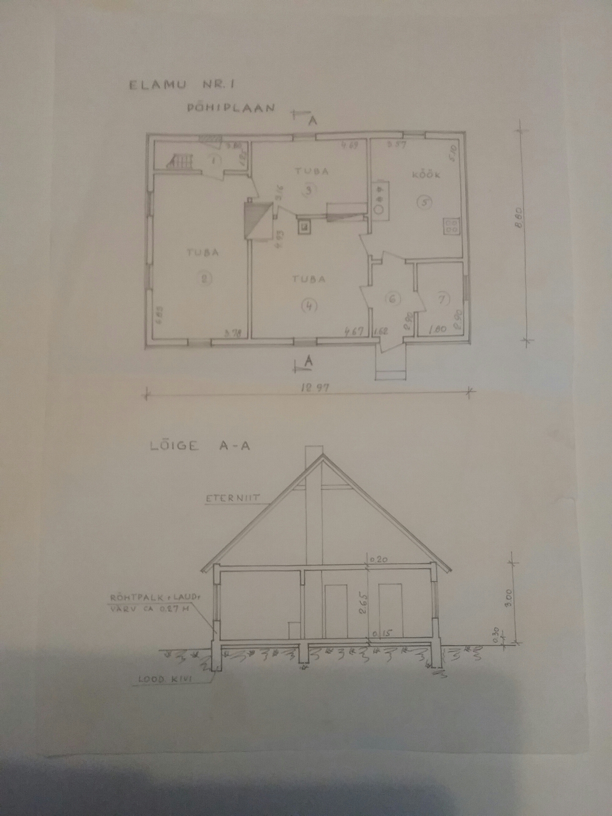 maja on ise13 ,2 m pikk ja 8,8 m lai majal peal viilkatus 45 kraadi katusepinda on umbes 200 ruutu katusepikkus 6,9 m ja laius 14,5 m vana talumaja hetkel lühemaks saetud vaja taastada ka see osa mis on saetud ilmselt tuleb ehitada karkasssõrestikust asemele taastatav osa on 3,8 m pikk ja 8,8 m lai majal üle vaadata ülemised palgid soov katusekonstruktsiooni tugevdada lisada sarikaid või hoopis uued sarikad tervele majale