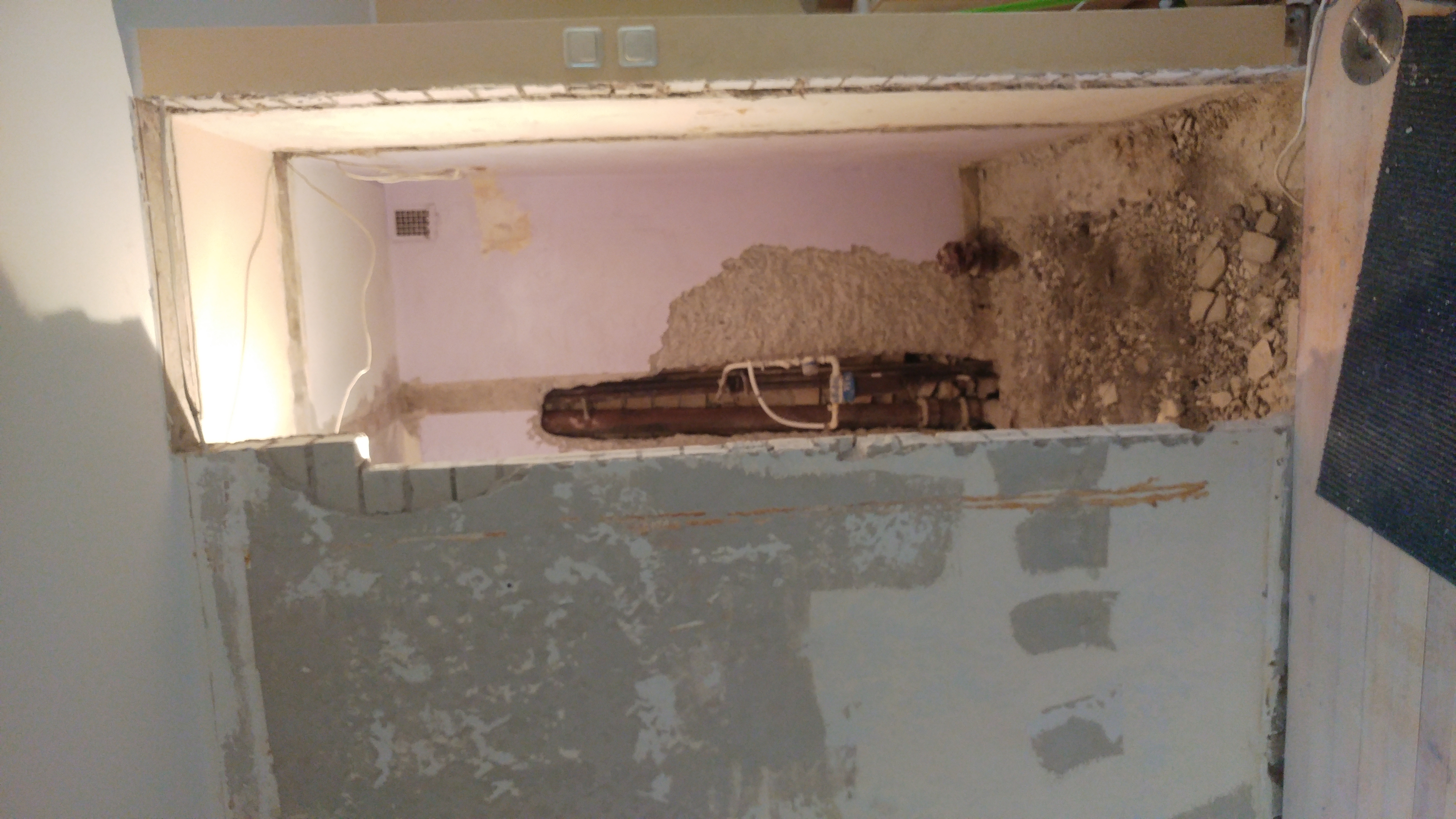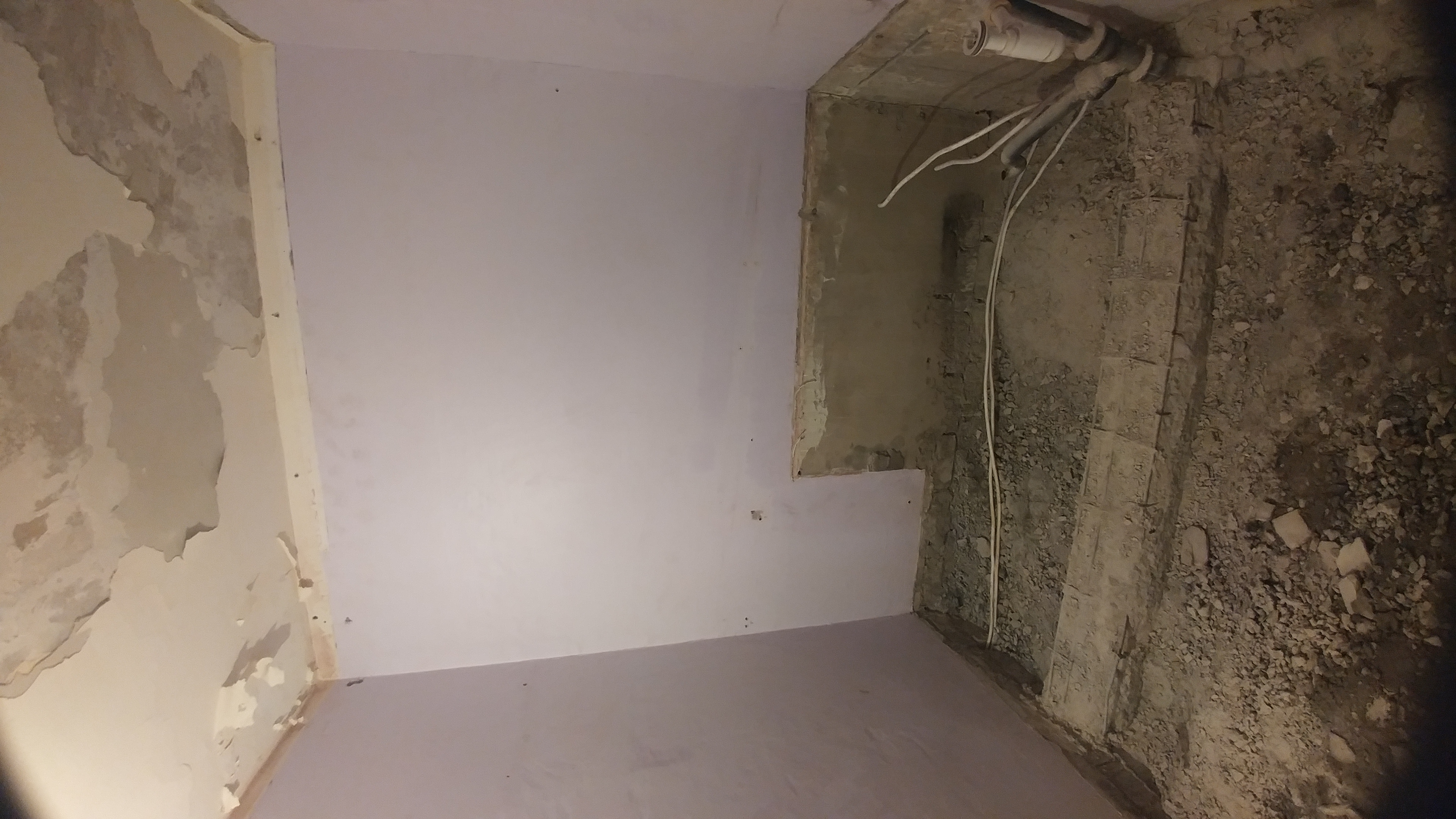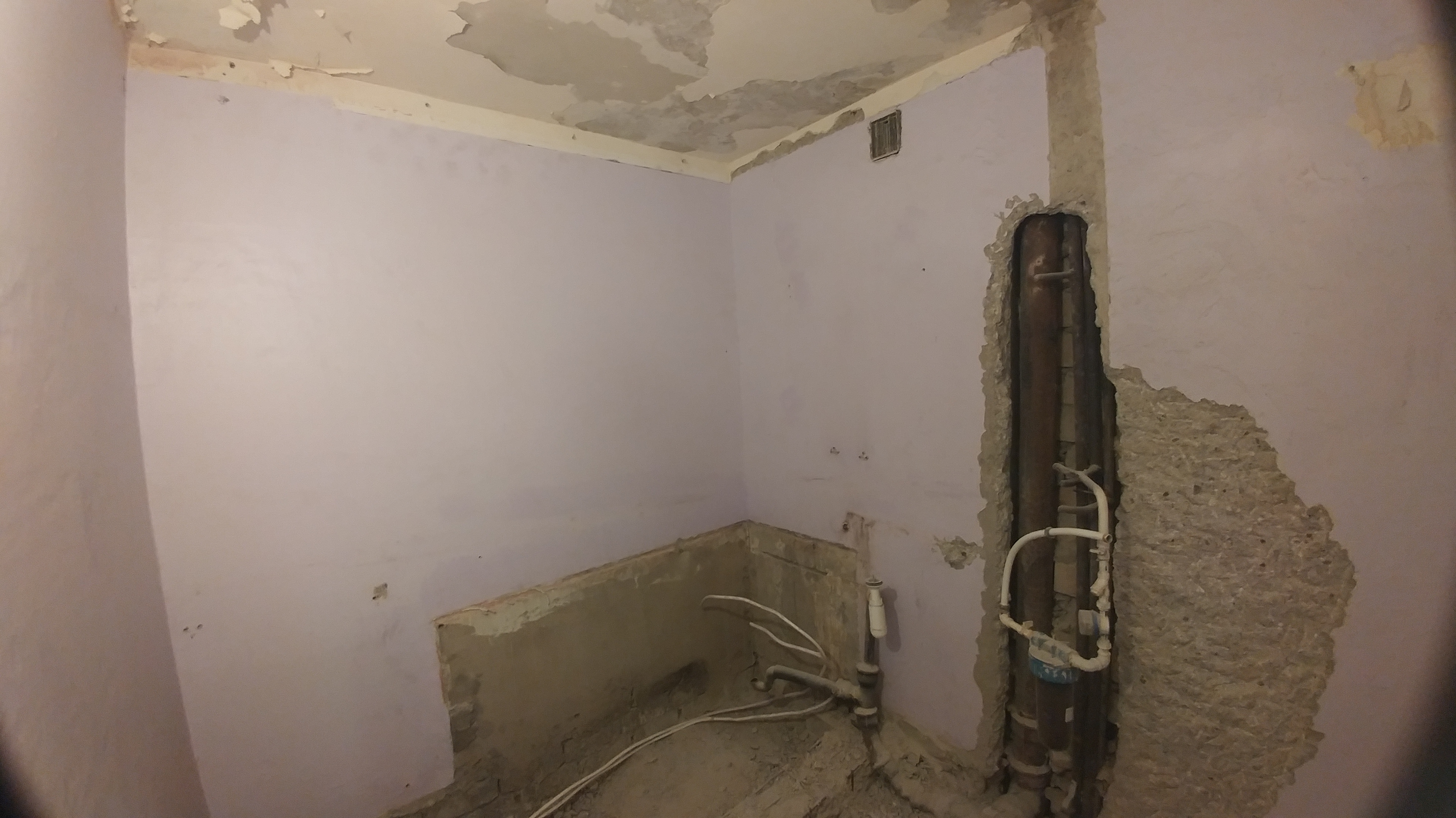 Lammutus tööd on teostatud. Esimese hooga tuleks torud ära vahetada ja torude poolne sein sirgeks saada. Teised seinad on korralikud. Plaanis on paigaldada kaabelküte põrandale koos soojustusmaterjaliga, vee äravoolu trapp, vann, wc pott, kraanikauss koos valamukapiga ja pesumasin.