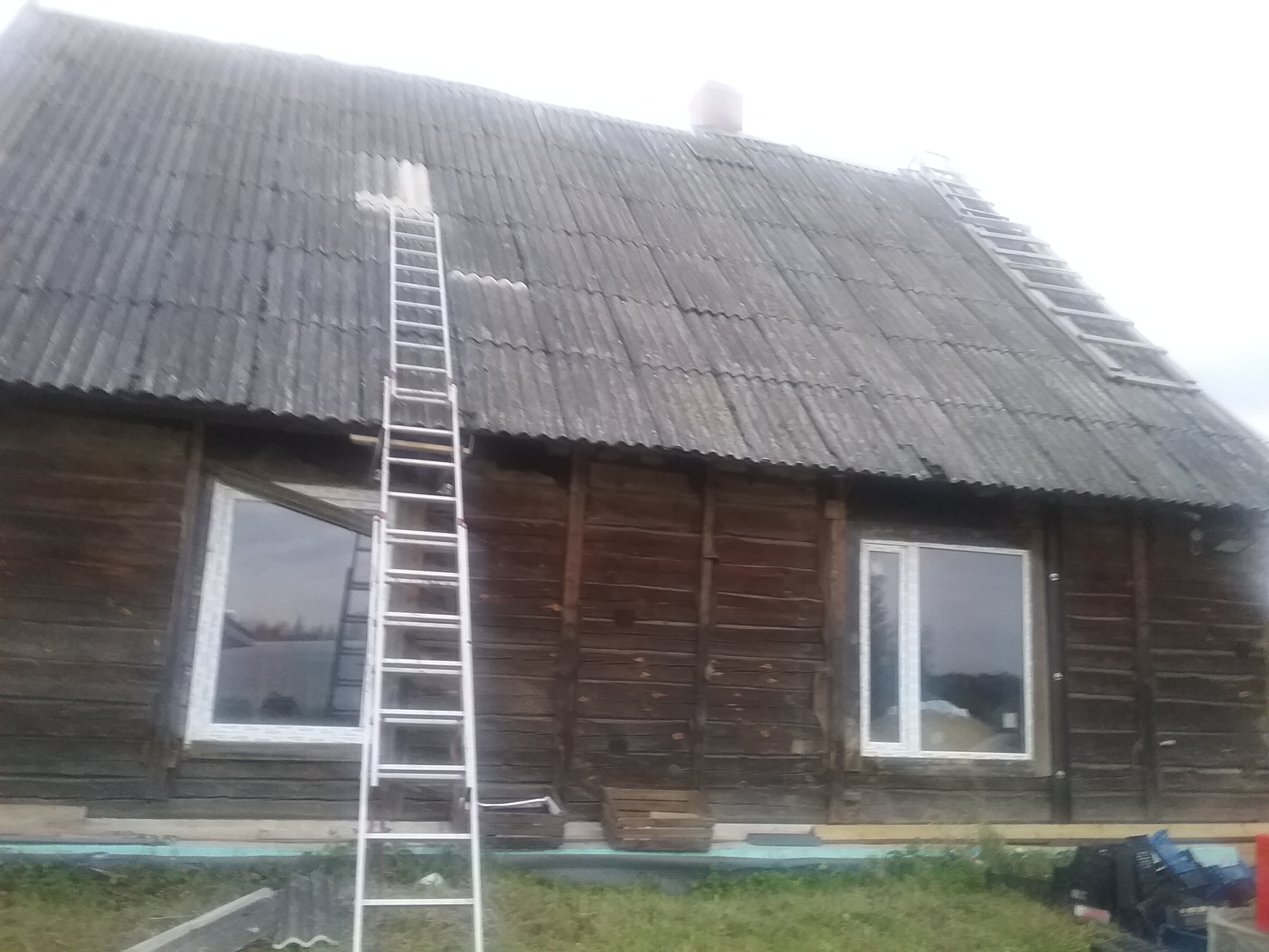 vana talumaja vajab uut katust hetkel maja lühemaks saetud teostada puitkarkassehitis taastatavale osale mis on 3,8 m pikk ja 8,8 m lai ja nende omavaheline sidumine soov saada uuele osale puitkarkass välise tuuletõkkeni konstruktsioon( 100 x 200 ) laetalade ,100 x 200 paigaldus kandevtalade ja postide paigaldus sarikate ja roovide paigaldus alusvöö paigaldatud.Sellele osale mis on praegu enterniidi all võiks lisada täiendavaid sarikaid või teha nii kuidas ehitaja otsustab.Kindlasti tuleb veel maha võtta viimane sarikapaar ja selle all ülemine vöö osaliselt vahetada teised sarikad on korralikud aga väga suure vahega veidi vajunud kaardu Tahan sirget ja tugevat katust tulevase katusekatte osas sooviksin nõuandeid ehitajatelt kuigi eelistan kivikatust ei tea kas see on ka mõistlik sellele majale soovin et katus oleks tormikindel ja ei koliseks
