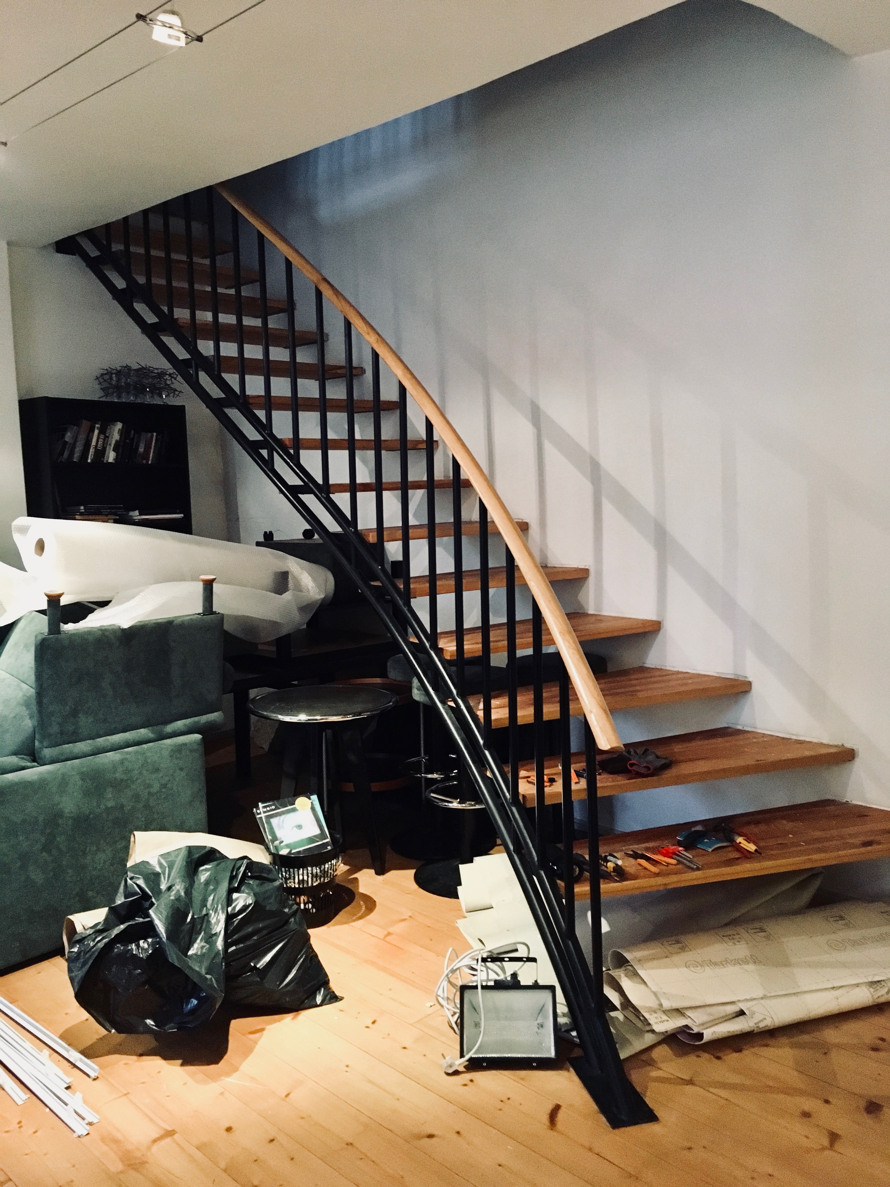 Trepi astmed viimistletakse ja paigaldatakse tagasi, astmed ja trepp tuleb katta ja seejärel krohvime trepi seina nii, et astme otsad jäävad krohvi sisse. Enne krohvimist tuleb sein kruntida, et tagada nake.