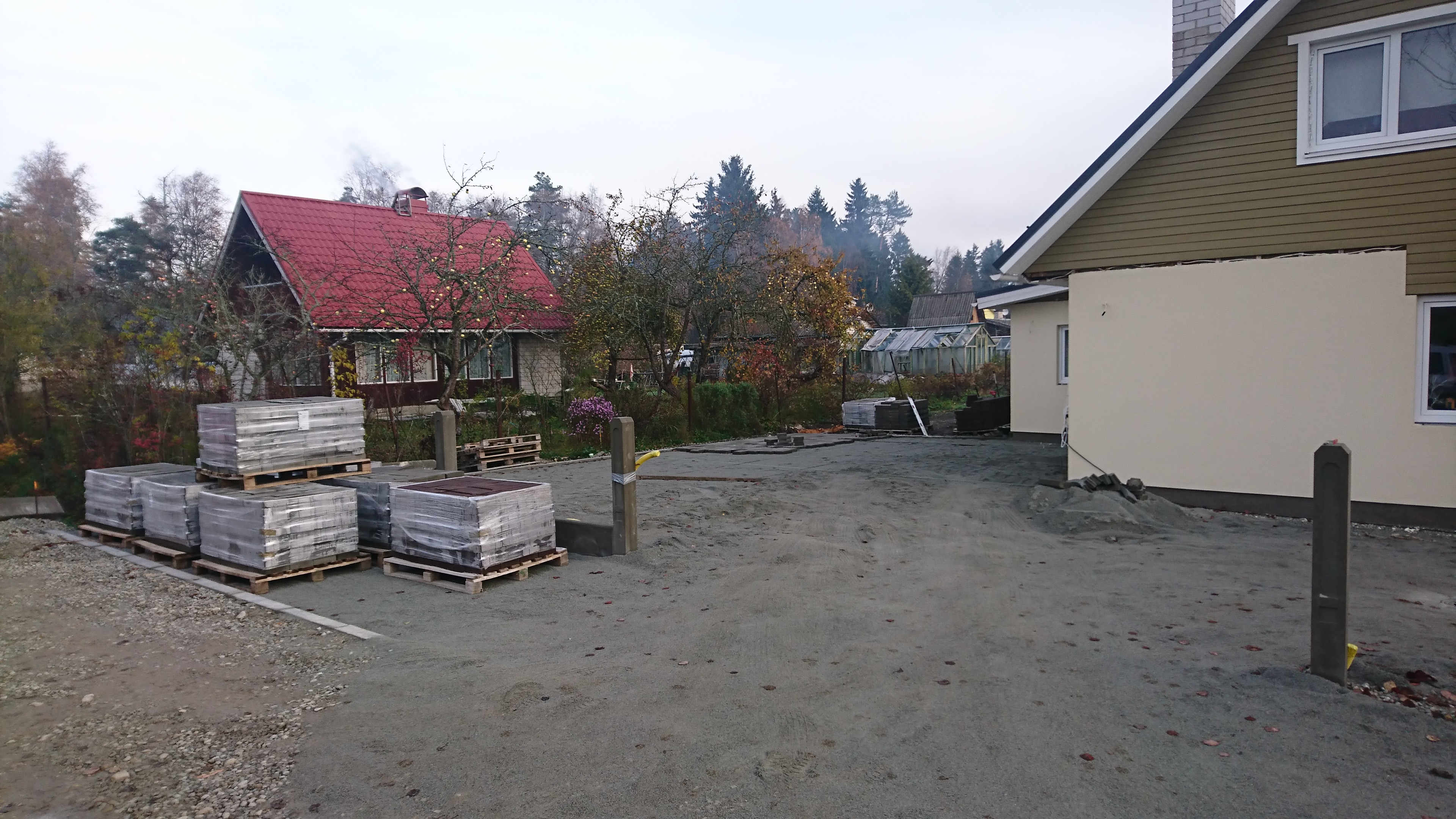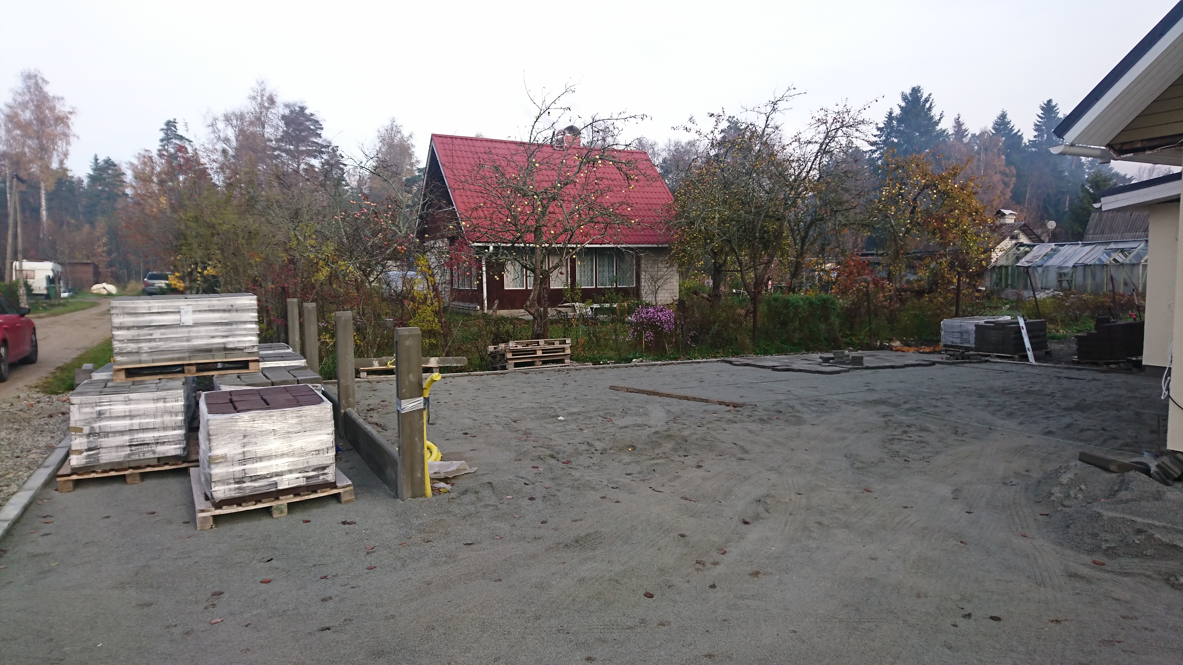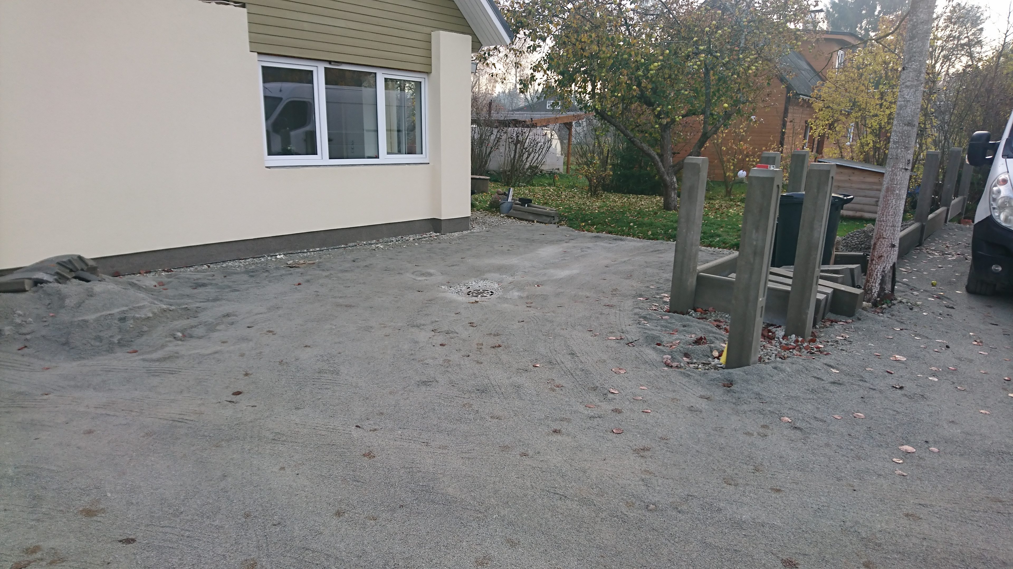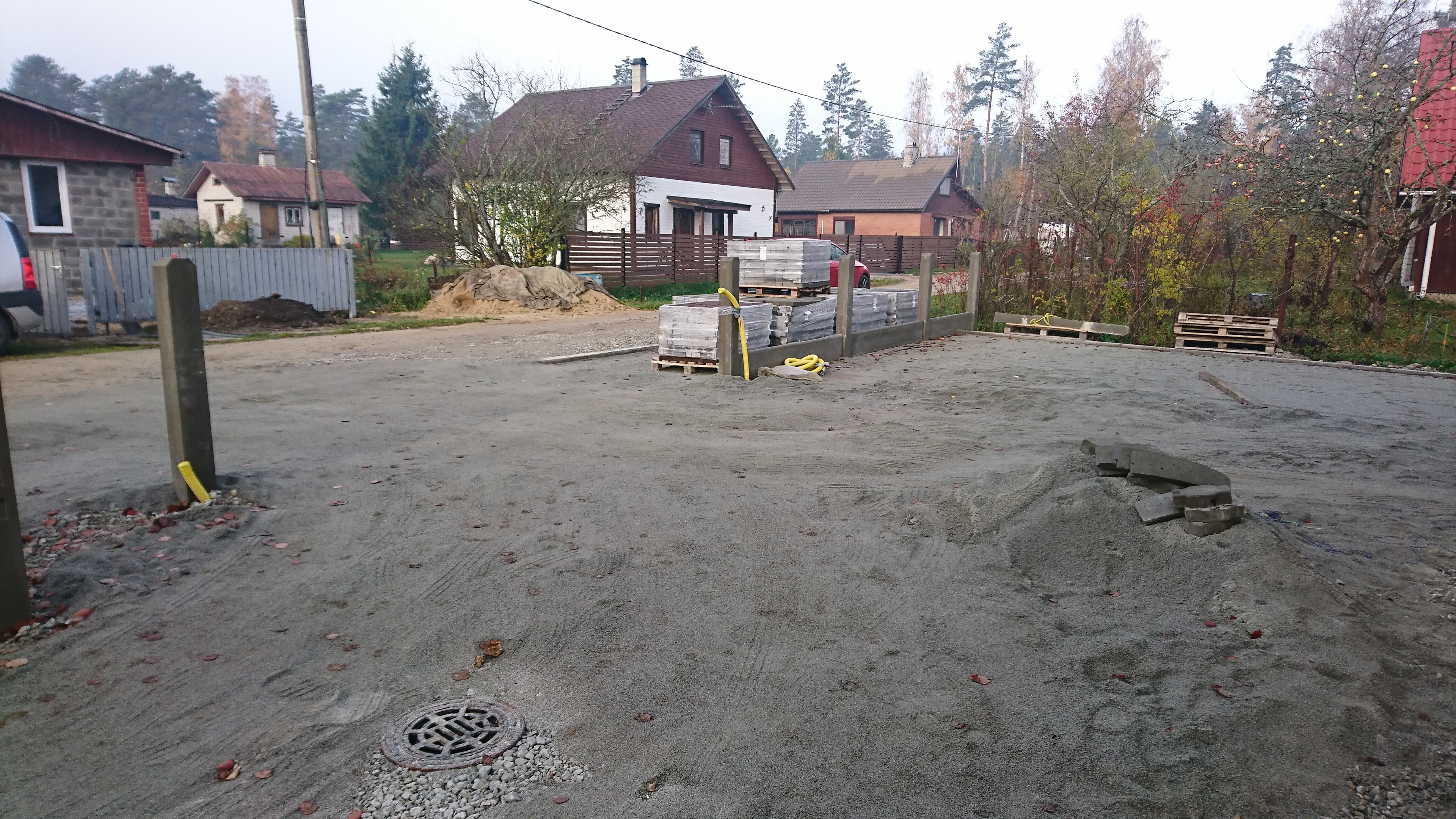 Vaja oleks siis paigaldada 225m2 tänavakivi ja 15jm äärekivi. Ülejäänud äärekivid panin ära. Killustikupõhi on tehtud, liiv on laiali loobitud. Asukoht Kiisa.