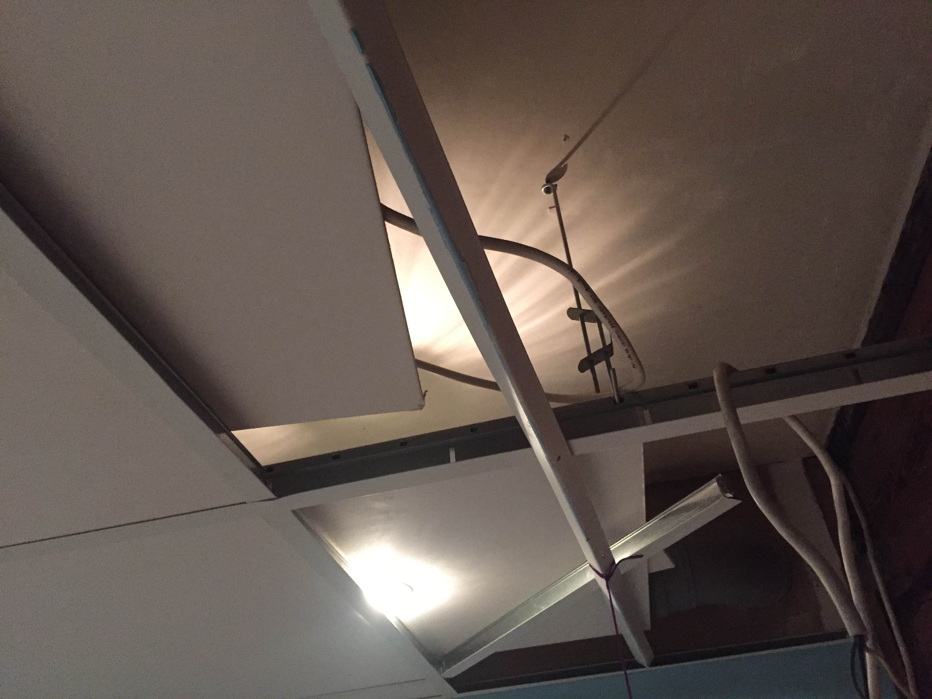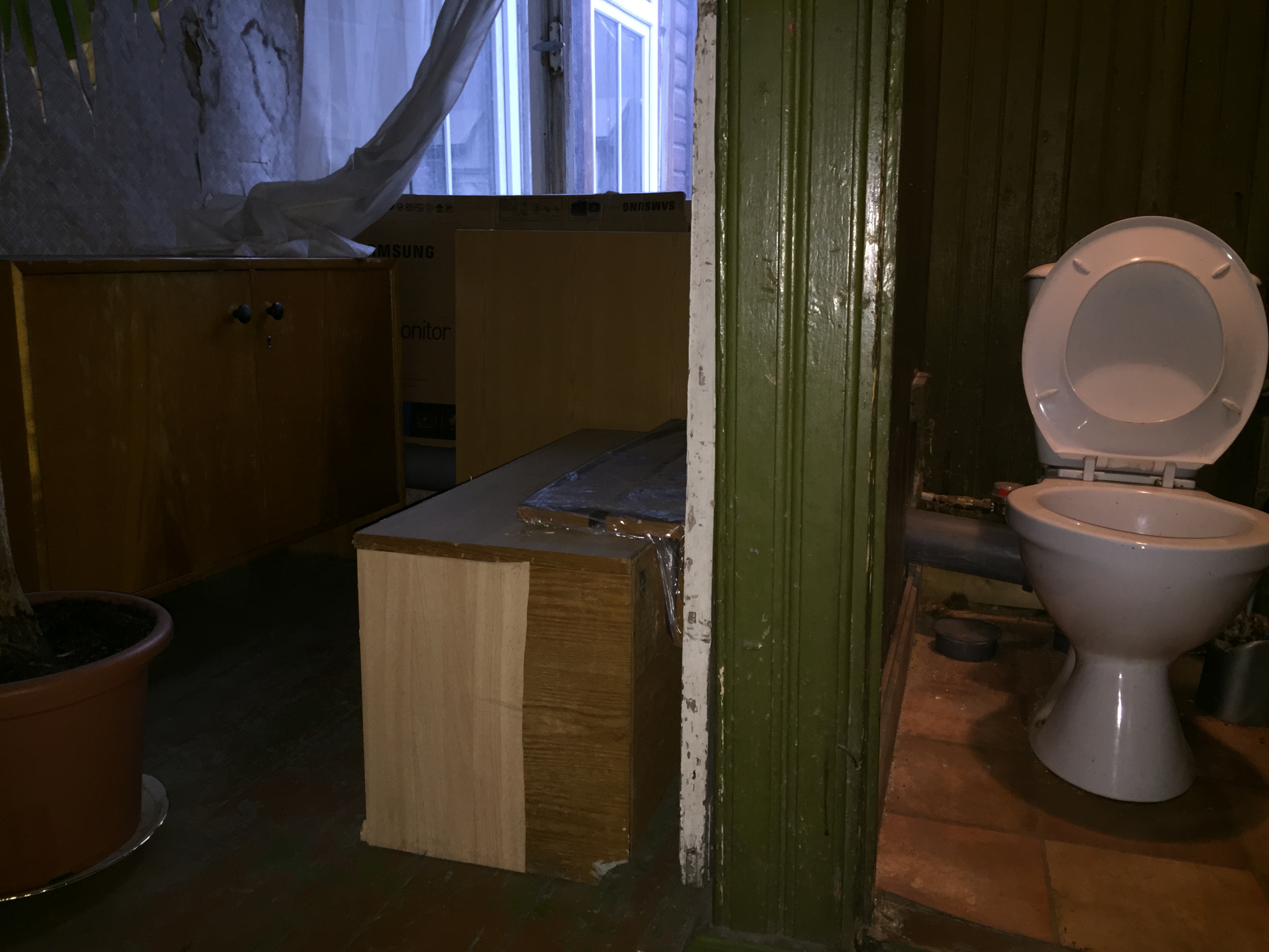 äravool on korterist koridoris oleva wc äravooluga ühendatud, kõikjal jookseb torustik põranda peal; pesumasina äravool on köögi torustiku kaudu, hetkel seisab pesumasin vannitoas. Vannitoas on ripplagi, lae all valgustus ja ventilatsioon (poolik). Ventilatsioon läbi seina kööki, aga korterist välja praegu ei ole suunatud.