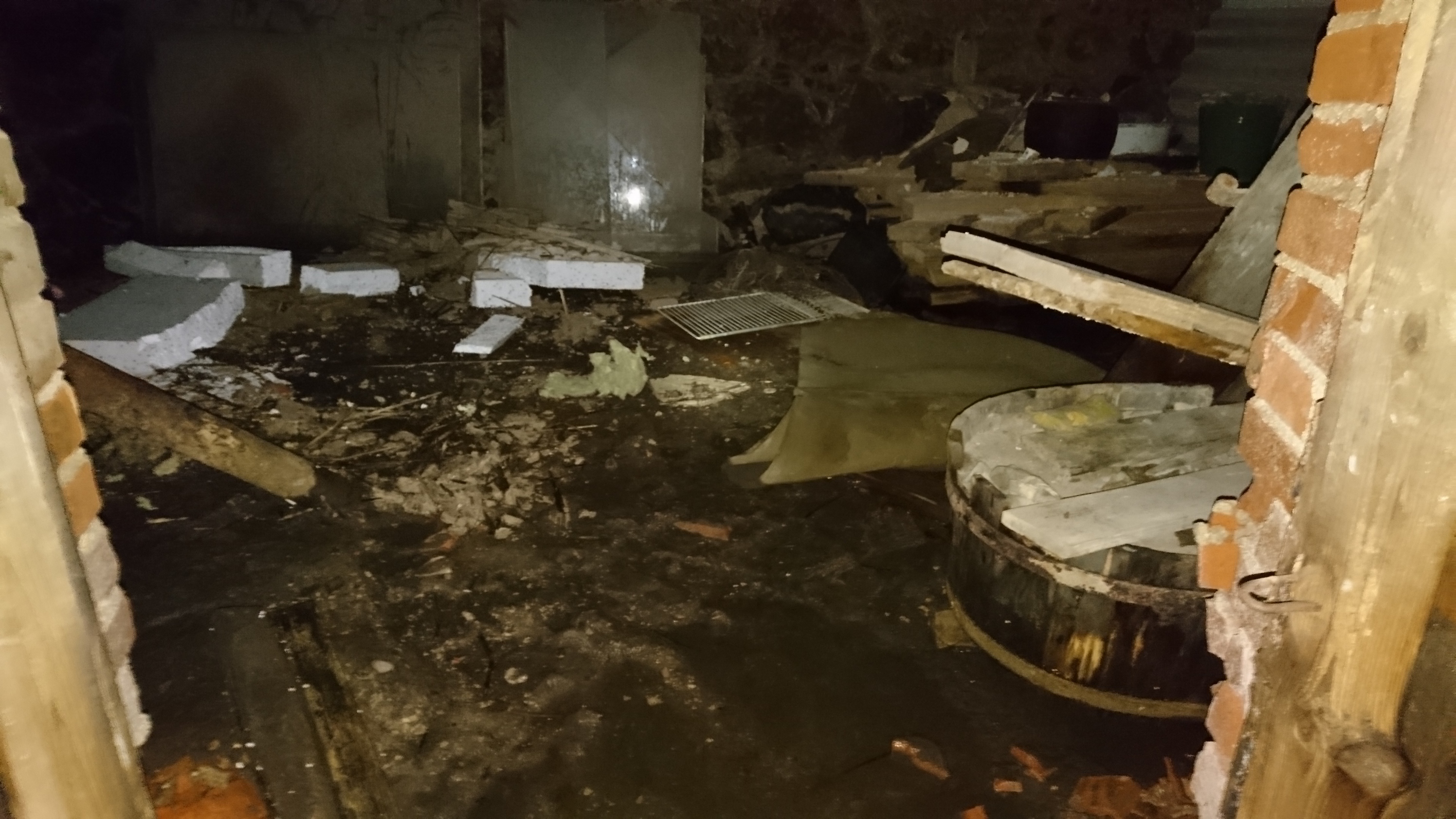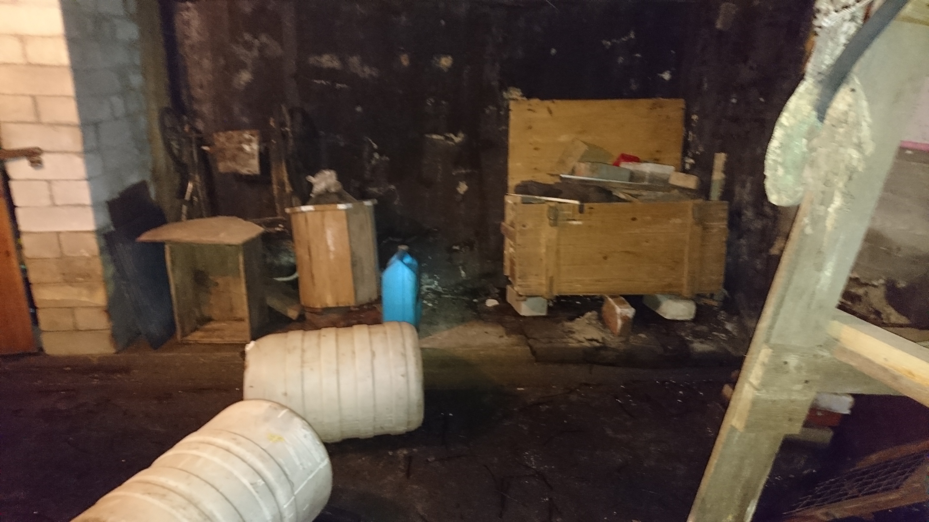 Lisaks tuleb ära koristada keldris olev valdavalt puitmaterjal, ent on ka klaasi, penoplasti jms. Konteineri/käru saab paigutada küllaltki keldri ukse ligidusse. 2-3 meheline brigaad peaks hakkama saama ühe päevaga. Prahi maht: 1-2 konteneritäit.