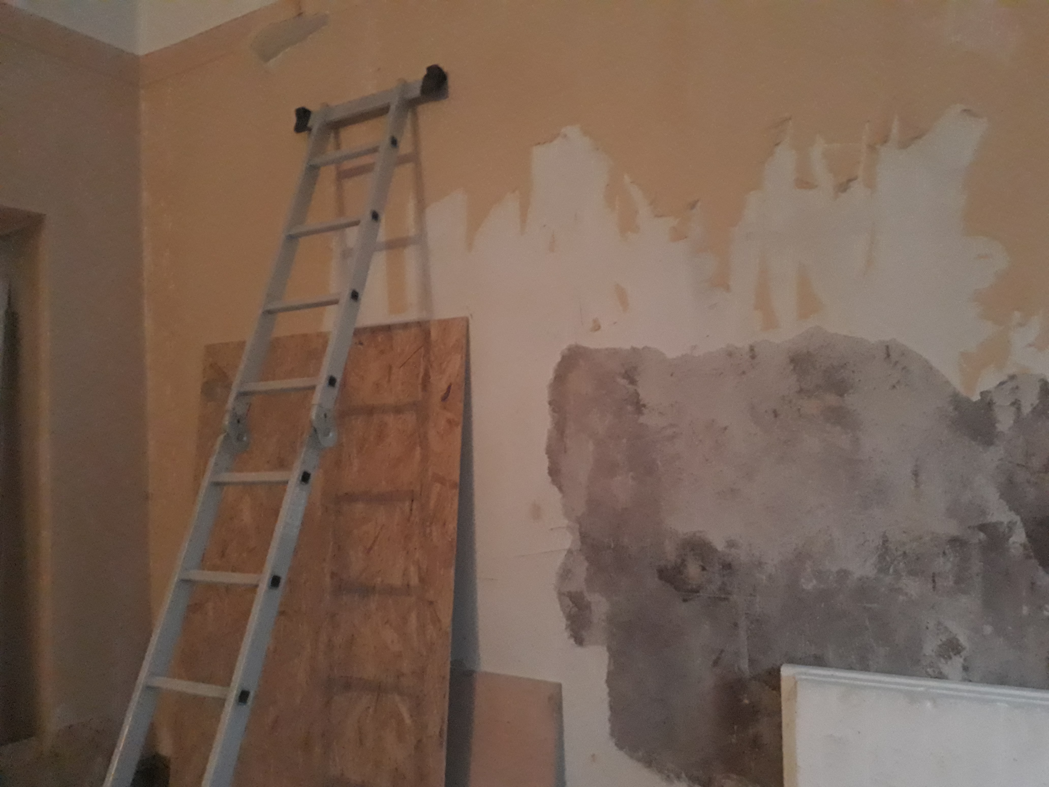 Tegemist on paekivist majaga. Eelnevalt on seinad krohvitud/pahteldatud/tapetseeritud. Mitmes kohas on vana krohv lahti ning ka see tuleks eemaldada. Umbes 30m2 ulatuses on sein paljas paekivi - see tuleb krohvida ja pahteldada.