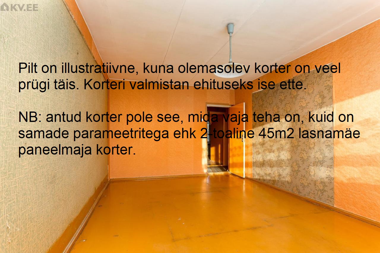 Pakkumine peaks sisaldama kogu korteri renoveerimist + elektritööd + vannitoa ehitust + põrandad + soojustus ja kõik ehk siis sooviks võtmed kätte korterit (köögi + mööbliga tegeleksin ise).