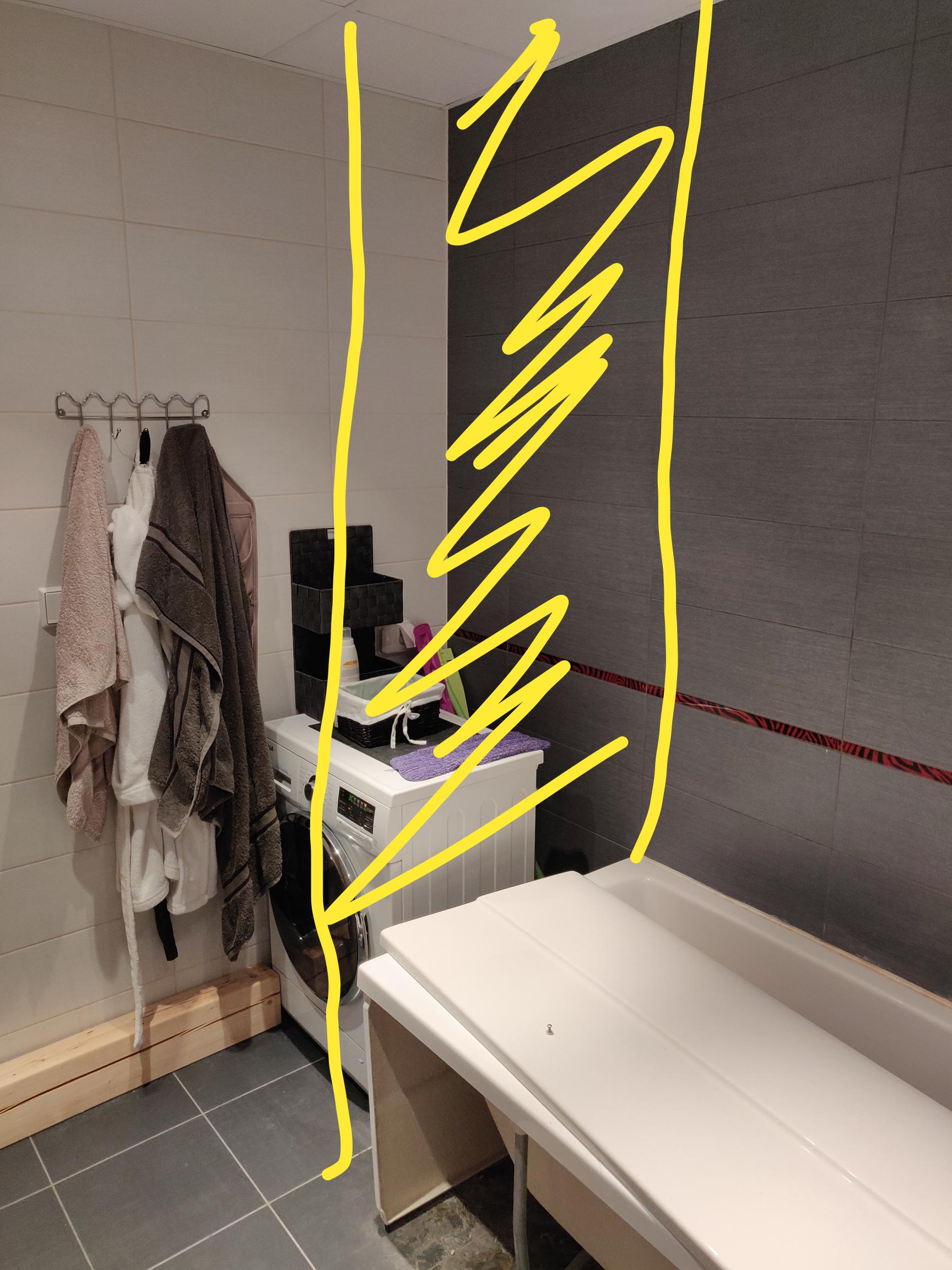 Vaja ehitada vanni ja pesumasina vahele vahesein (märg ruum) ripplaest paar cm kõrgemale.