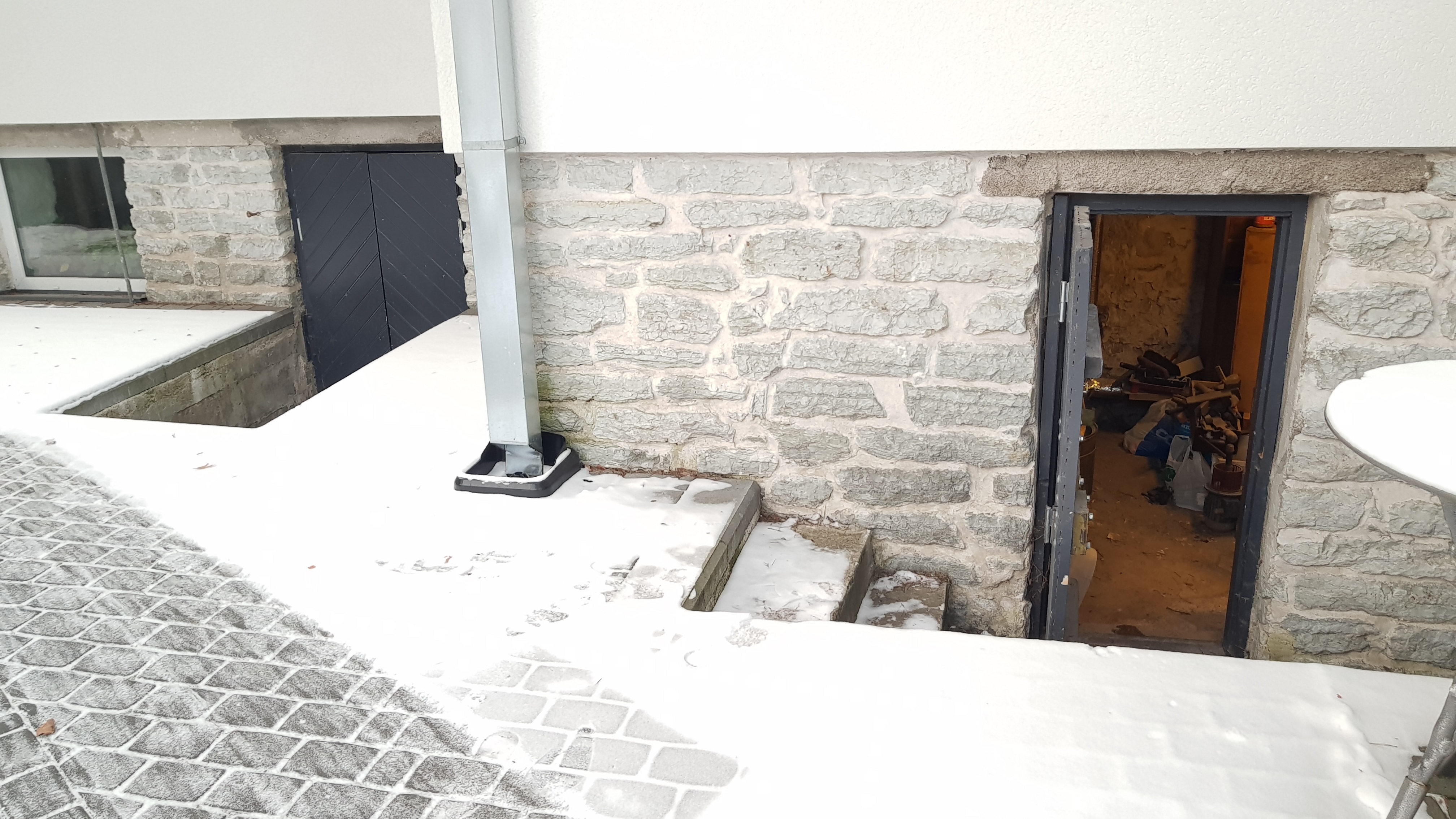 1. Keldri sisu tühjaks tassimine (vanad tööriistad, värvid, puitriiulid) kõrvalkelrditesse ja kõrval garaaši. Ca 1-2h