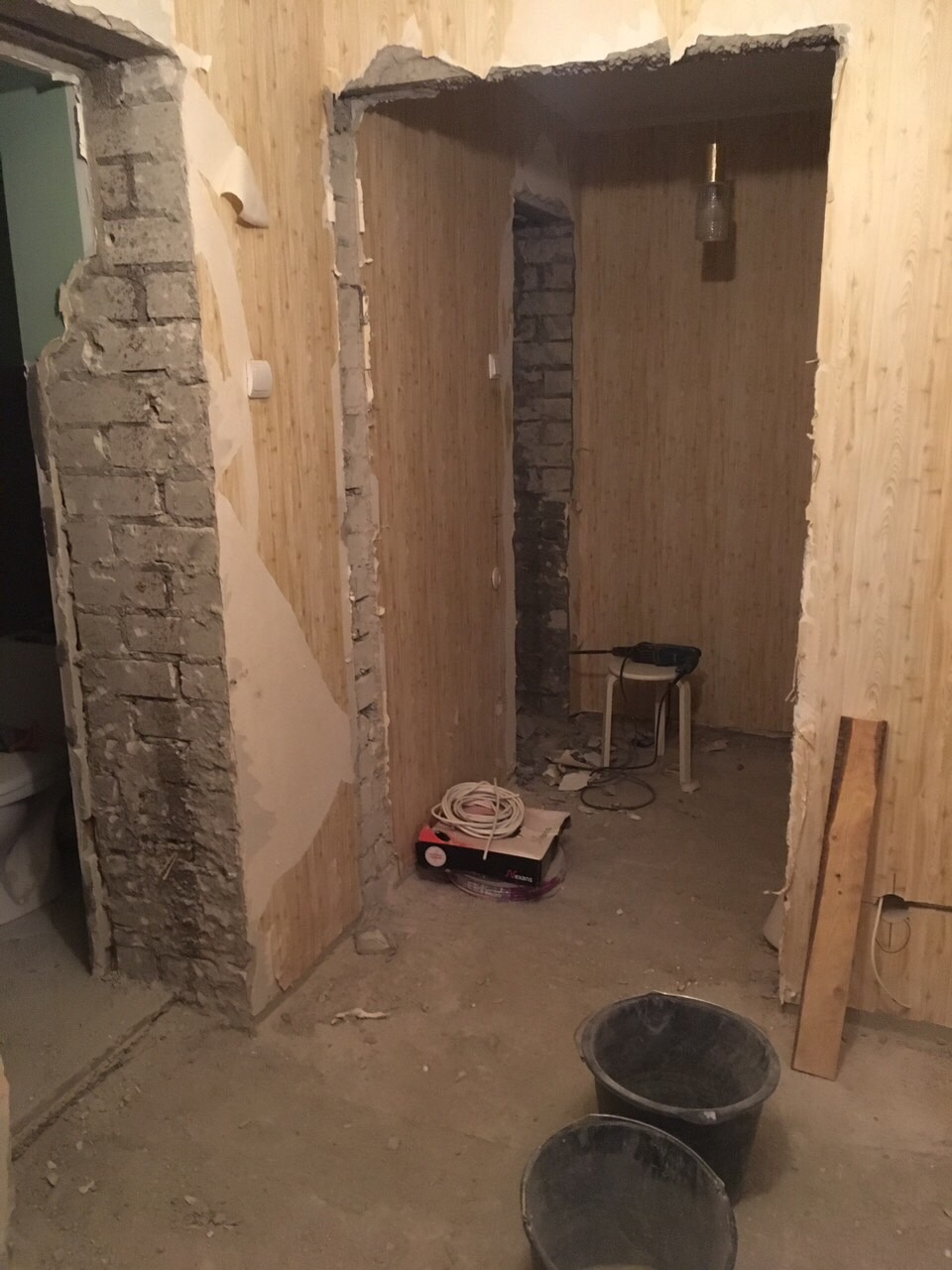 Seinad on puhastatud, uus elektrijuhtmestik veetud. Seinte kõrvalekalle max 10-15mm