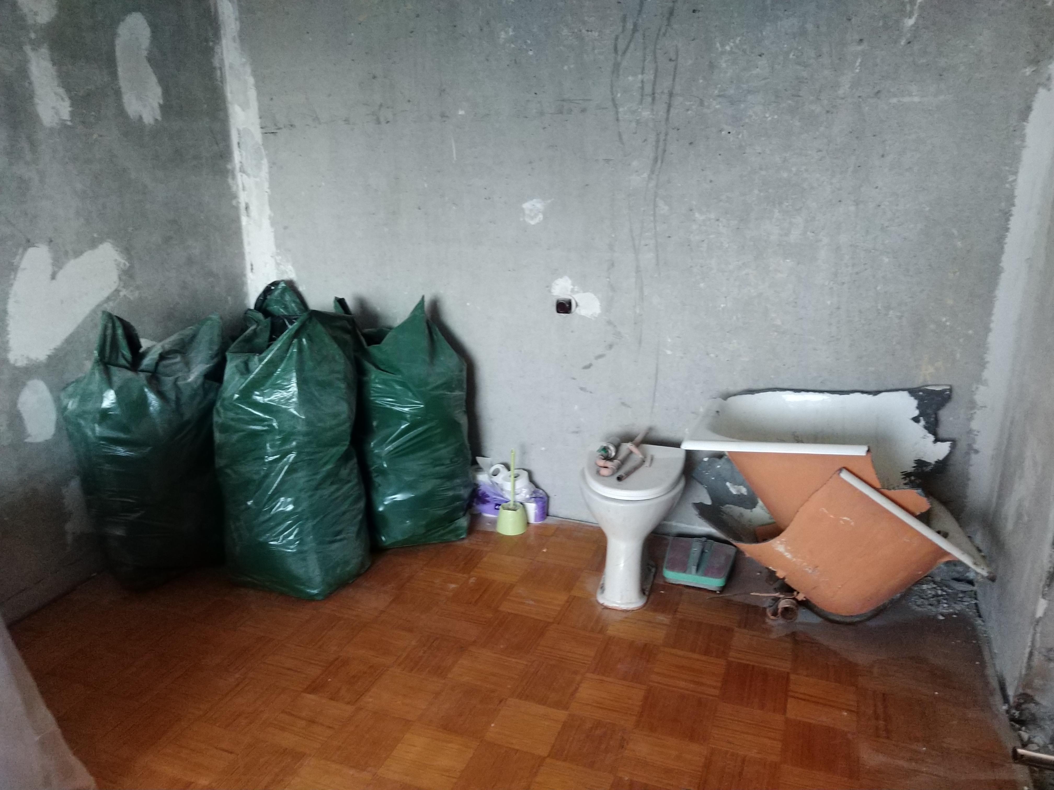 Tabasalus asuva kortermaja 5. korruselt tuleb alla, ehitusjäätmete konteinerisse, tassida sanitaarkabiini lammutusjäägid (lahtised betooni tükid, armatuur, malmvann jm. kuni 3 kuupmeetrit), korteris olev puitpõranda põhi, mis koosneb presspuitplaatidest (umbes 20-21 ruutmeetrit, paksusega 2cm) ning muu tekkinud puit/metall/kivi jäätmed (umbes 1kuupmeeter).