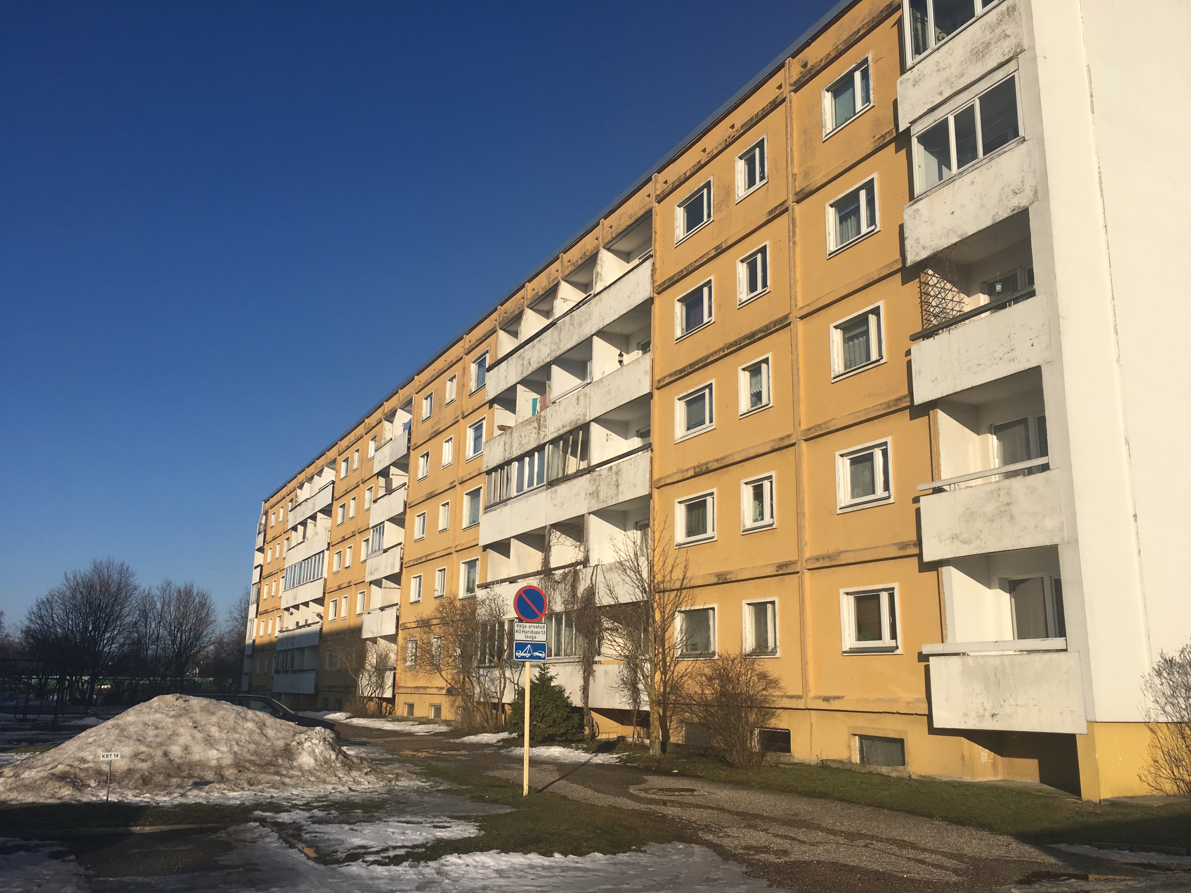 Seinade ettevalmistamine (puhastus, krundi panemine) ja värvimine silikoonvärviga. Küljeseinad on soojendatud. Rõdude värvimine ja piirete vahetamine. Mõõdud: maja pikkus 73m, kõrgus 15,5m. Küljeseinade pikkus 12m, kõrgus 15,5m.