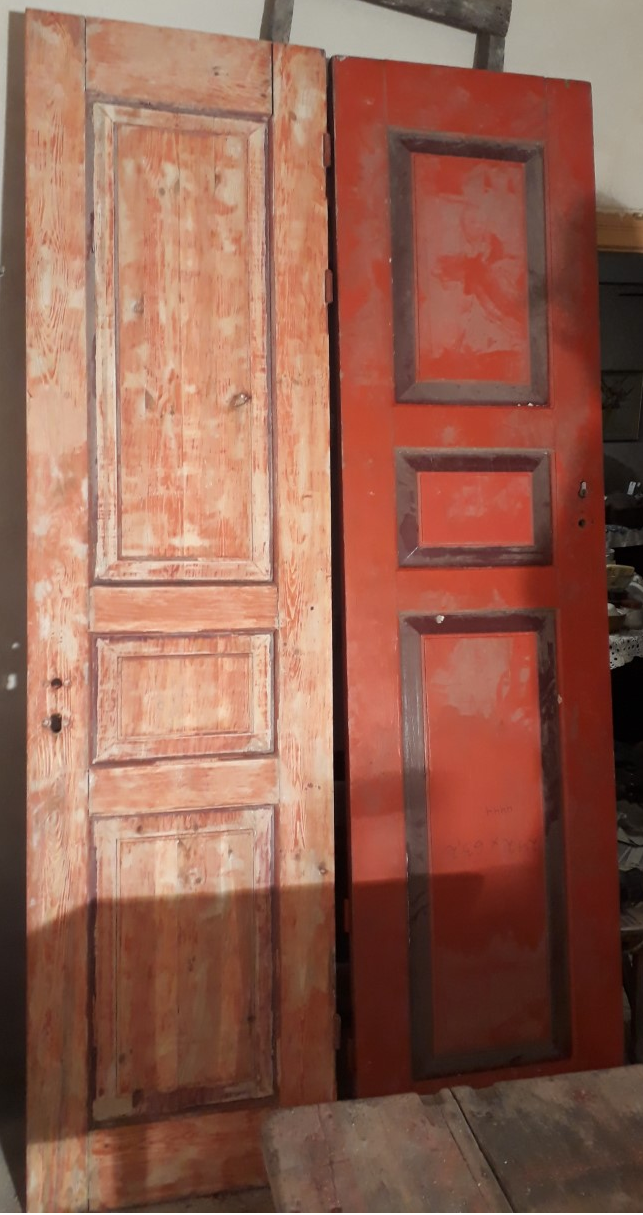 Kahest varasemalt ühepoolsest uksest on vaja valmistada üks kahepoolne uks (ukselehed ca 64*243 cm). Ukselehed on puhastatud puiduni ning lihvitud. Uksi viimistleda ja objektil paigaldada ei ole vaja, teha ainult allpool toodud tööd.