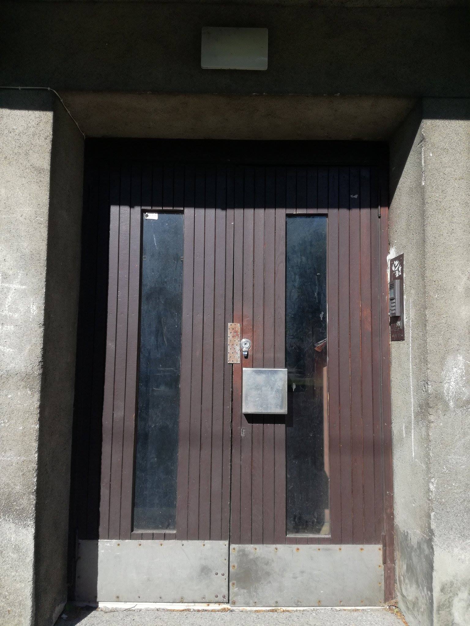 Vana ukse kõrgus 225 cm, laius 153 cm. Uksed peavad olema fonolukust avatavad. Mõlemal uksel olemas fonolukud, mis on ühendatud korteritega.