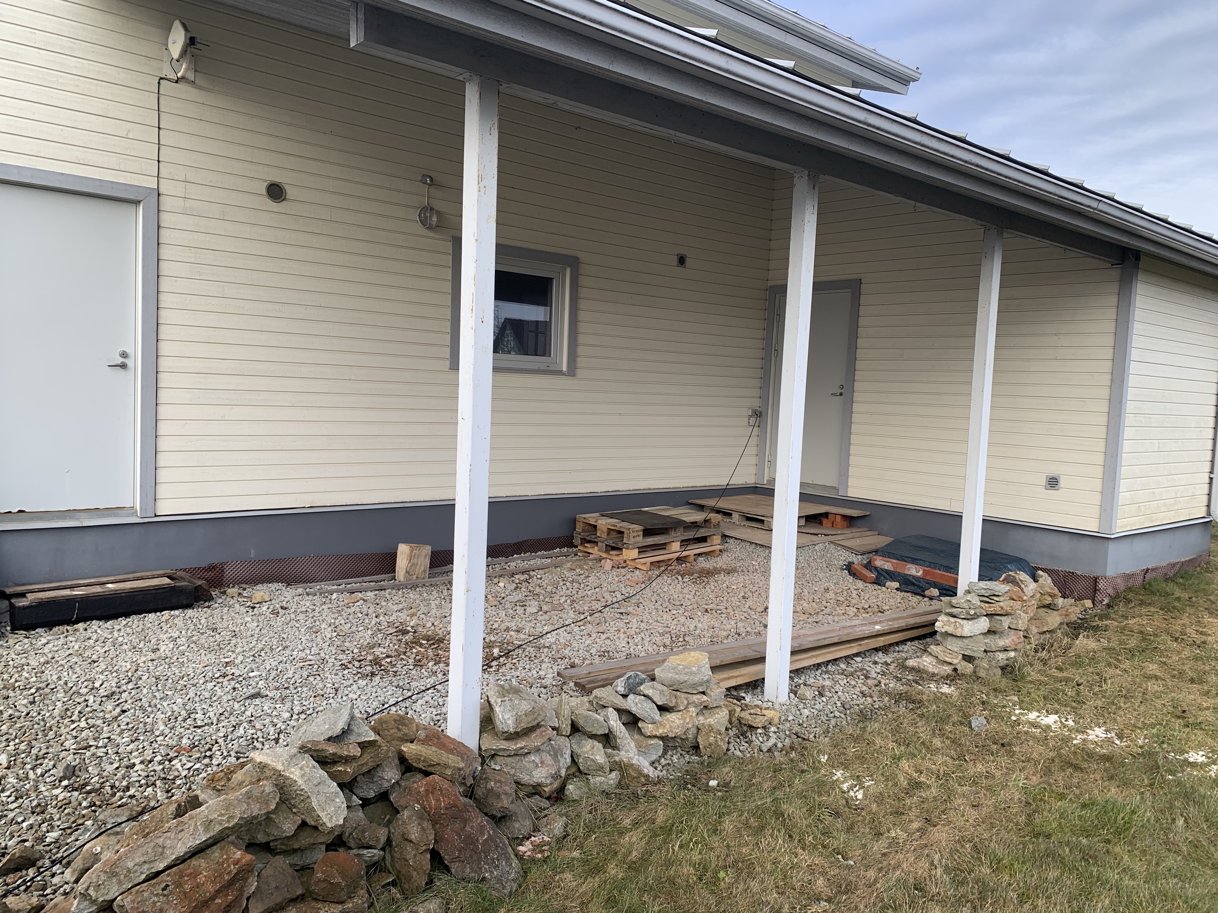 Kumbagi ukse ette valada betoonist aste 125cm lai, 25cm kõrge, 30cm sügav.