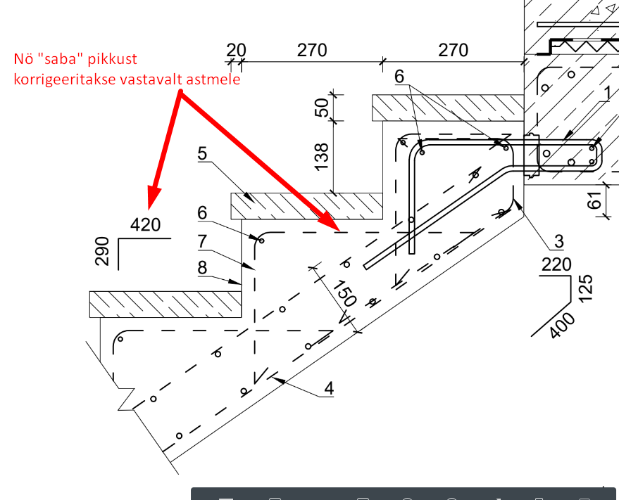 * Astmeplaat (õlitatud tammelaud) ja astmete vertikaalpinna viimistlemine (värvitud betoon) ei kuulu käesoleva hanke mahtu, s.t. hangitakse viimistlemata trepp.