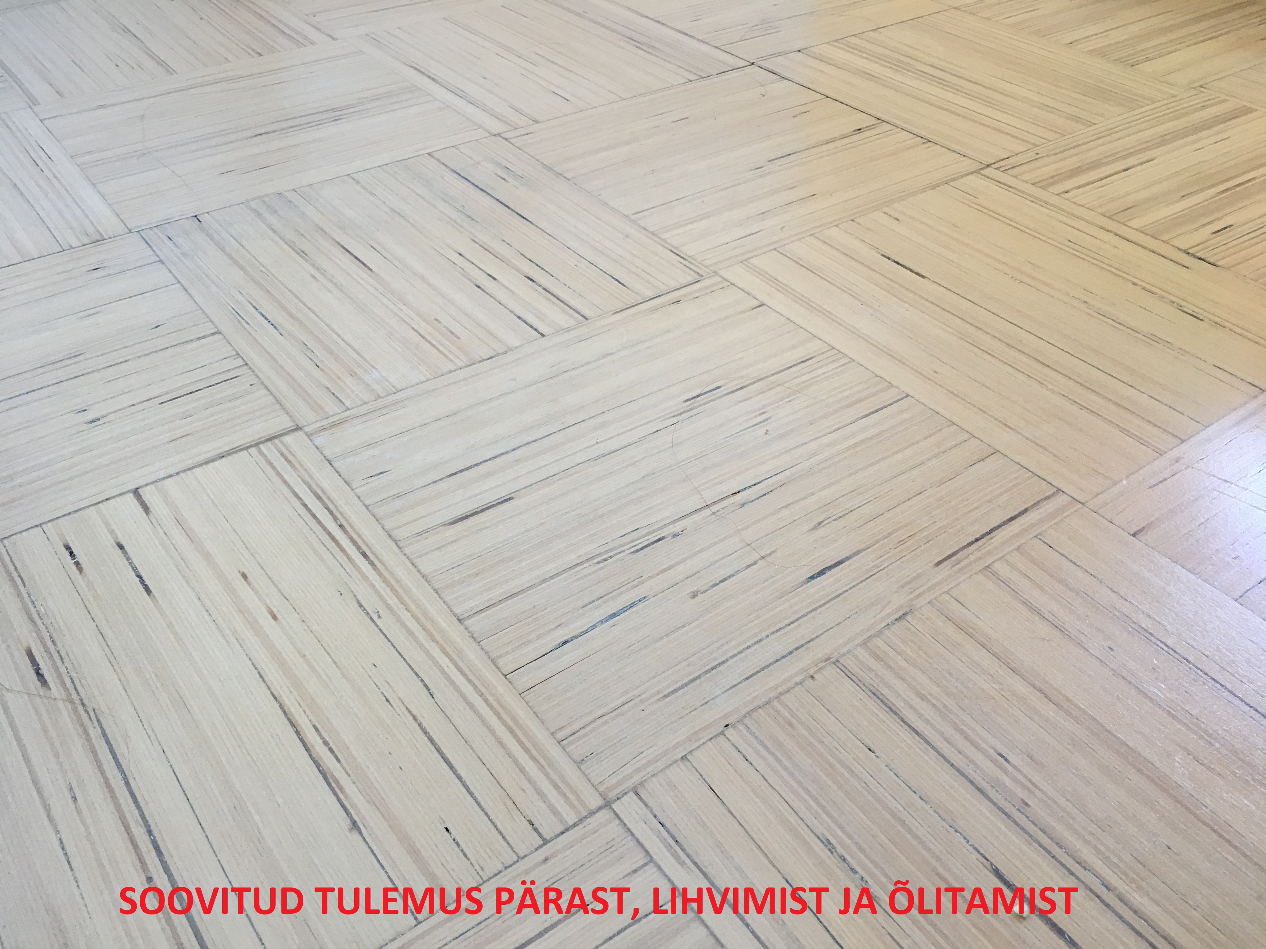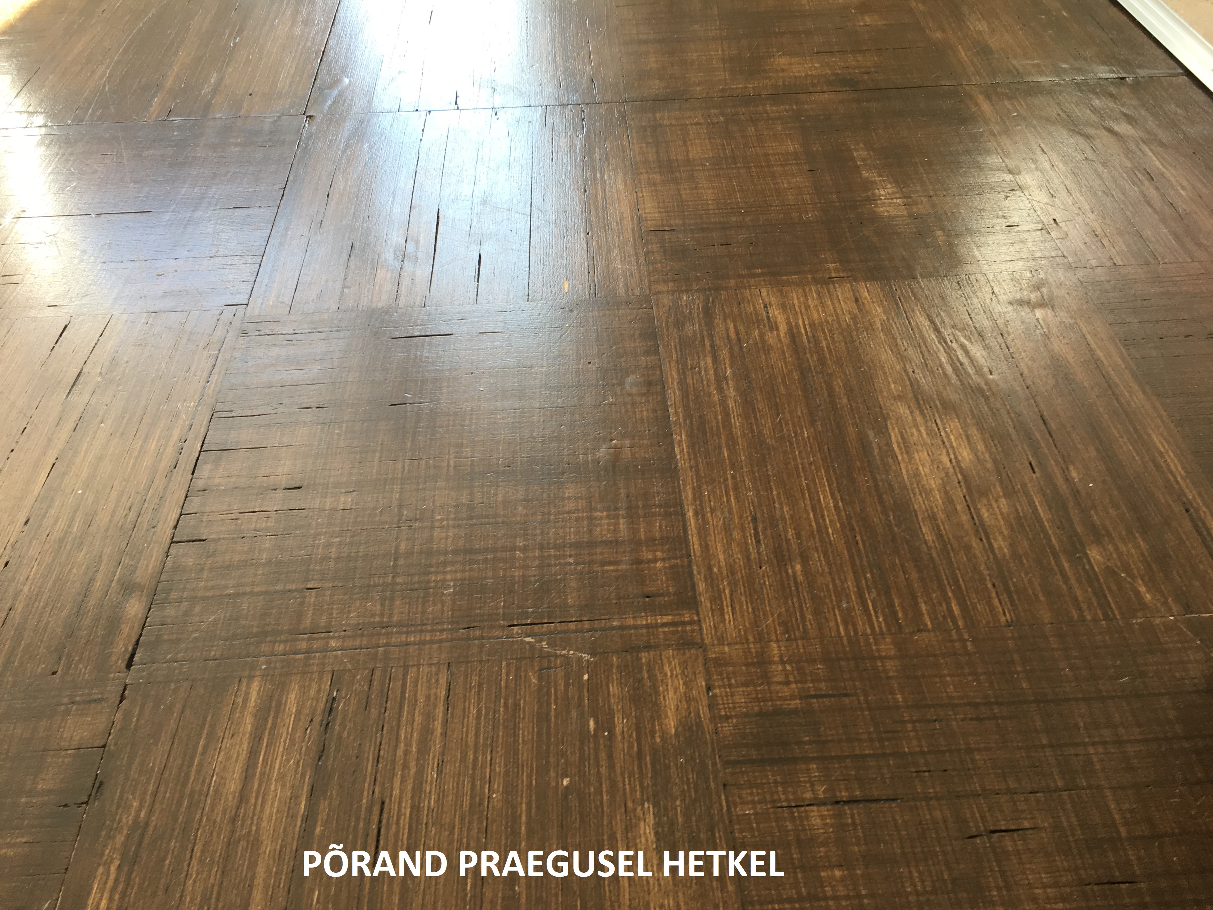 Vaja üle lihvida vene-aegne parkett põrand. Suuremad praod ja vahed pahteldada. Hetkel põrandal mingi tumepruun õli. Põrand läheb hiljem heleda õli alla seega viimased lihvid peavad olema P100, P120.