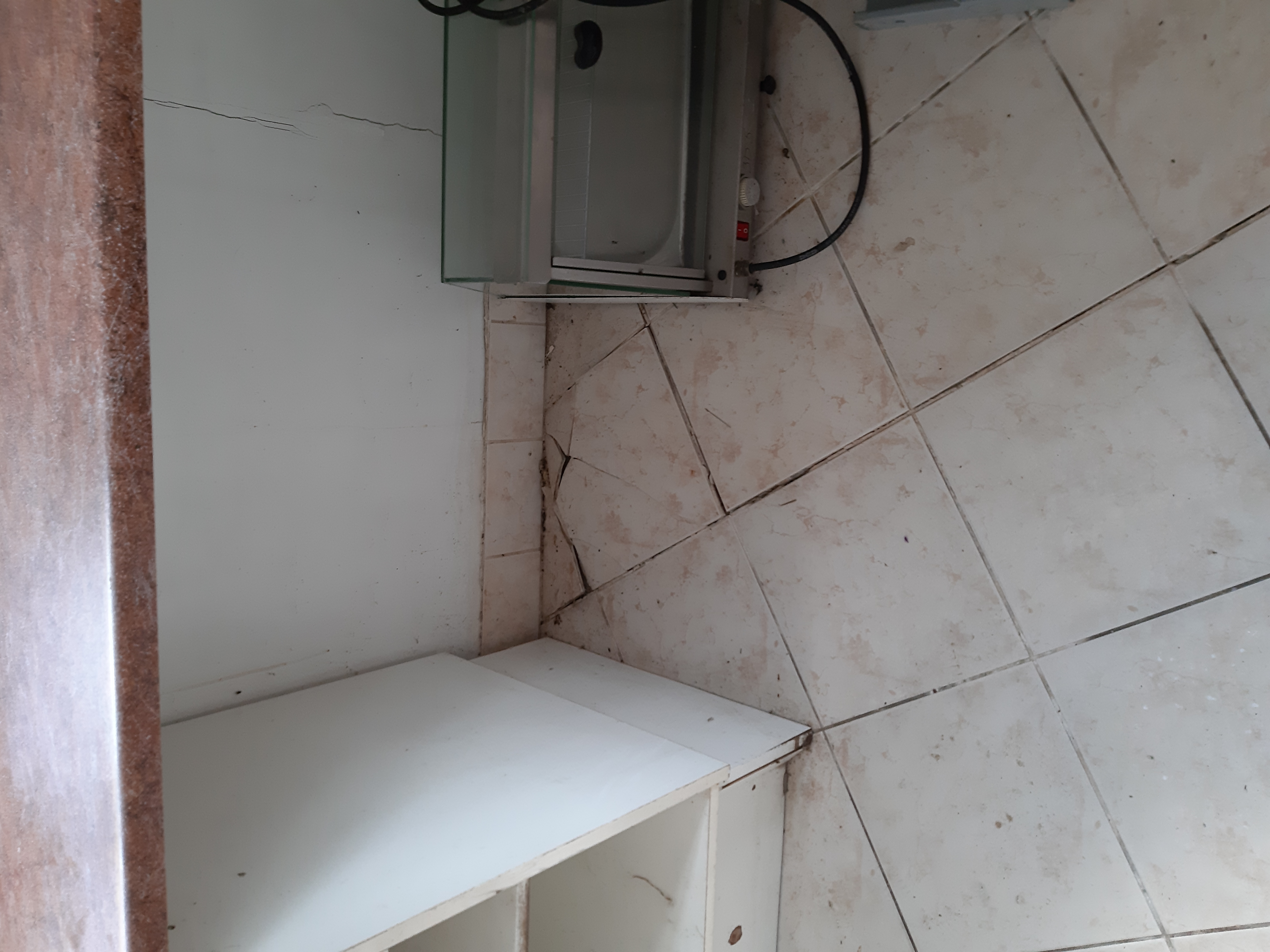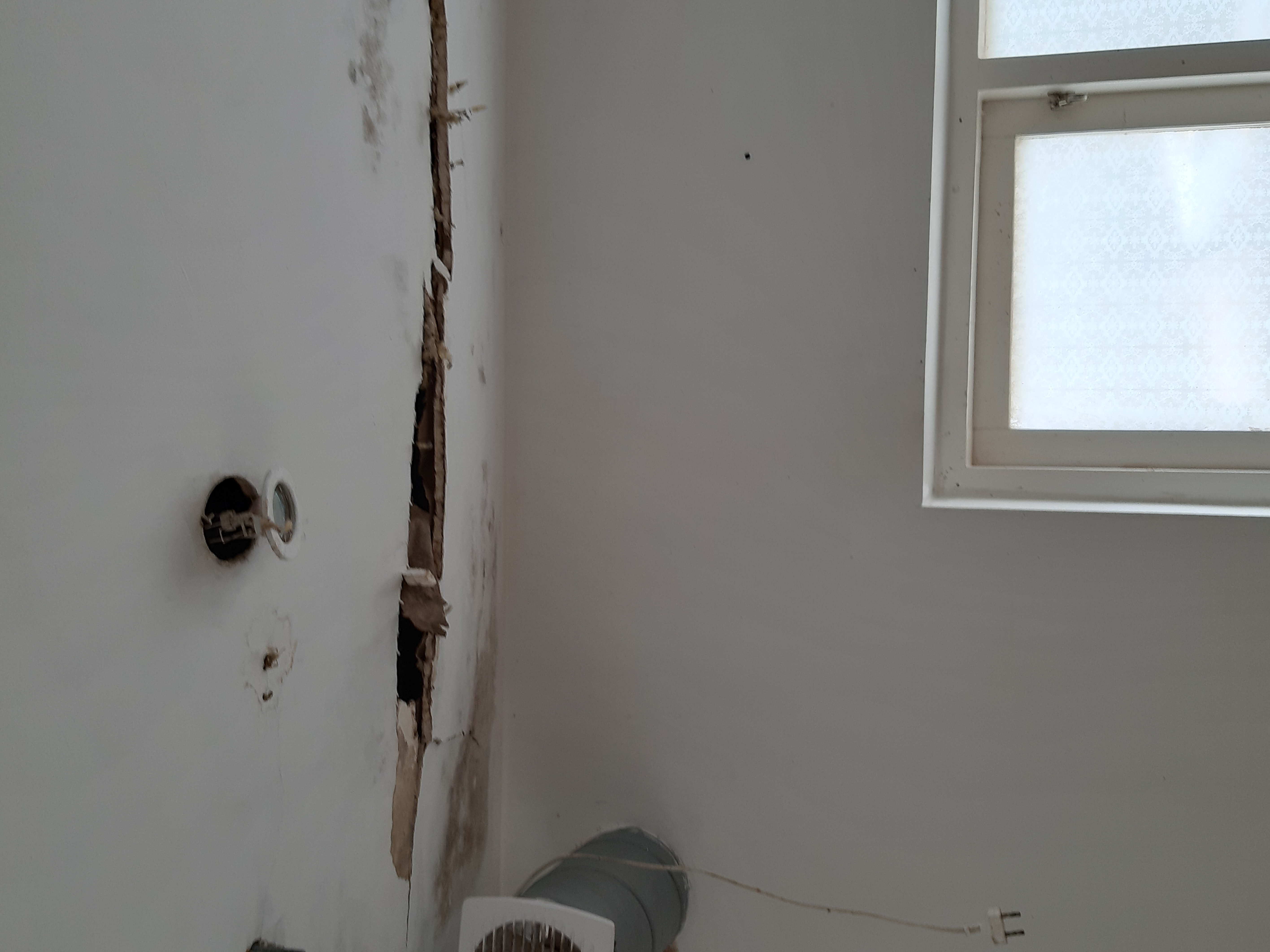Põrandal keraamilised plaadid katki. Köögimööbli välja lõhkumine. 2 valamukappi utiliseerimida. Laes tekkinud 20x20 cm auk.