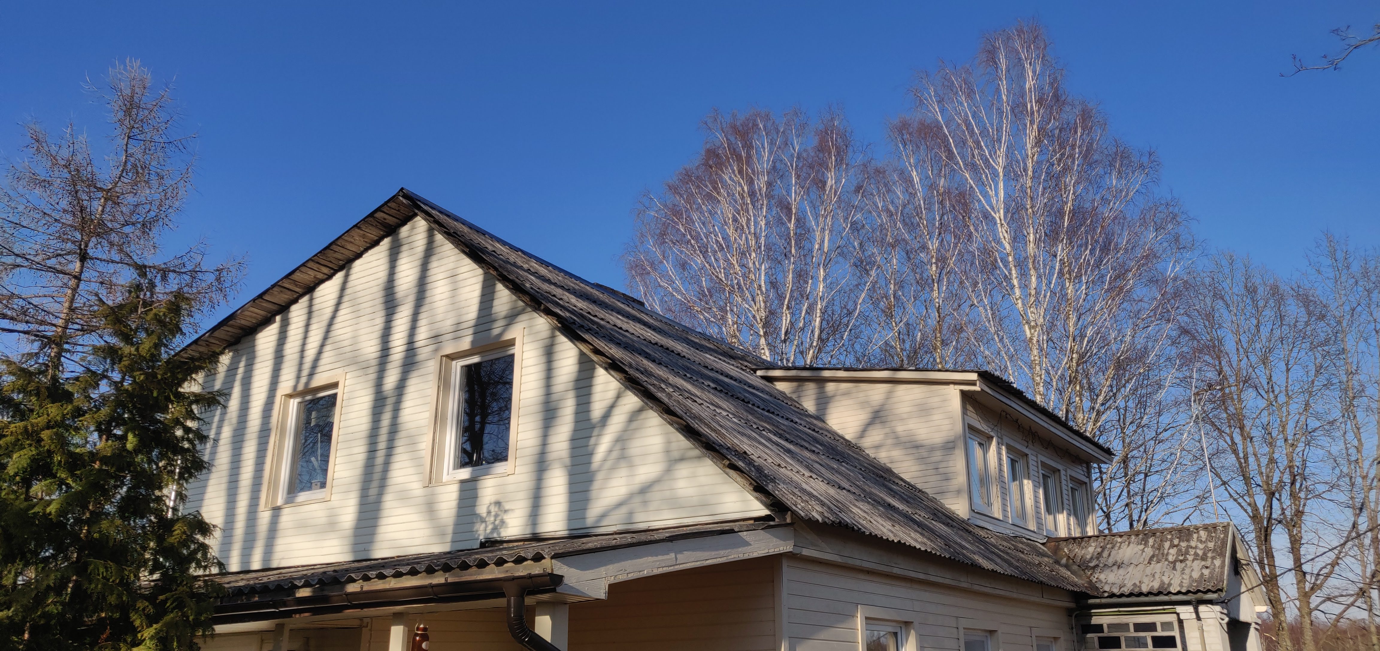 Vana katuse (eterniit) eemaldamine. Uue eterniidi paigaldamine, uue roovituse ca 40% paigaldus, vihmaveerennid ja äravoolutorud. Katuse pindala 280m2. Kahekordne maja, viilkatus.
