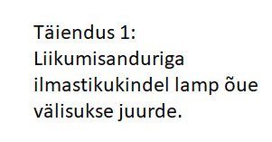 -- Kaks uut liikumisanduriga üldvalgustit trepikojas pluss üks olemasolev
