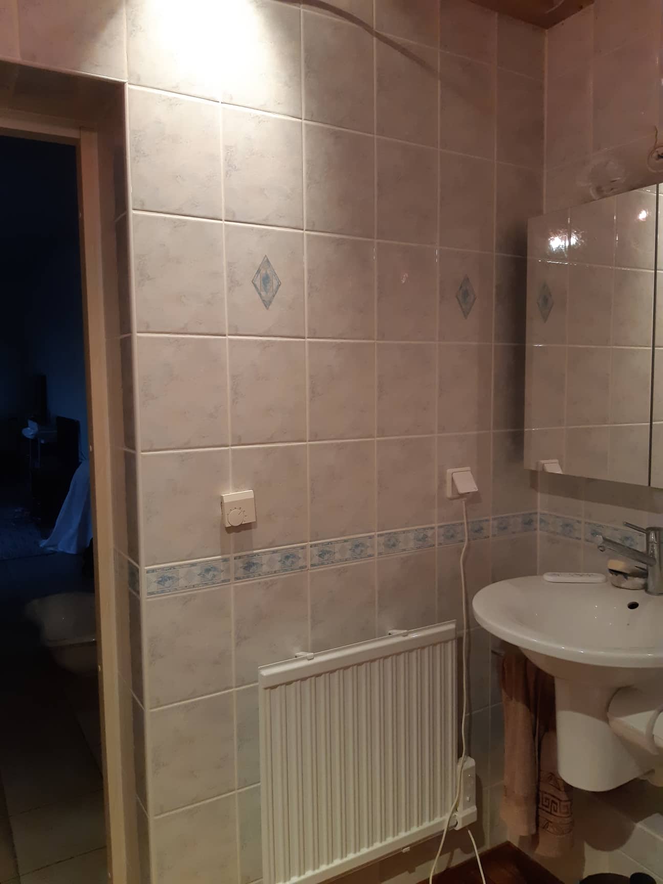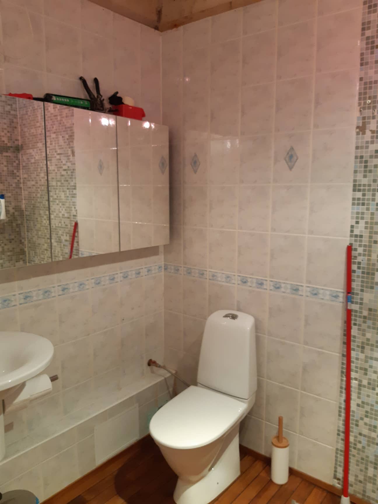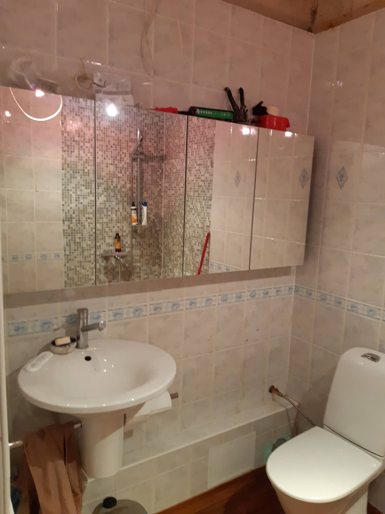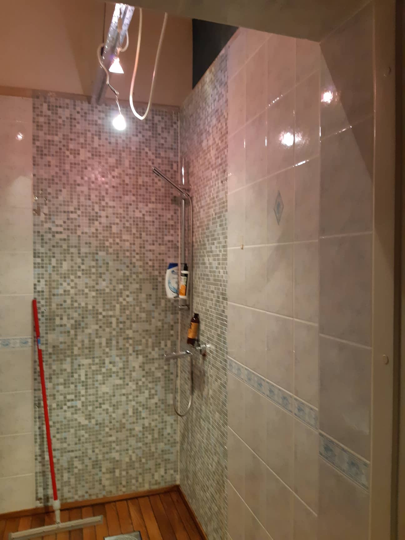 Vannituba, 15 ruutmeetrit seina. Uued plaadid tuleks panna vanade plaatide peale sammuga 1/2 Uuest plaadist on fotodes pilt. Peeglitega kapi alla plaadid ei lähe.