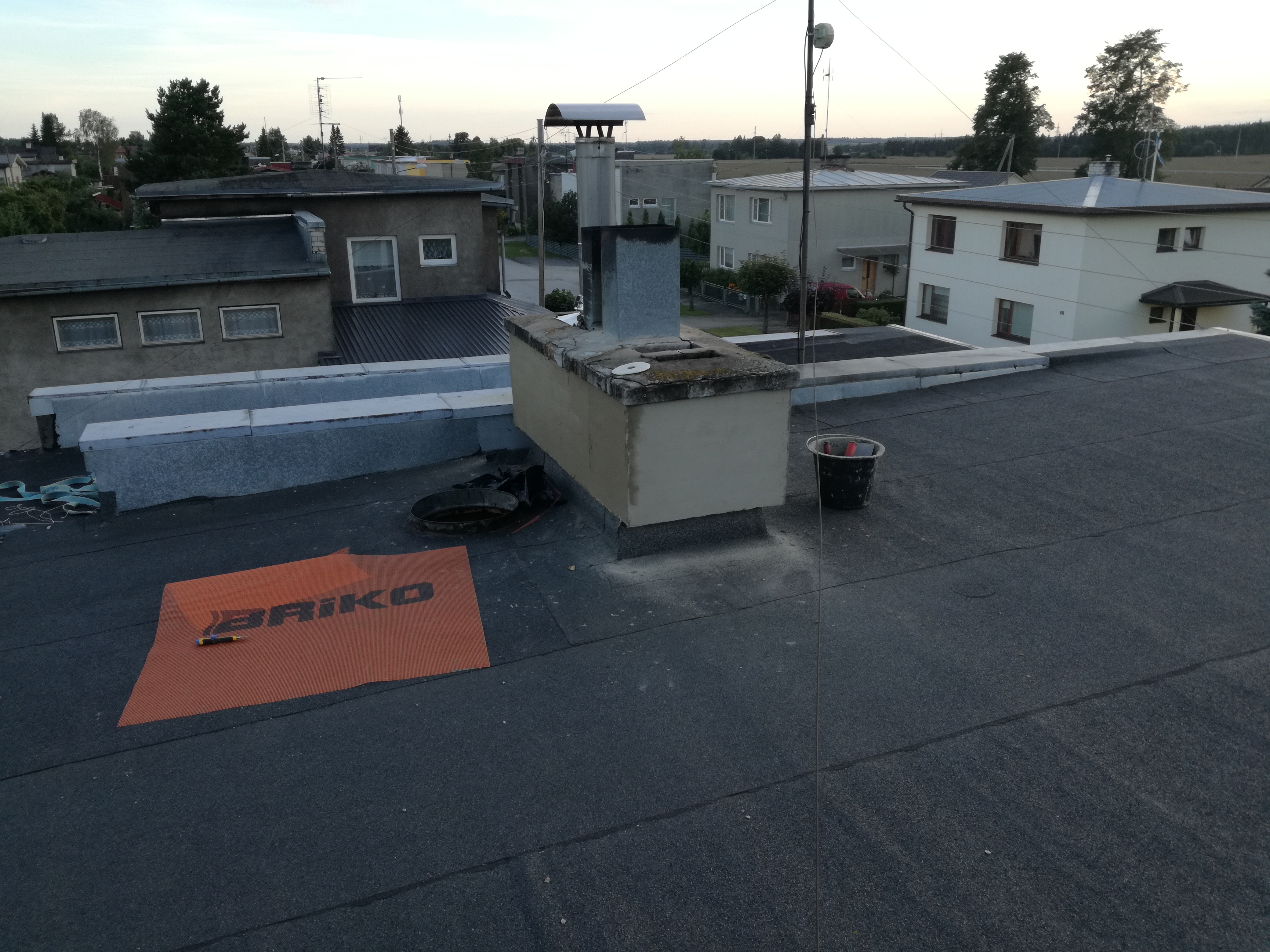 SBS aluskatte ja pealiskate paigaldus ja parapeti ja ääreplekide paigaldus. Kõrgendikule tõstete tegemine 40cm tõus. Parapeti on 20jm ja ääreplekke 30jm. Katuse pinda 130ruutu. SBS ja osb materjal hanke korrjaldaja poolt aga plekid ja muud asjad hanke võitja poolt. Osa katusest saaks ära teha siis kui uus korstna pits valmib ja teine osa siis kui fasaadi osa ära tehakse.