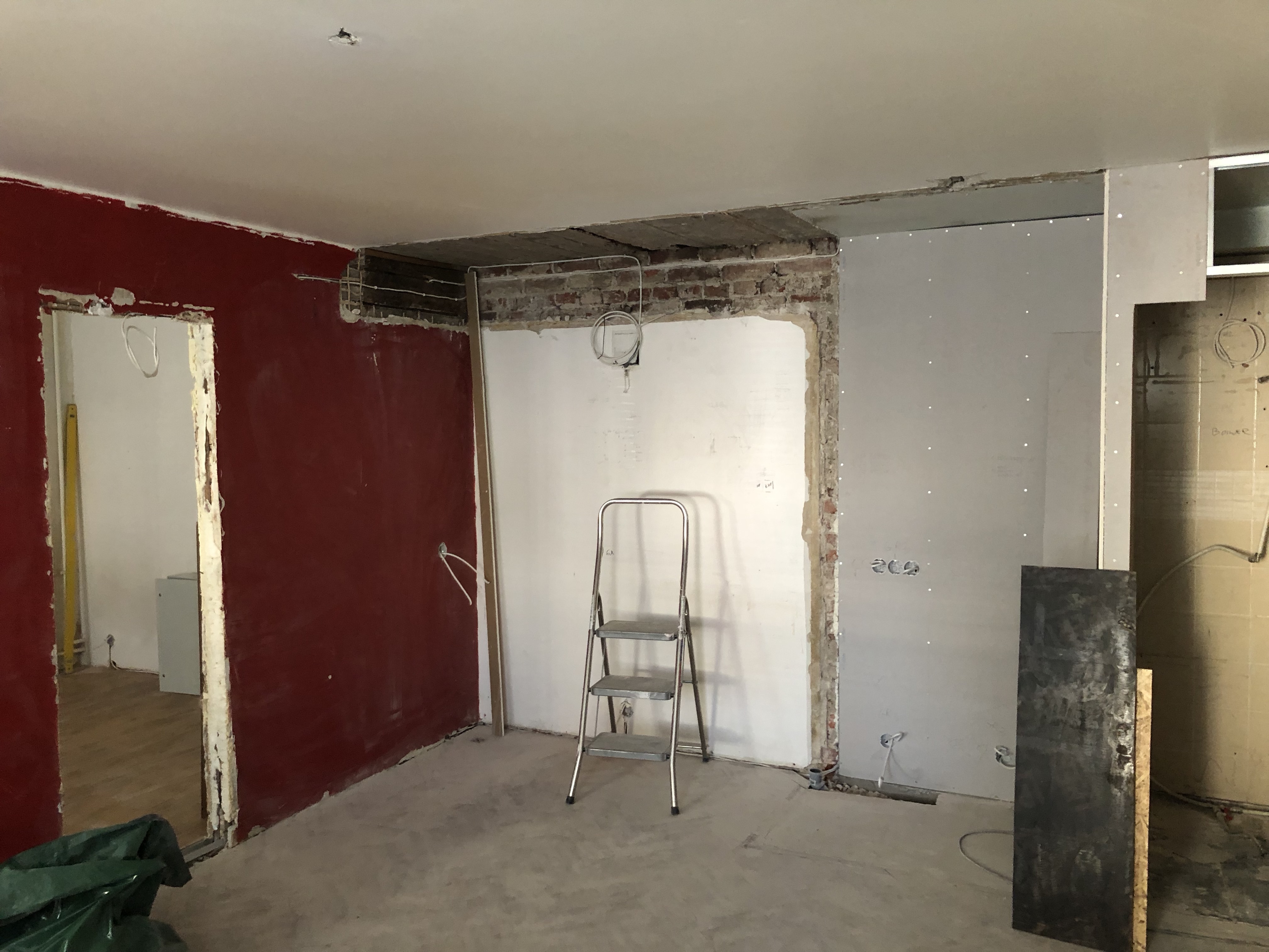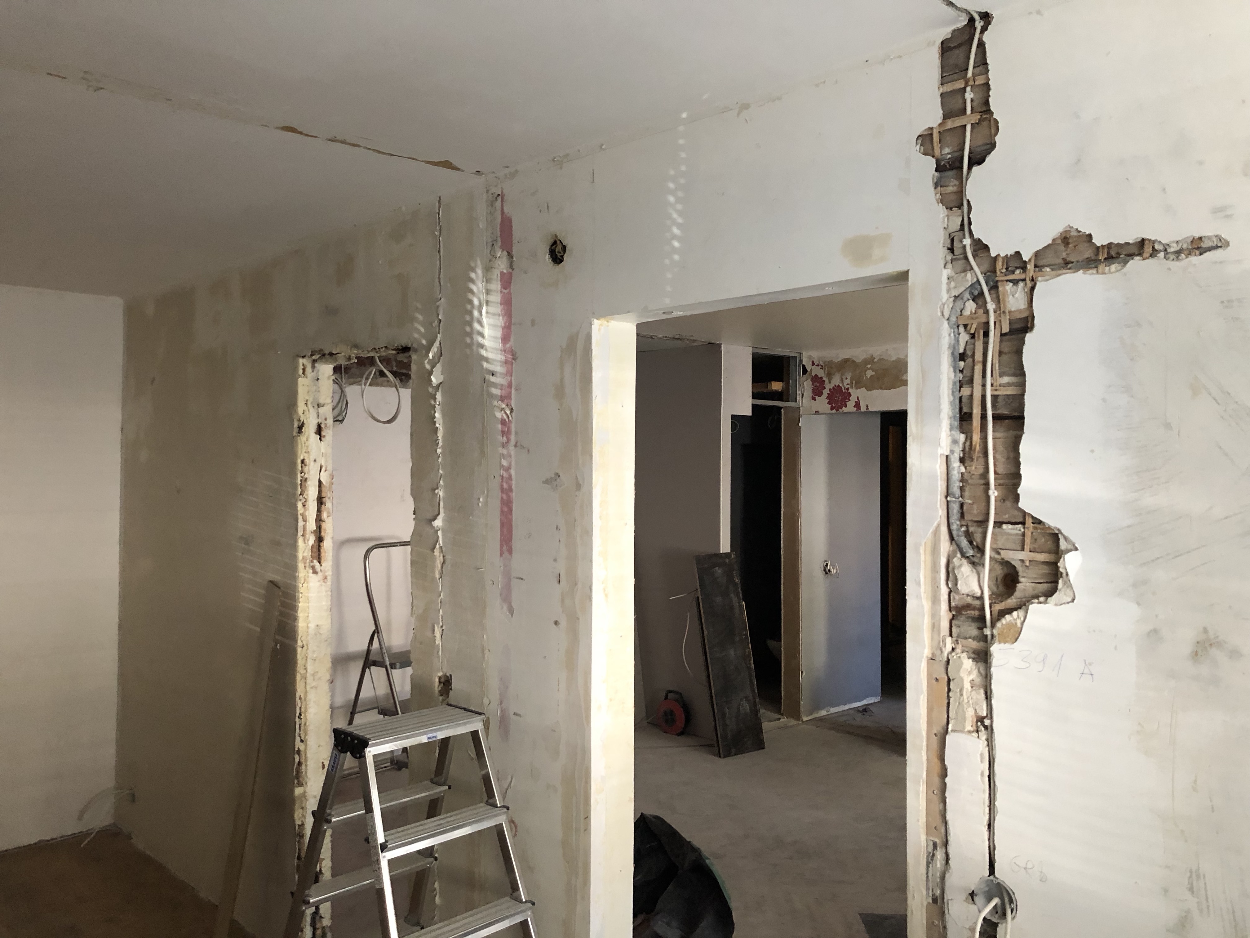 Osaliselt on uued kipsseinad,osaliselt vanad krohvitud seinad mida tuleb